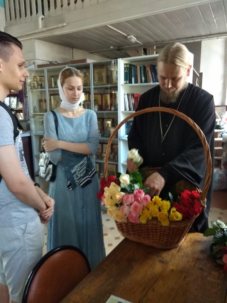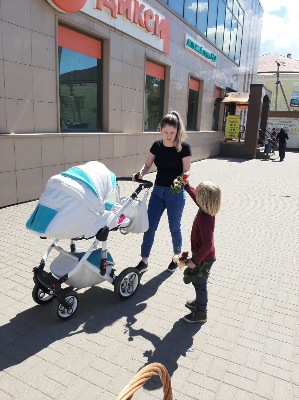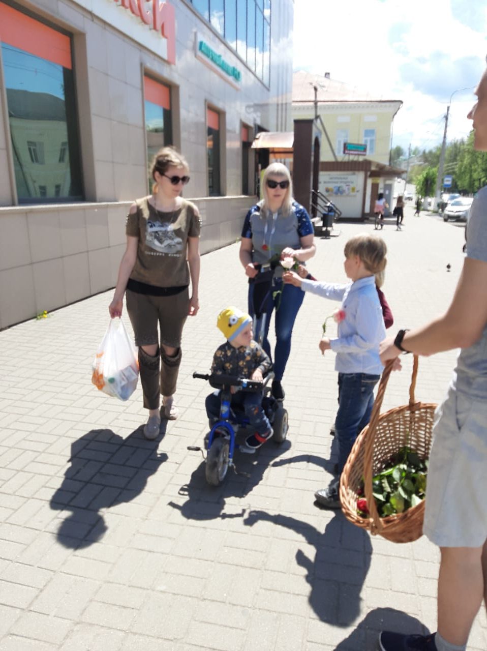 После литургии волонтёры храма отправились на центральные улицы города чтобы поздравить девочек, девушек и женщин с праздником, подарив им цветы.