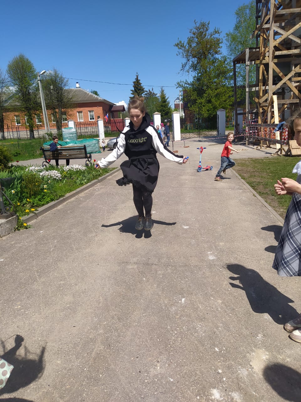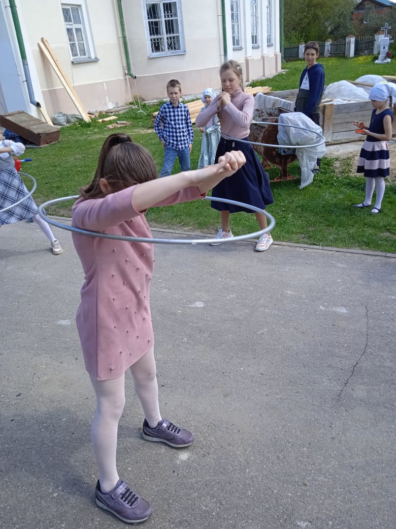 Также в этот день в воскресной школе были проведены спортивные соревнования для девочек. Участники соревнований прыгали через скакалки, крутили обруч, проводили эстафету.
