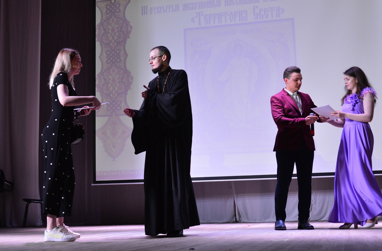 В конце фестиваля состоялась торжественная церемония награждения, которую провели благочинный округа, настоятель храма преподобного Сергия Радонежского протоиерей Василий Биляк и клирик Казанского собора иерей Алексий Сначёв.