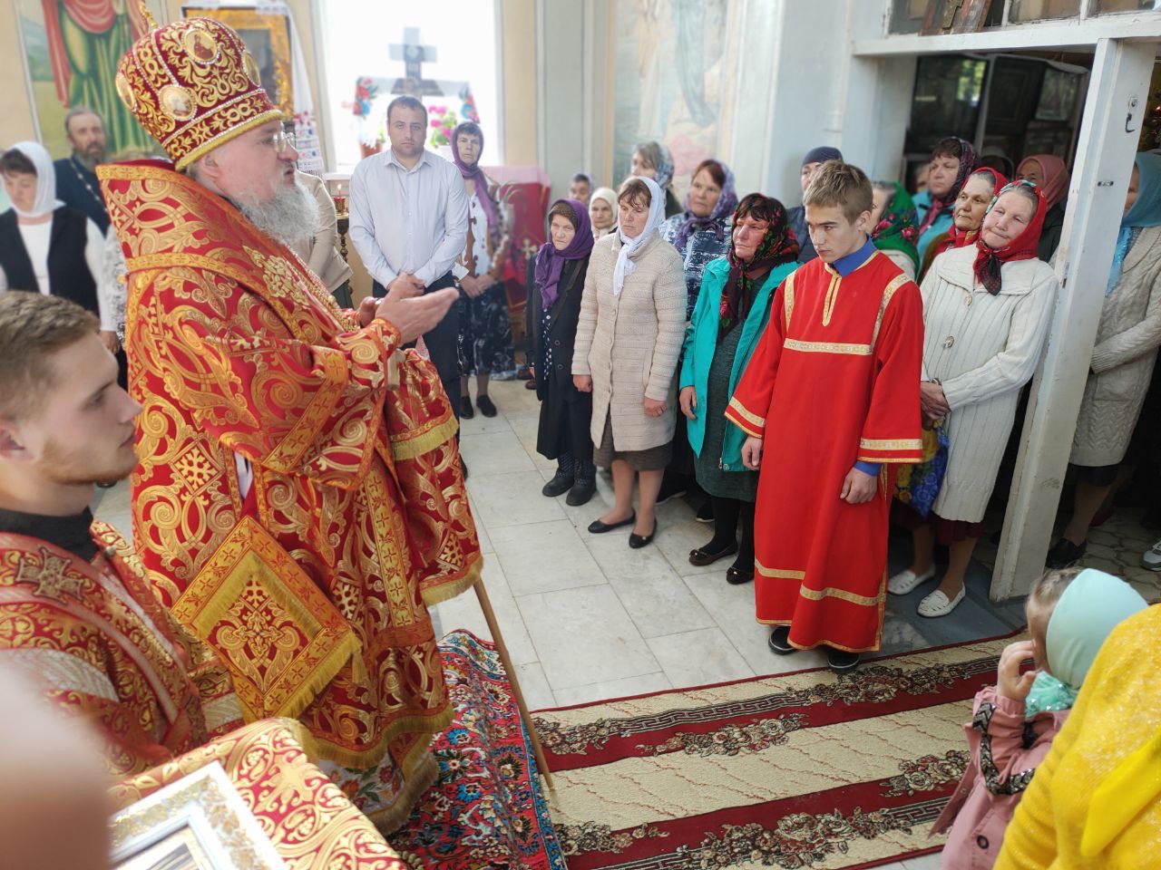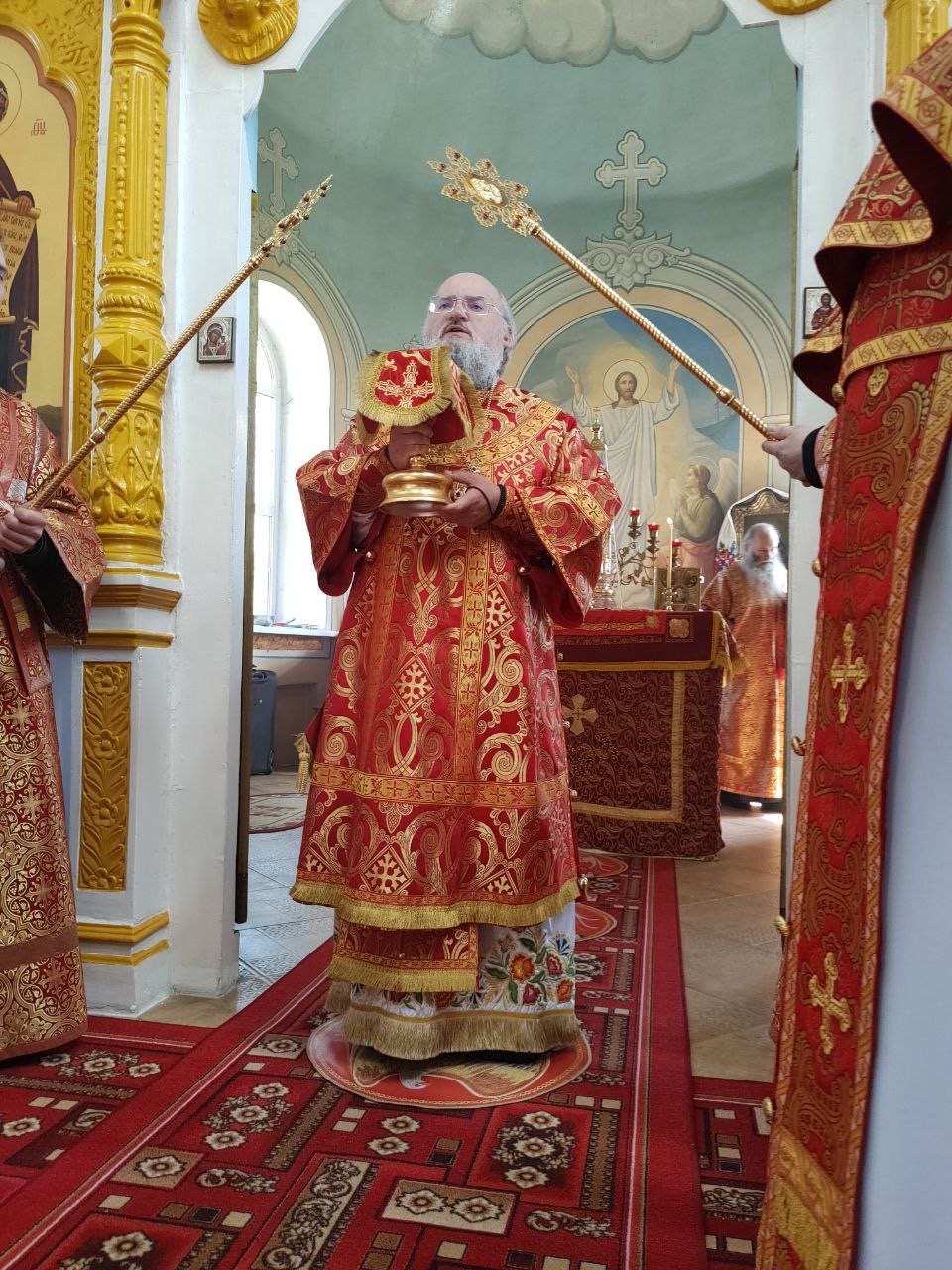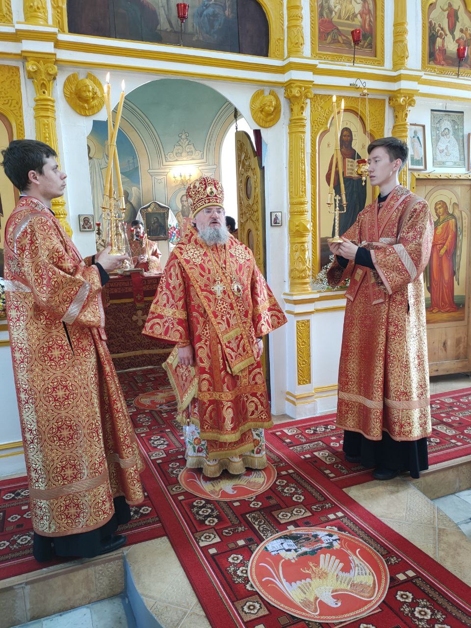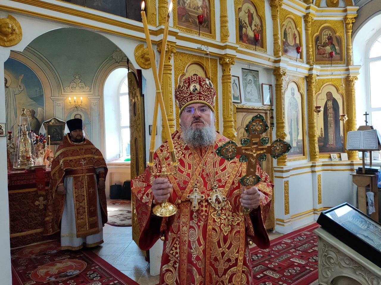 За богослужением преосвященному владыке сослужили: протоиерей Антоний Хатунцев, иерей Андрей Ахмедов – настоятель храма, диакон Евгений Васильев и иеродиакон Виталий (Павленко).