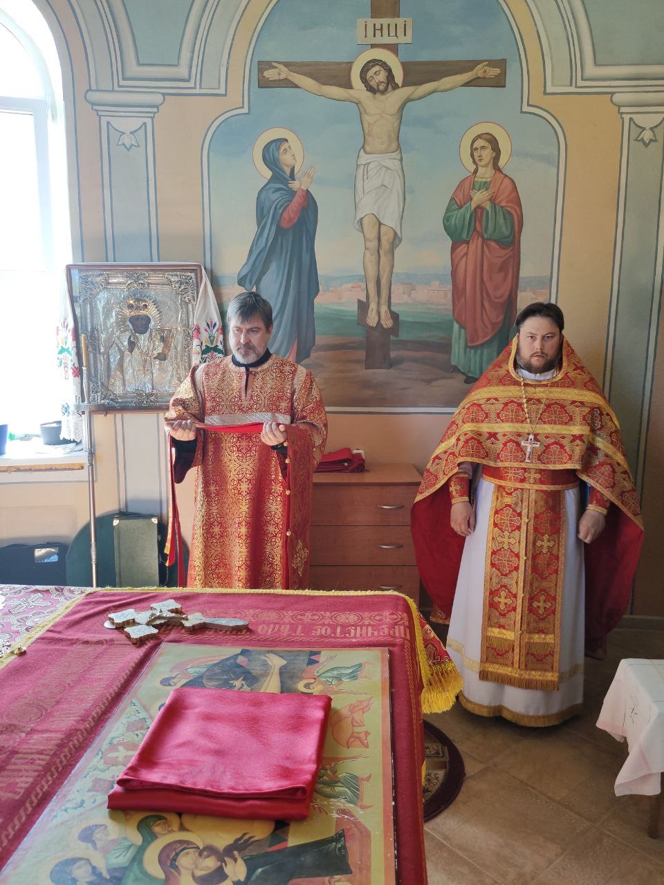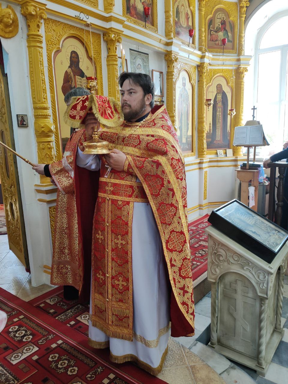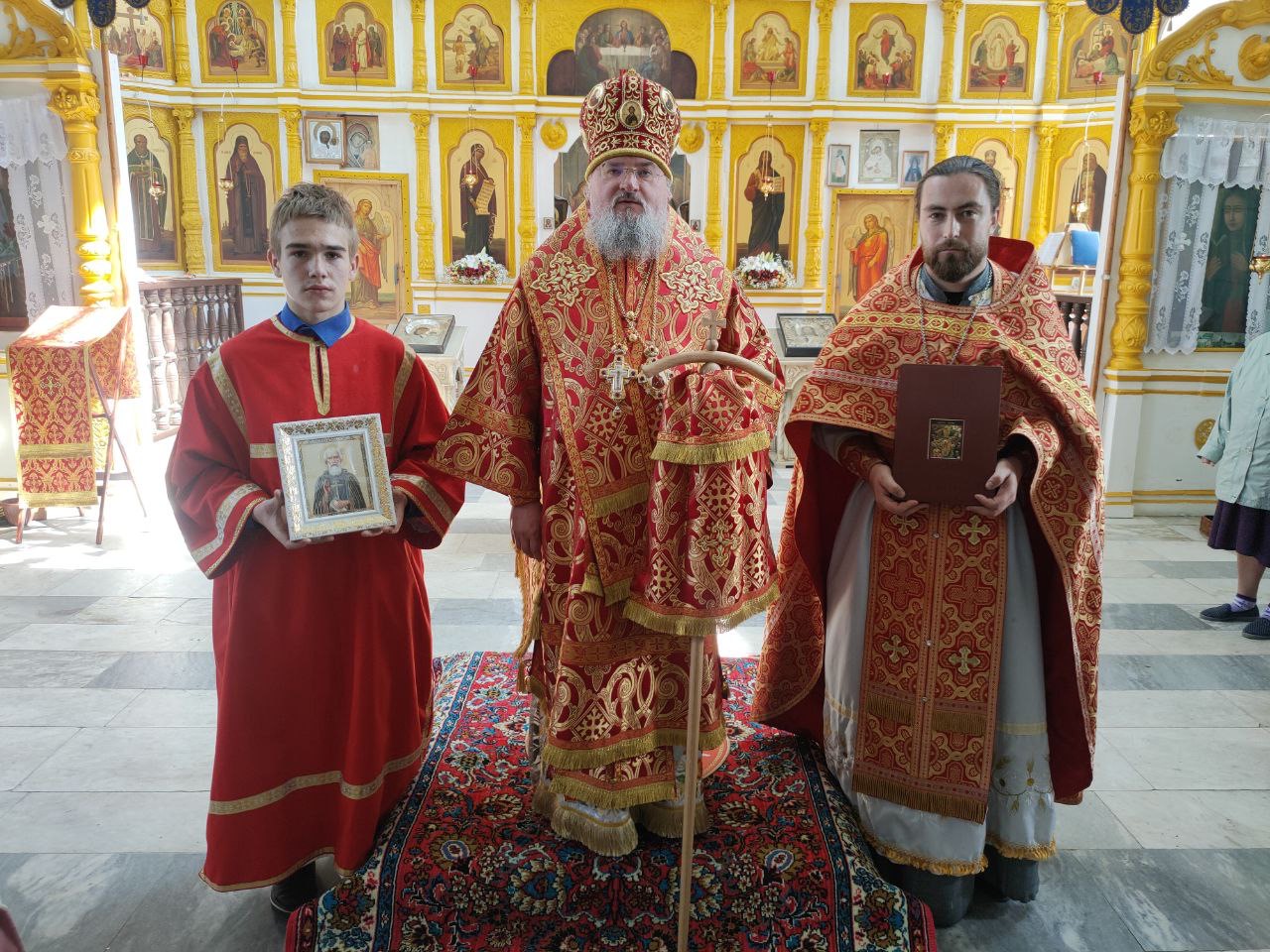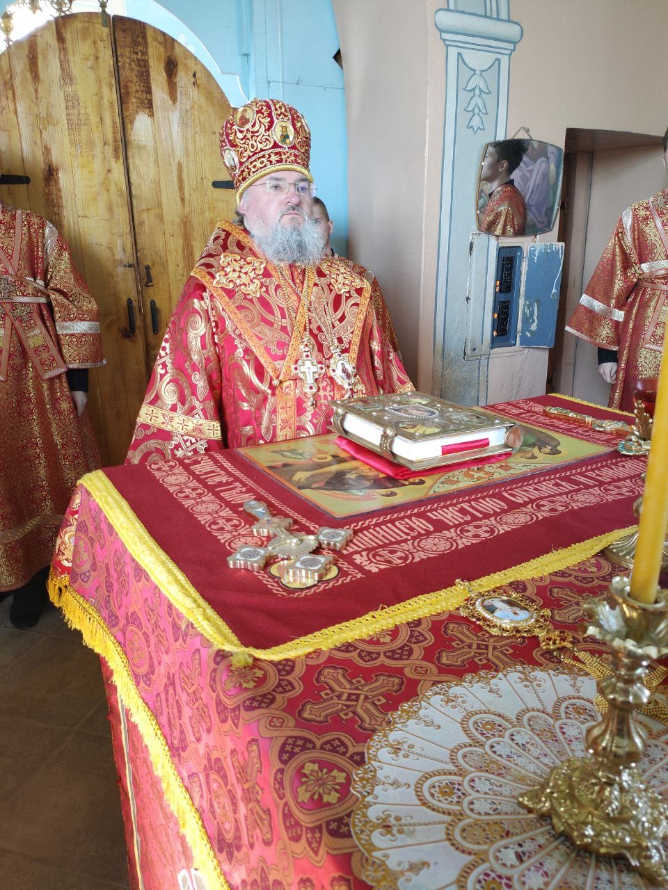 За богослужением преосвященному владыке сослужили: протоиерей Антоний Хатунцев, иерей Андрей Ахмедов – настоятель храма, диакон Евгений Васильев и иеродиакон Виталий (Павленко).
