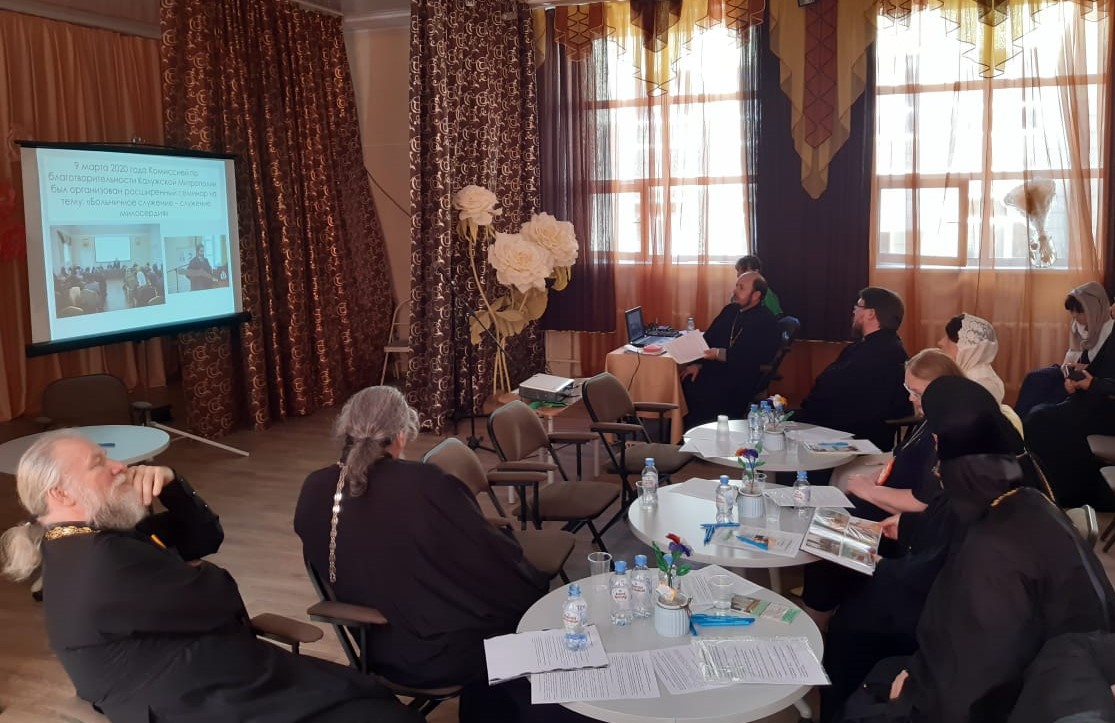 Перед началом заседания со вступительным словом обратился епископ Козельский и Людиновский Никита, поздравив присутствующих с Пасхальными днями и огласил повестку дня. Затем директор дома-интерната Буланова Наталья Александровна рассказала о работе социального учреждения. Далее прозвучали доклады иерея Игоря Йовбака «Особенности служения в социальных учреждениях, воспитывающих детей с ментальными нарушениями», и игумении Анастасии (Мордмилович) «Направления и перспективы взаимодействия с Полотняно-Заводским ДДИ». Докладчики рассказали об особенностях работы с детьми, имеющими ментальные и физические нарушения развития и важность сотрудничества детского дома и Калужской епархии на благо детей. Также были заслушаны доклады: протоиерея Александра Селюкова об опыте работы по церковному благотворительному служению на территории 7-го благочиния; Балябиной Натальи Александровны «Опыт работы православной благотворительной службы «Крепкая семья-Кондрово» и выступление протоиерея Алексея Пелевина «Опыт взаимодействия Калужской епархии с учреждениями здравоохранения Калужской области в период пандемии коронавирусной инфекции Covid-19».
