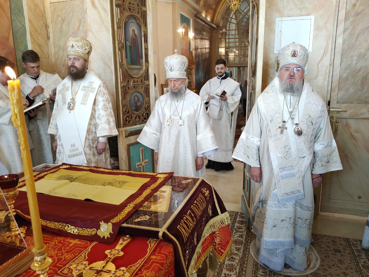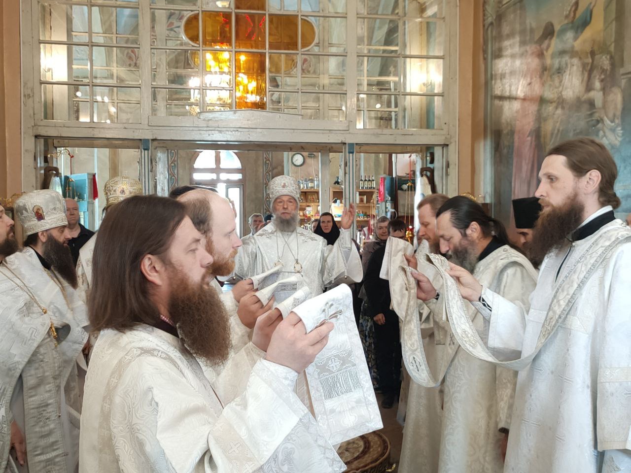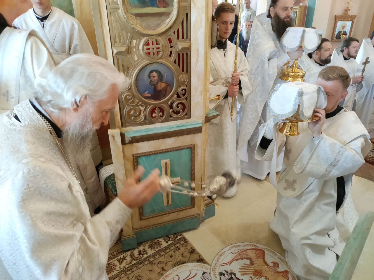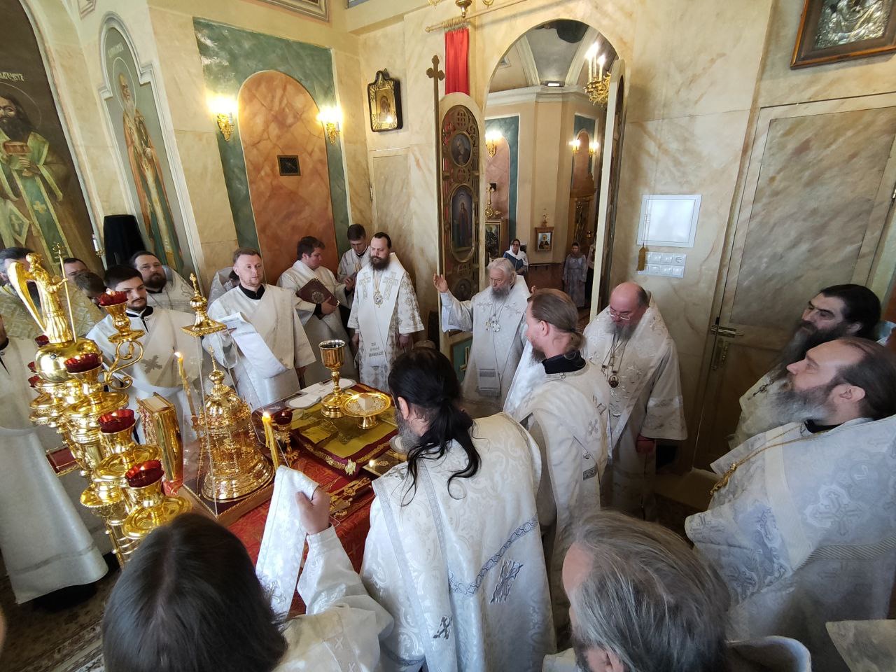 Архипастырям сослужил сонм духовенства из разных епархий Русской Православной Церкви.