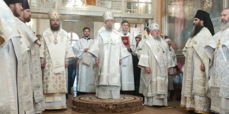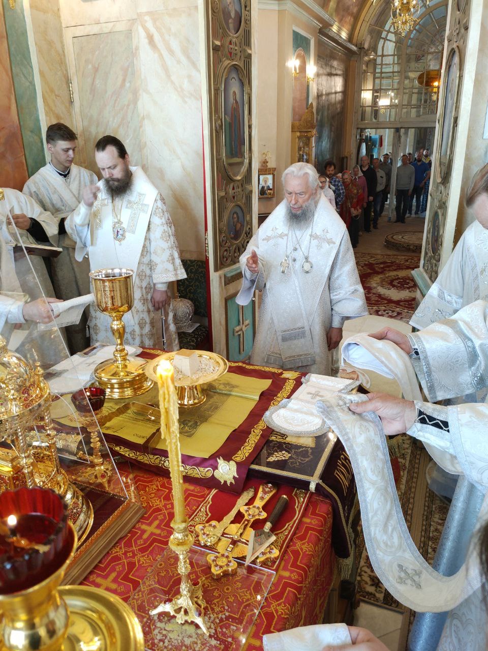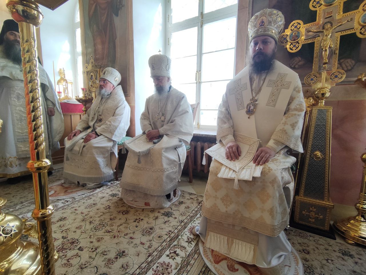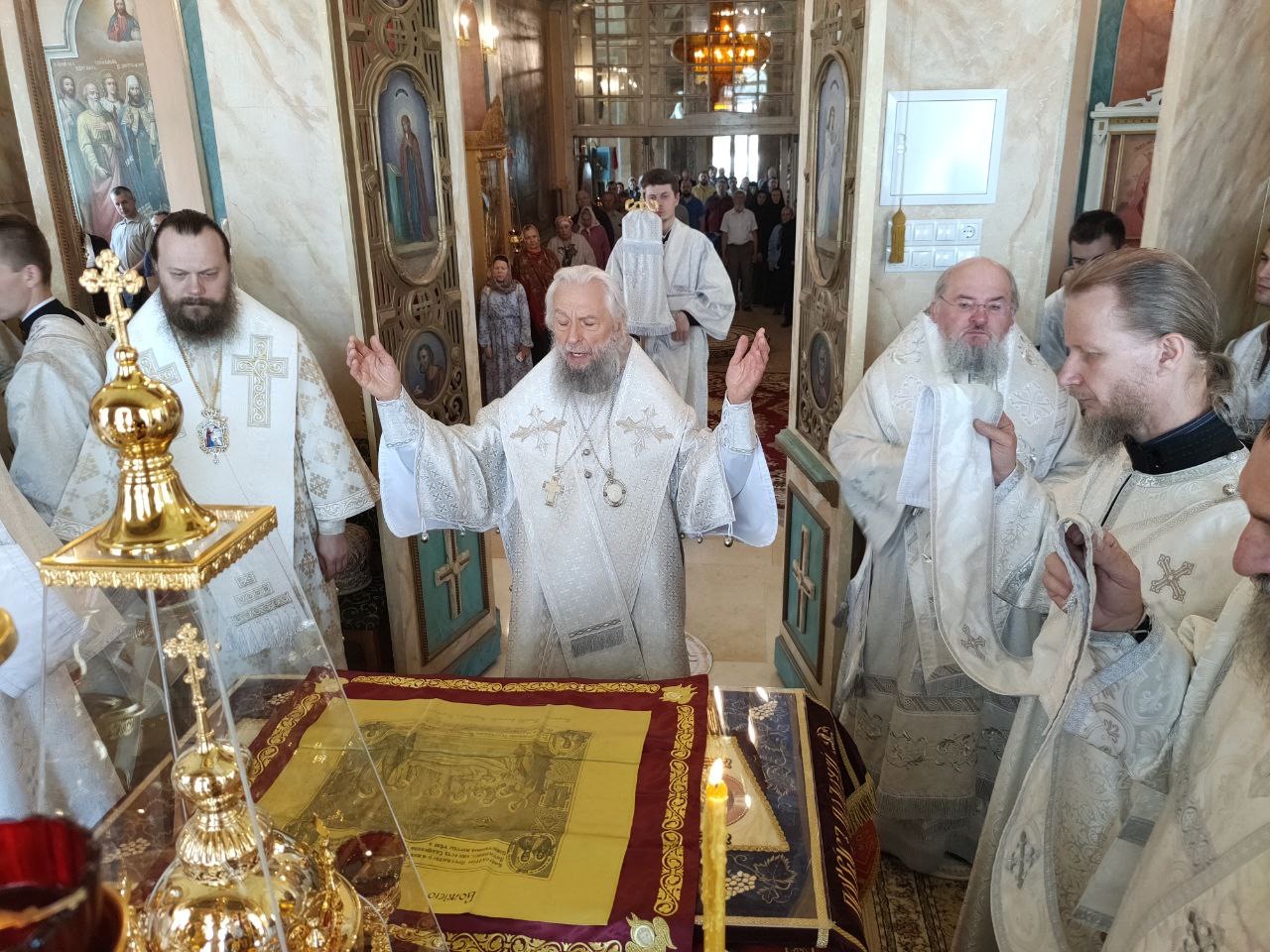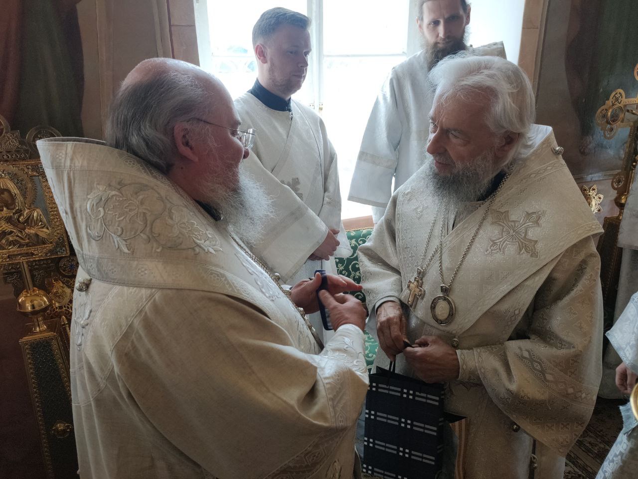 Архипастырям сослужил сонм духовенства из разных епархий Русской Православной Церкви.