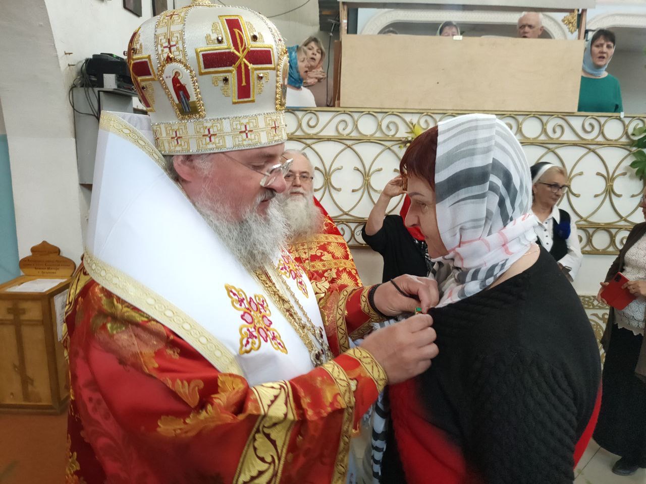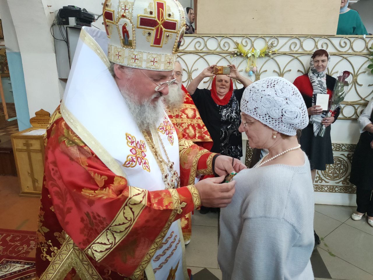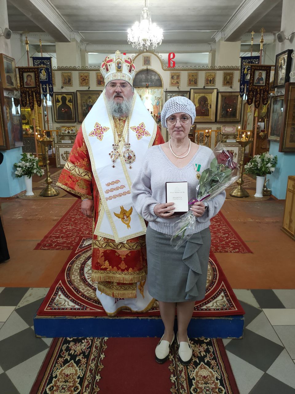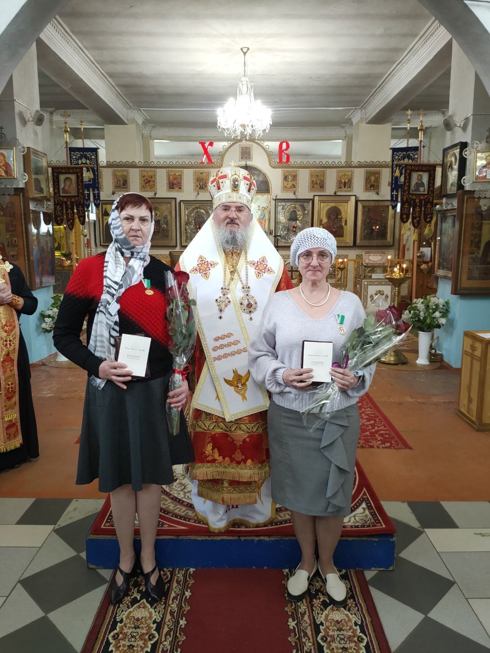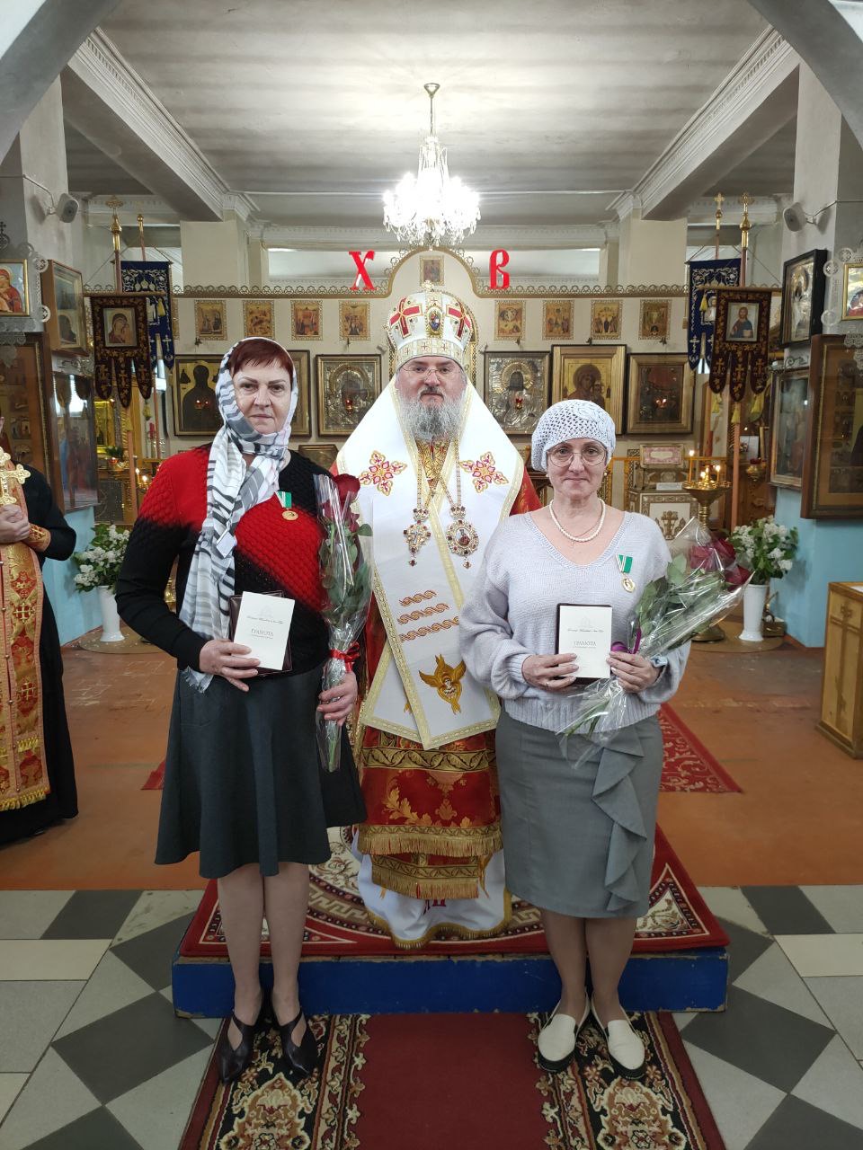 Владыка, вручая высокие Патриаршие награды, поблагодарил награждаемых за их самоотверженный труд по спасению жизни ближних, пожелал им крепкого здоровья и всесильной помощи Божией в их нелегком служении, передал им благословение Святейшего Патриарха КИРИЛЛА и вручил цветы.