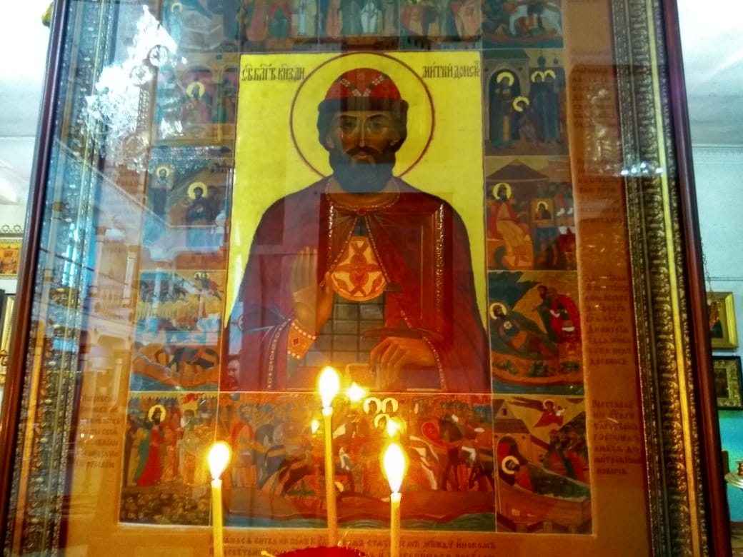 В соборе для поклонения находятся две иконы: поновленная золочением икона святого Димитрия Донского «в житии», и вновь написанная икона святой Евдокии Московской также «в житии».