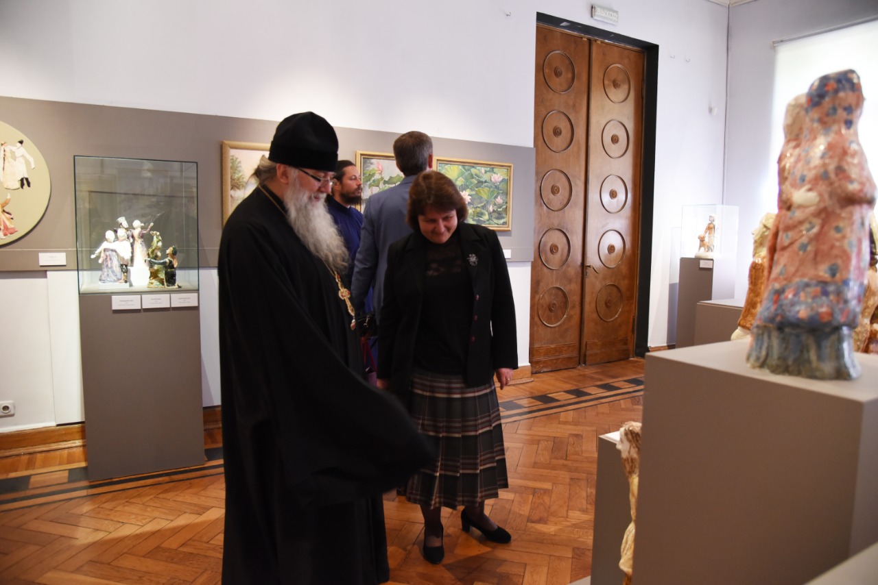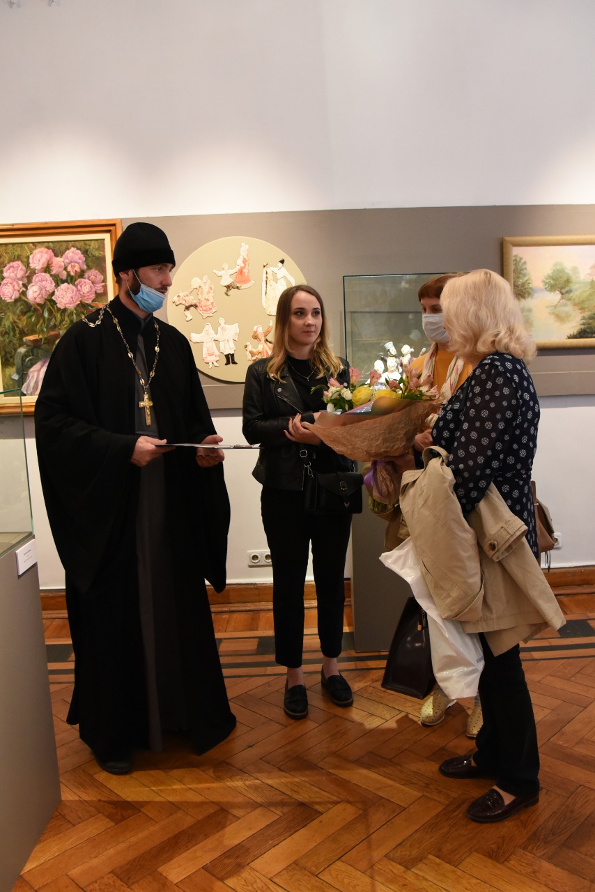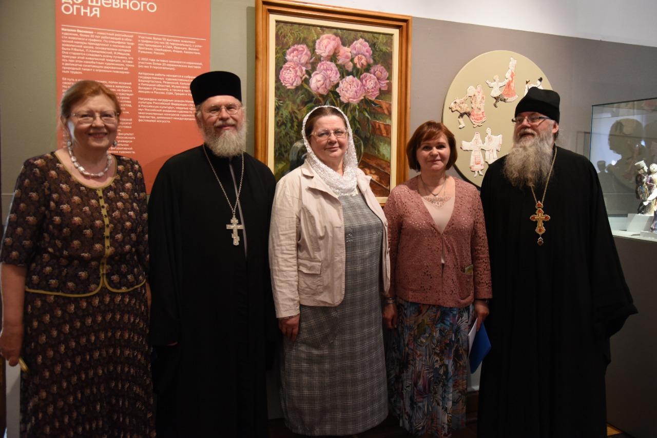Тамара Викторовна Анохина, член Координационного совета по духовно-нравственному воспитанию детей и молодёжи при Правительстве Калужской области отметила существенный вклад выставочных проектов Наталии Дмитриевны не только в просвещение детей, изучающих в школе основы православной культуры, но и в развитие соработничества Калужской митрополии с государством и обществом. Тамара Викторовна в подарок от Преосвященного Серафима, епископа Бийского и Белокурихинского передала Наталии Дмитриевне ручной работы две куклы (семейную пару) в национальных костюмах. Владыка Серафим хорошо знаком с супругами Овсиенко с 2012 года, когда, будучи исполняющим обязанности наместника Свято-Пафнутьев Боровского монастыря, знакомил Николая Павловича и Наталию Дмитриевну с монастырём, рассказывая не только о жизни братии в старинной обители, но и о проводимой монастырём обширной духовно-просветительской деятельности.