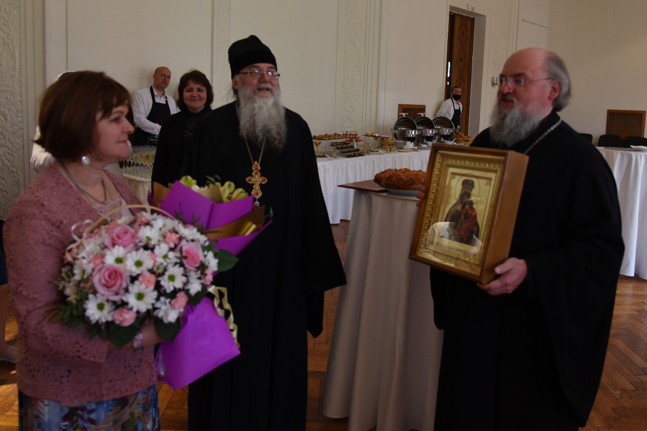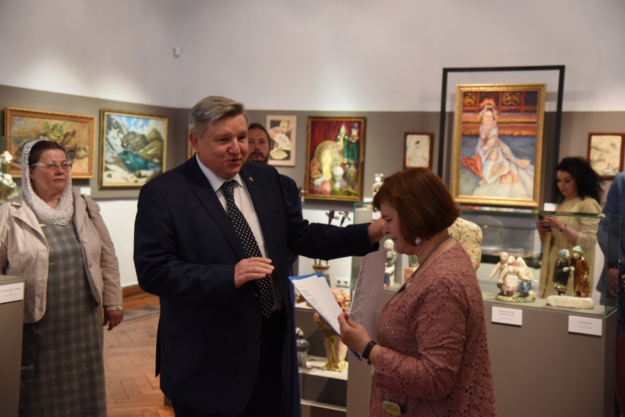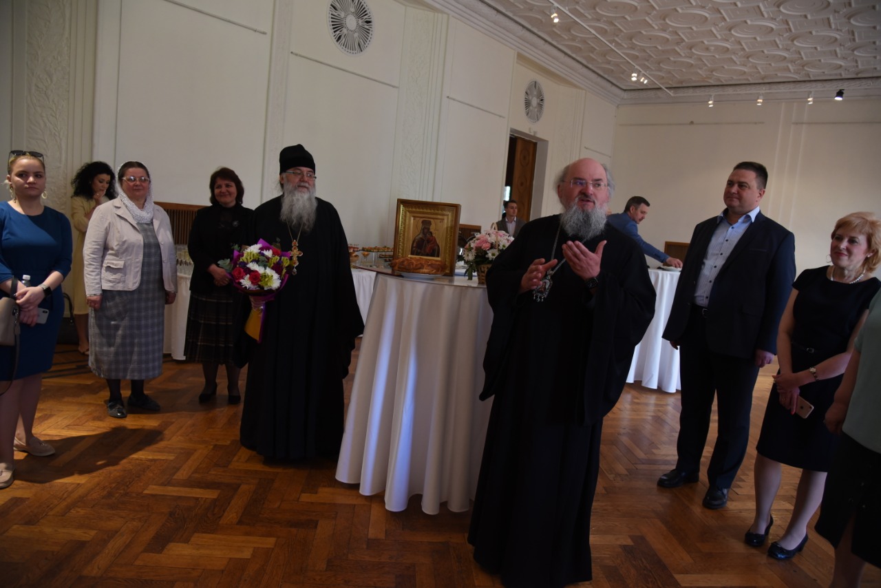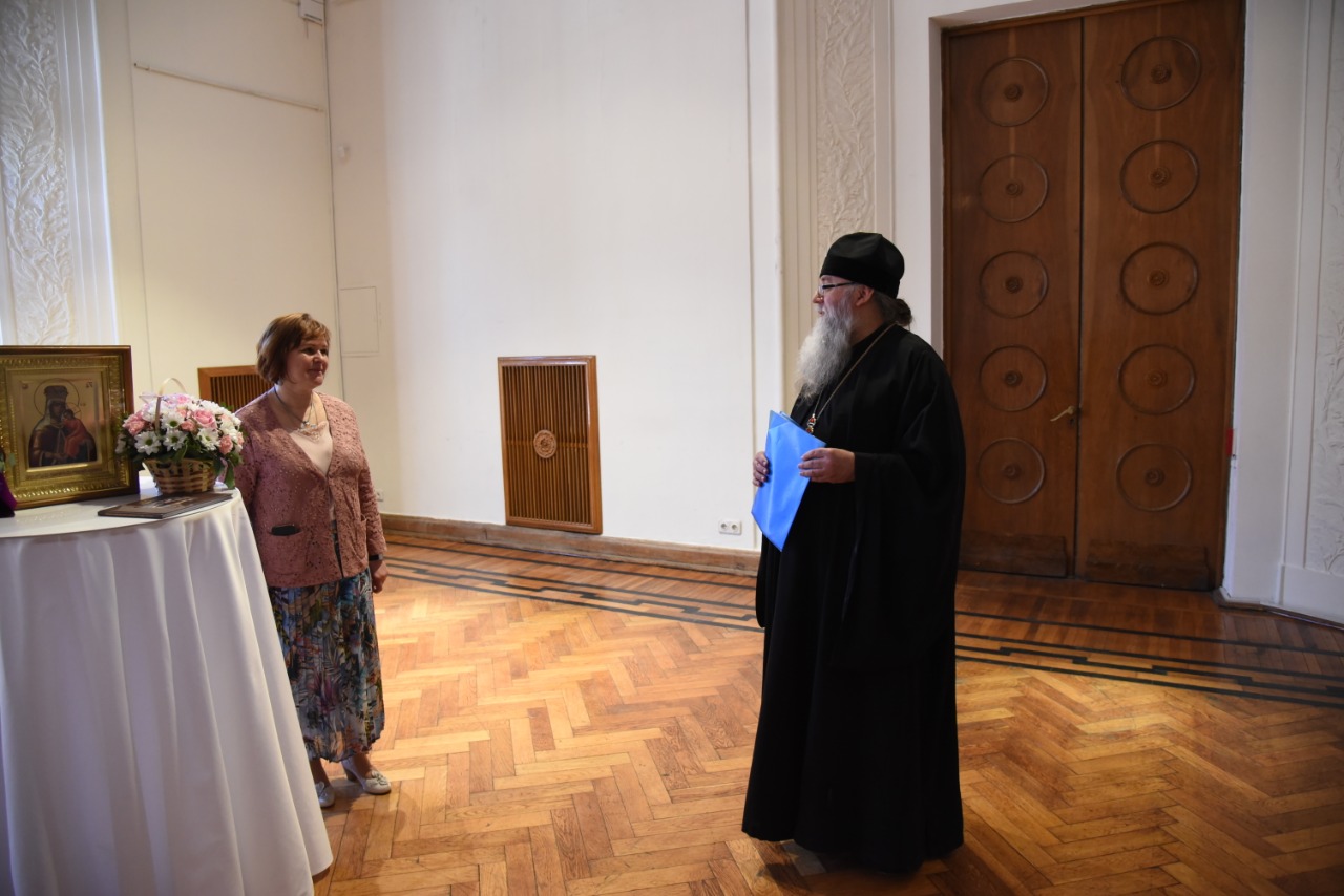 Тамара Викторовна Анохина, член Координационного совета по духовно-нравственному воспитанию детей и молодёжи при Правительстве Калужской области отметила существенный вклад выставочных проектов Наталии Дмитриевны не только в просвещение детей, изучающих в школе основы православной культуры, но и в развитие соработничества Калужской митрополии с государством и обществом. Тамара Викторовна в подарок от Преосвященного Серафима, епископа Бийского и Белокурихинского передала Наталии Дмитриевне ручной работы две куклы (семейную пару) в национальных костюмах. Владыка Серафим хорошо знаком с супругами Овсиенко с 2012 года, когда, будучи исполняющим обязанности наместника Свято-Пафнутьев Боровского монастыря, знакомил Николая Павловича и Наталию Дмитриевну с монастырём, рассказывая не только о жизни братии в старинной обители, но и о проводимой монастырём обширной духовно-просветительской деятельности.