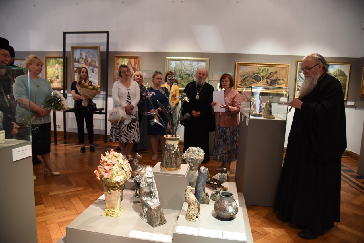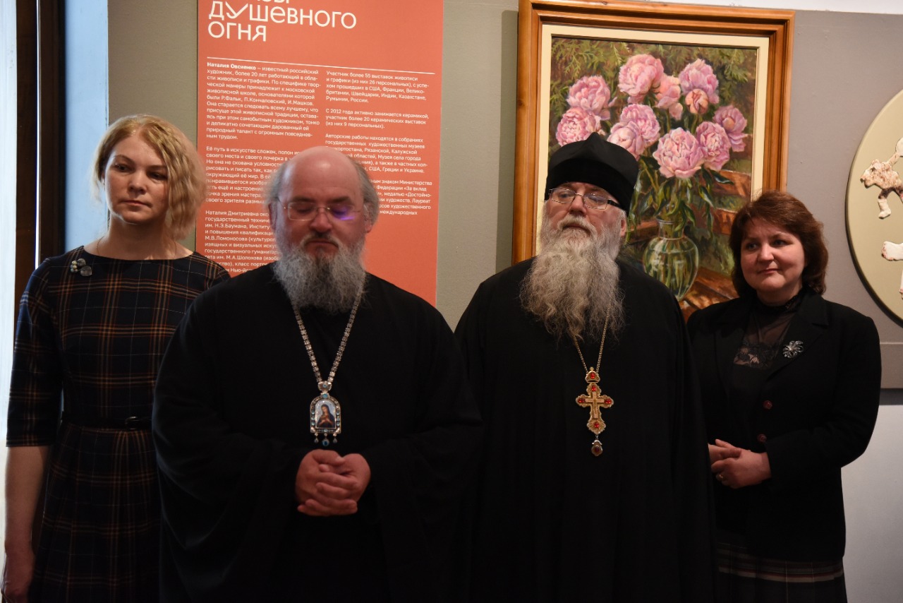 Преосвященный Никита, епископ Козельский и Людиновский в своём приветствии подчеркнул значительный вклад Наталии Дмитриевны в развитие культуры в Калужском крае благодаря высокому уровню создаваемых ею творческих работ, активной выставочной деятельности, доступности и открытости в общении. Владыка Никита отметил поддержку в творческой деятельности супруга Наталии Дмитриевны – Николая Павловича Овсиенко, подчеркнув, что их семья является достойным примером для современников.