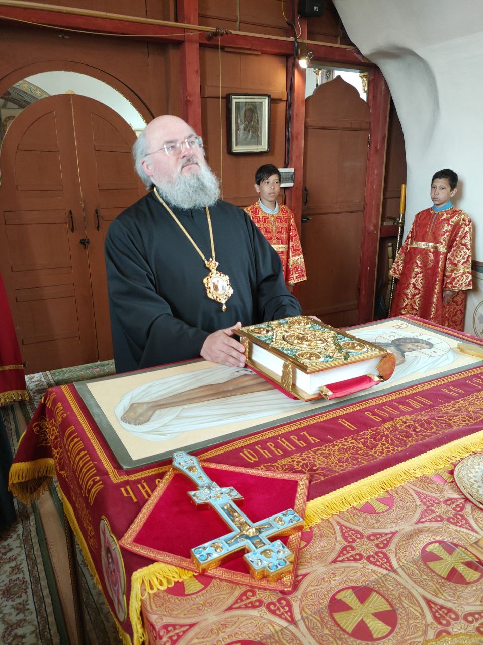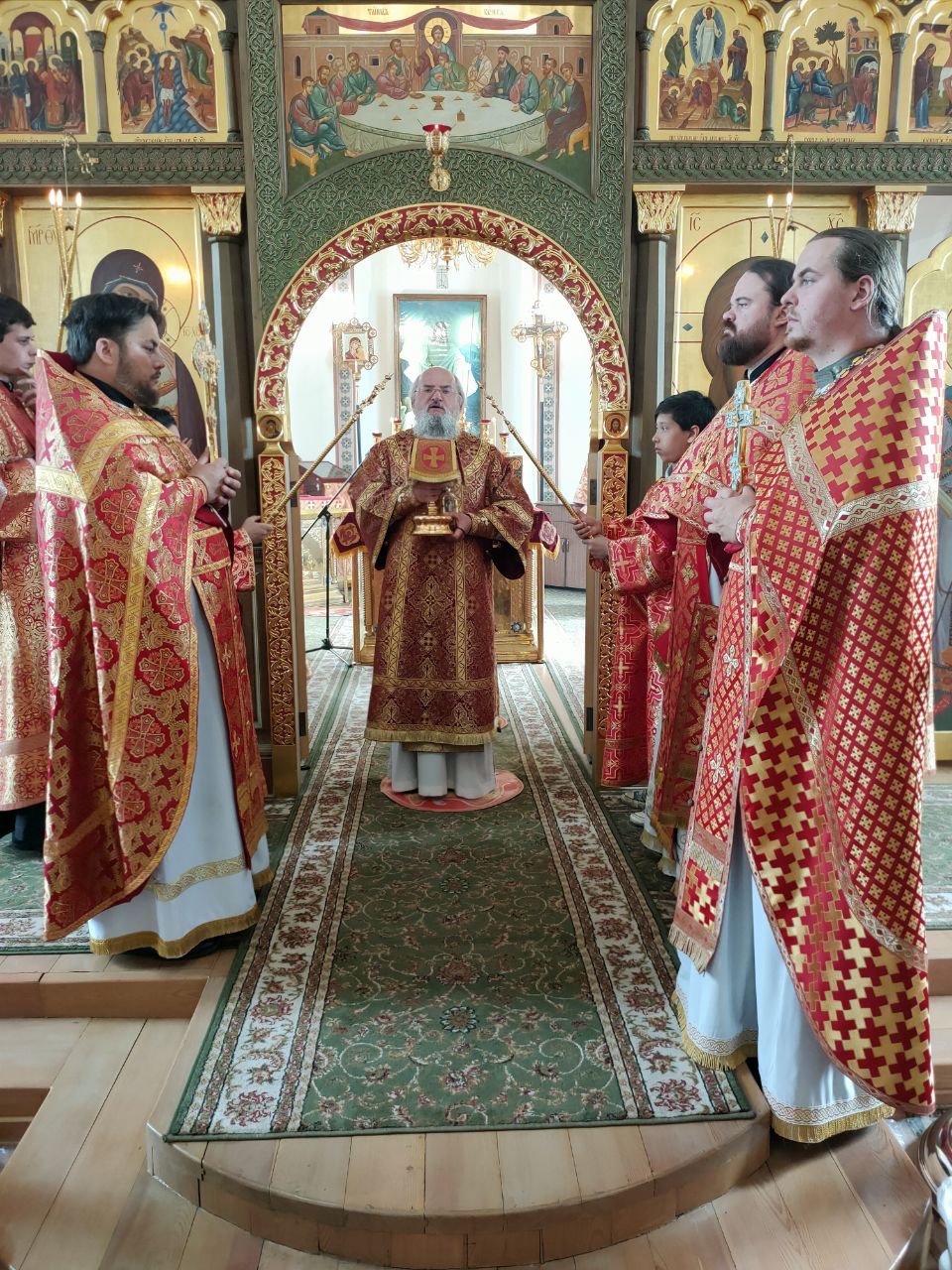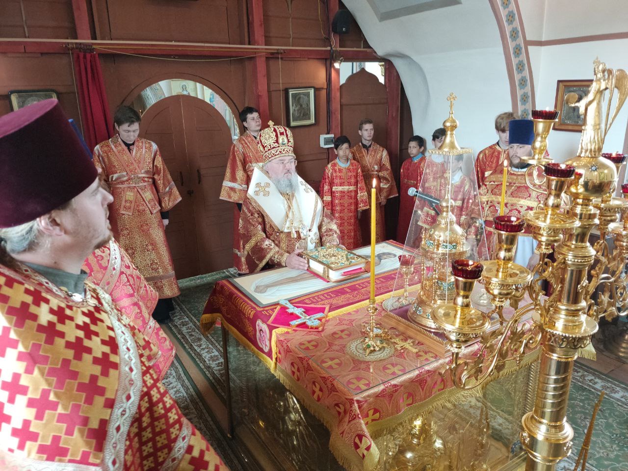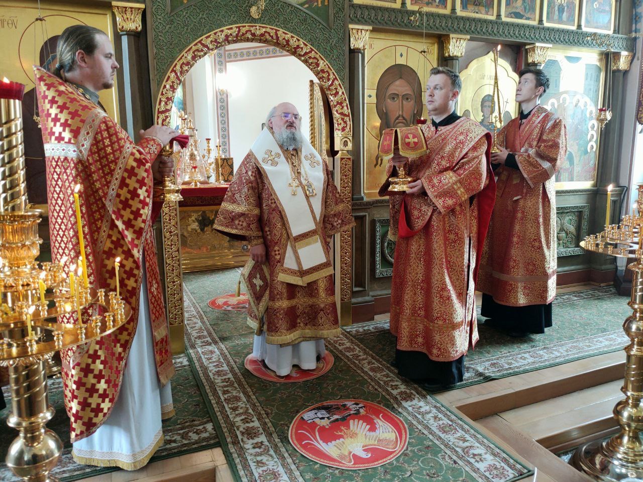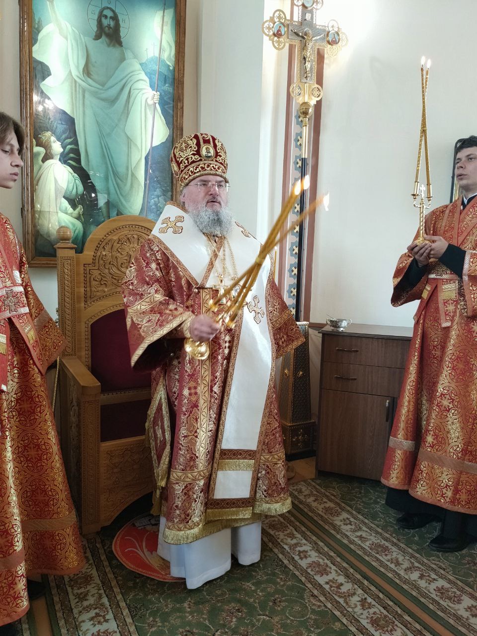 Архипастырю сослужили: настоятель храма протоиерей Сергий Сычев, протоиерей Антоний Хатунцев, иерей Виктор Носов, диакон Евгений Ковригин.