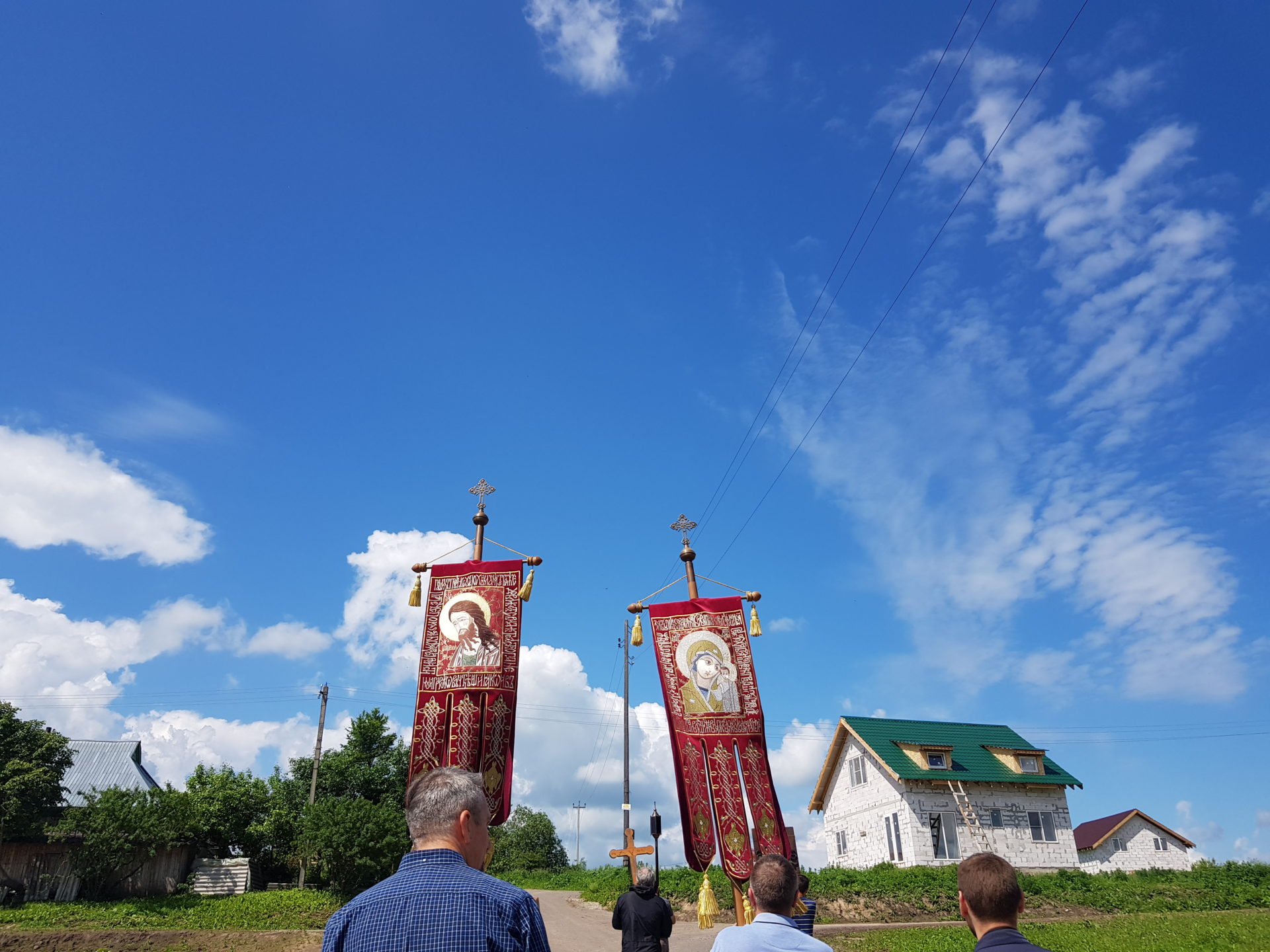 После отпуста литургии состоялся праздничный крестный ход по селу, в продолжении которого непрерывно звучал колокольный звон.