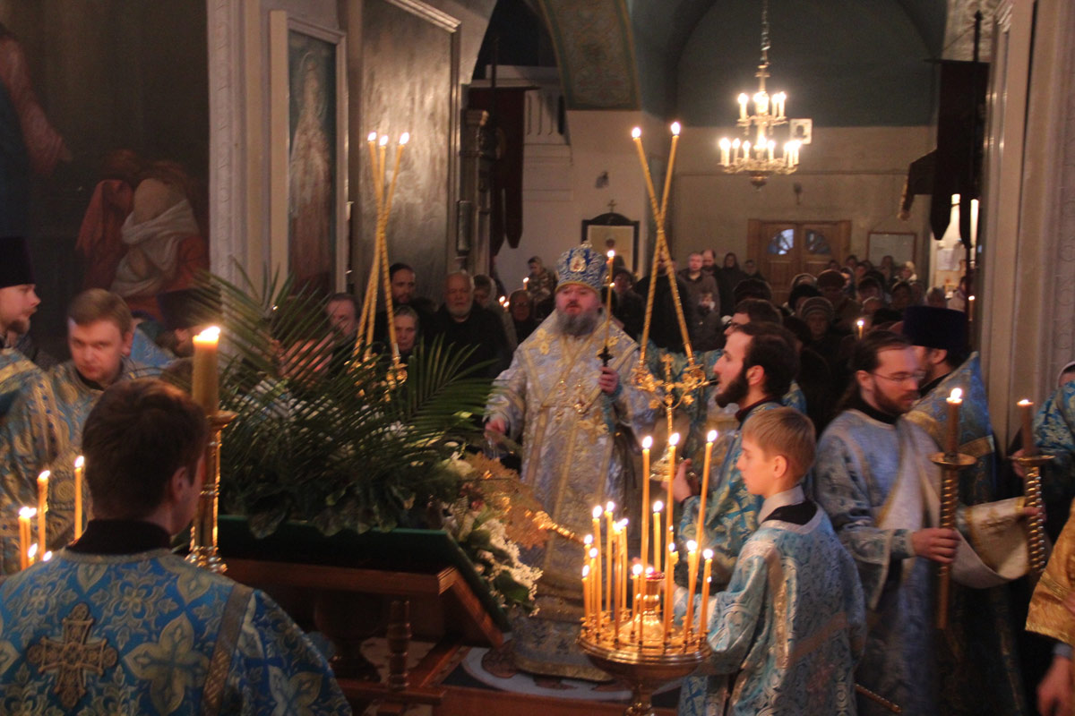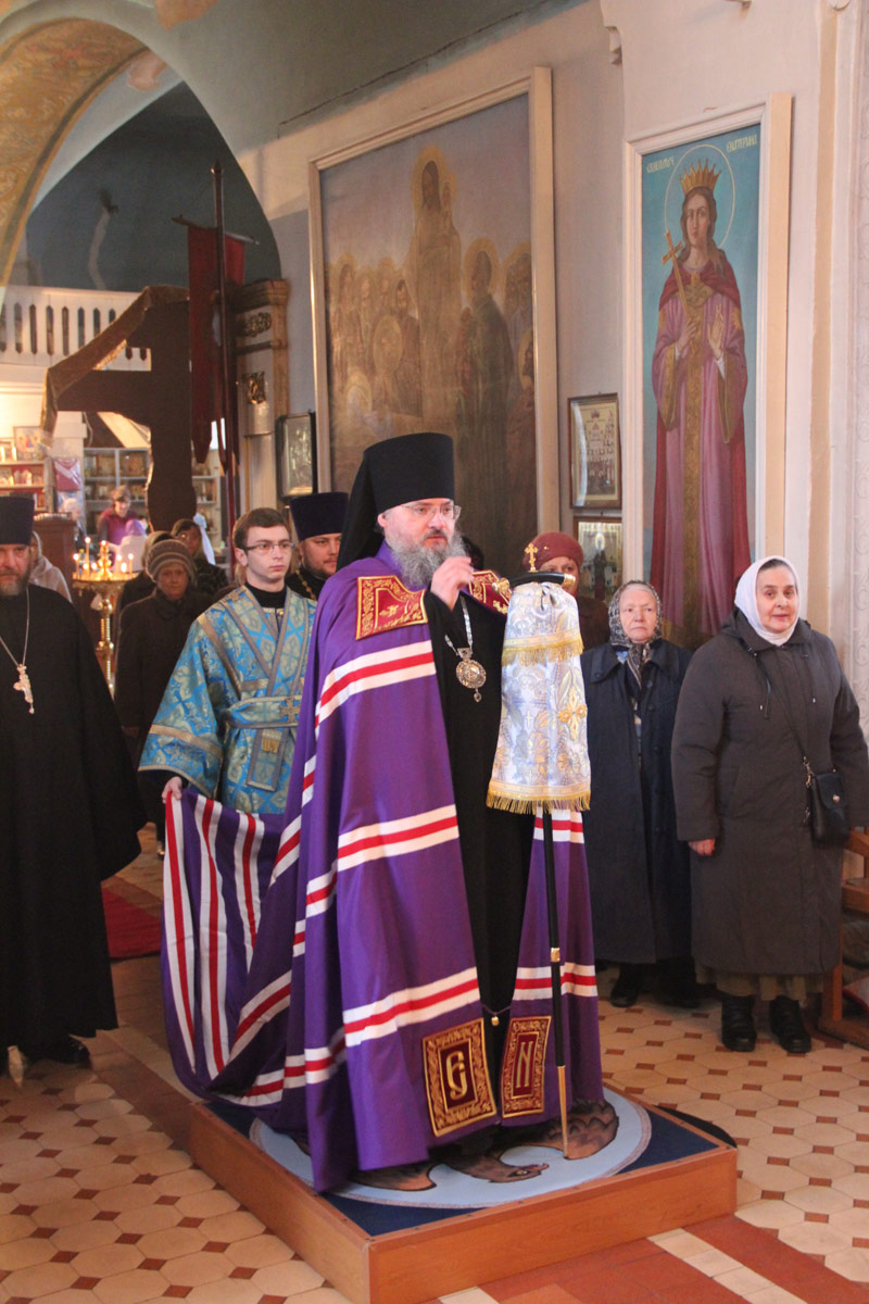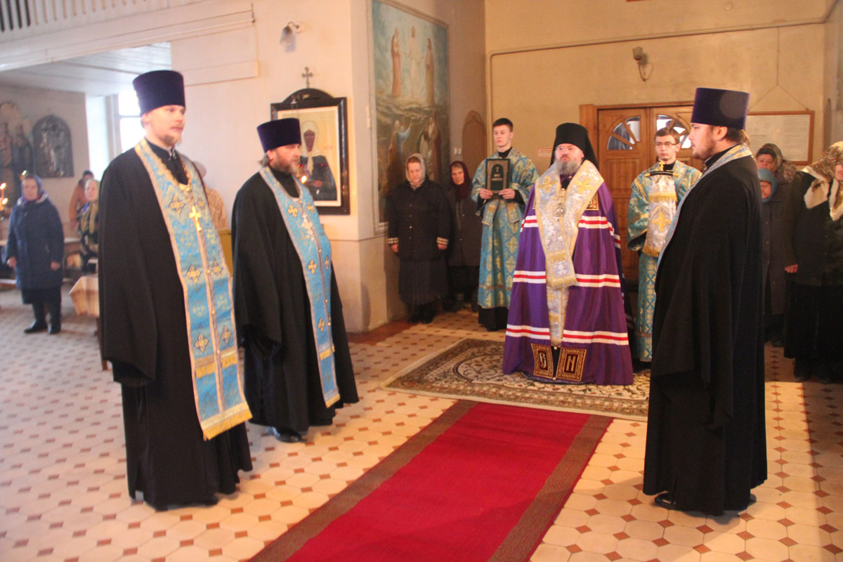 Его Преосвященству сослужили протоиерей Павел Морозов, иерей Антоний Хатунцев, иерей Сергий Барыкин, диакон Евгений Ковригин и диакон Тихон Худяков.
