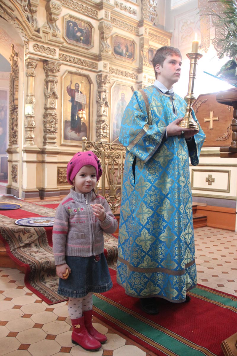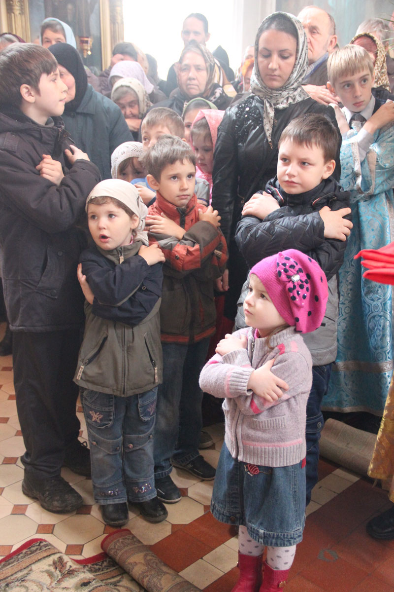 После отпуста литургии в центре храма пред иконой праздника священнослужители совершили славление праздника, а затем владыка обратился к молящимся с архипастырским словом. Маленькие прихожане получили из рук владыки сладкие подарки.