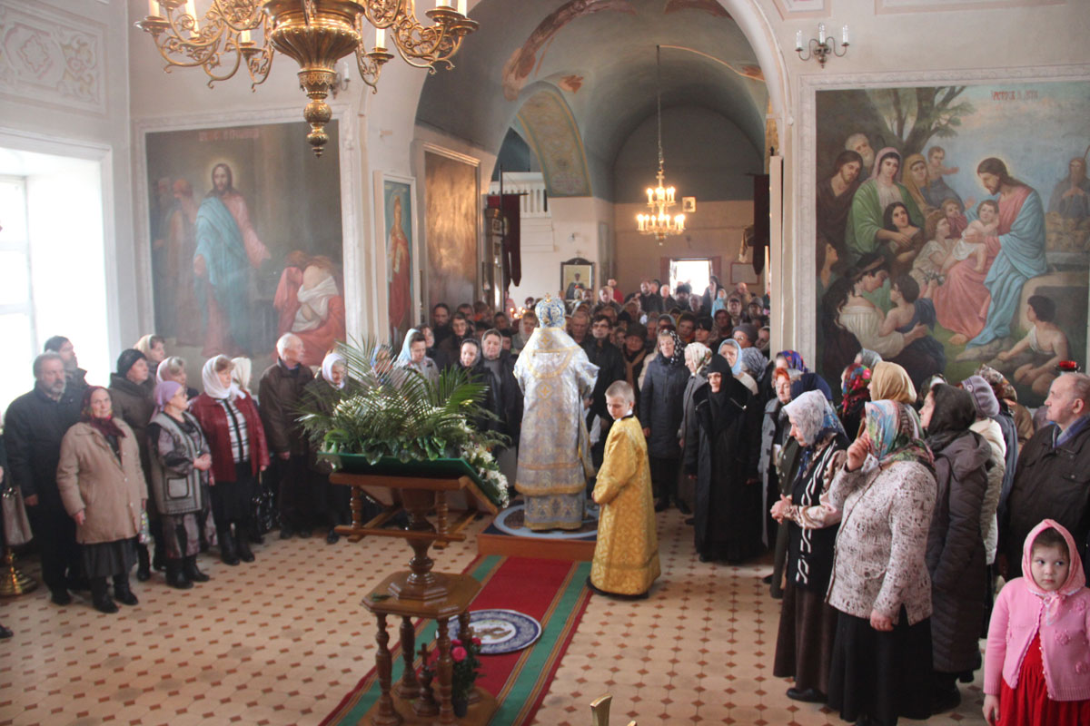 Епископ Козельский и Людиновский Никита совершил всенощное бдение и Божественную литургию в Благовещенском храме города Козельска.