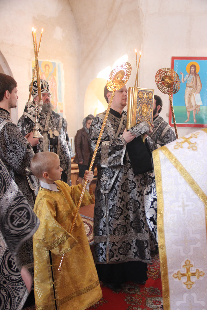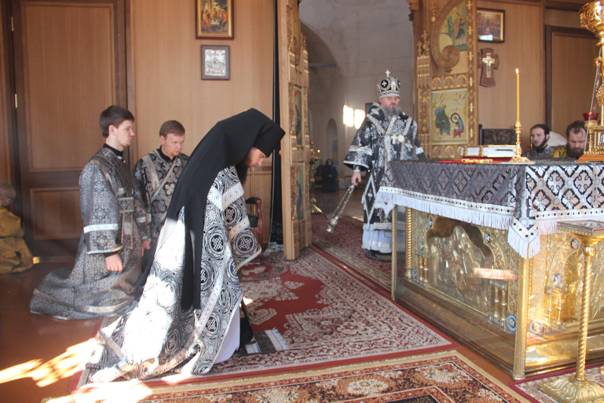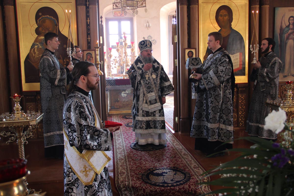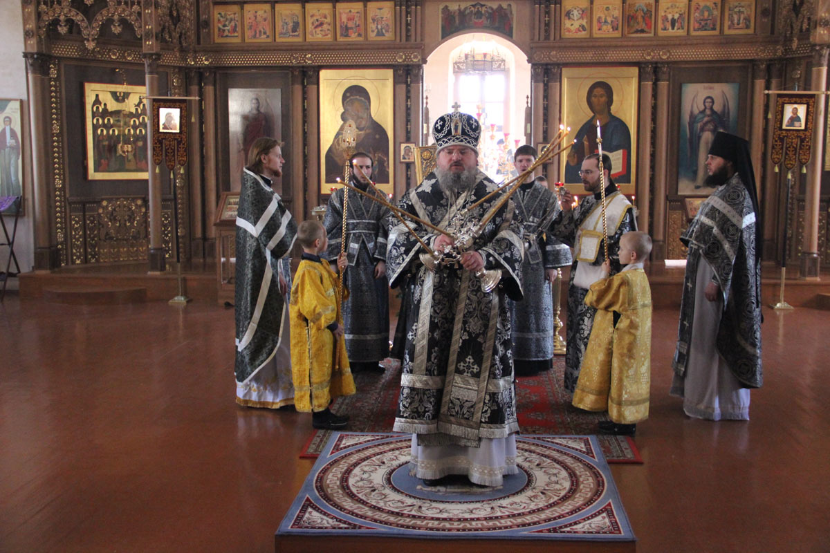 Епископ Козельский и Людиновский Никита совершил Литургию Преждеосвященных Даров в Свято-Успенском кафедральном соборе города Козельска. Архипастырю сослужили: иеромонах Паисий (Курмаз), иерей Елисей Тимофеев, диакон Евгений Ковригин и диакон Тихон Худяков.