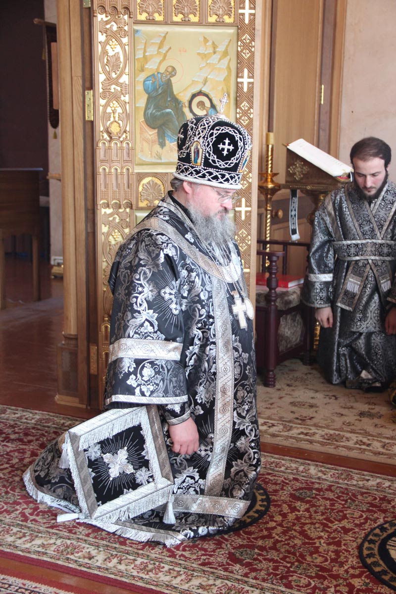 Перед отпустом литургии, последний раз в завершающемся Великом посту, владыка возгласил молитву святого преподобного Ефрема Сирина « Господи и Владыка живота моего…».