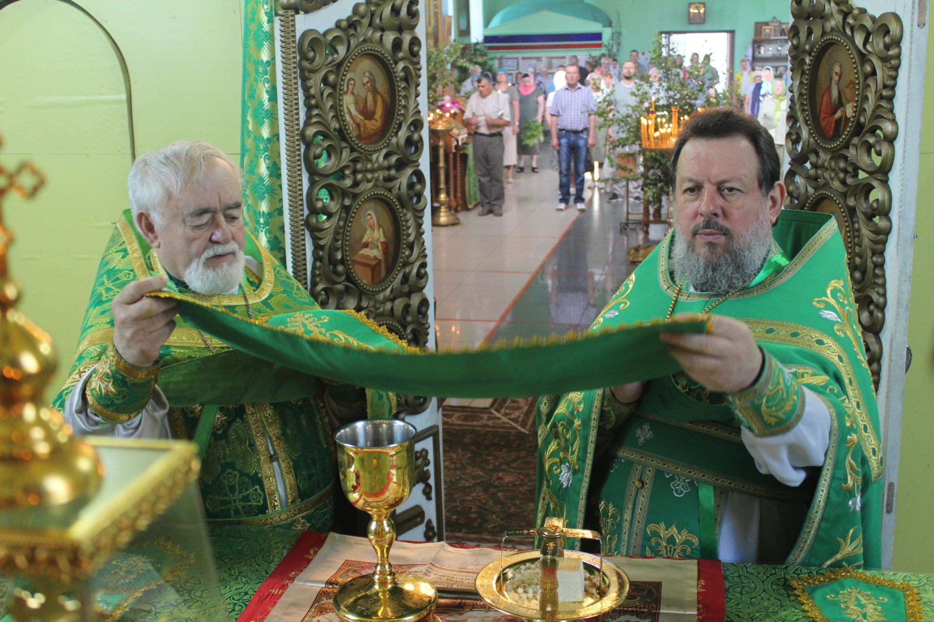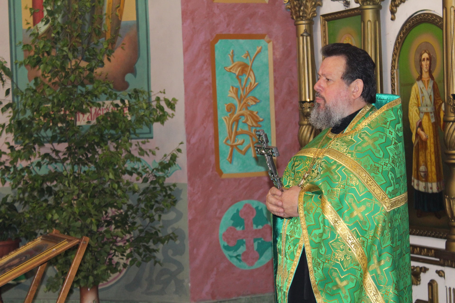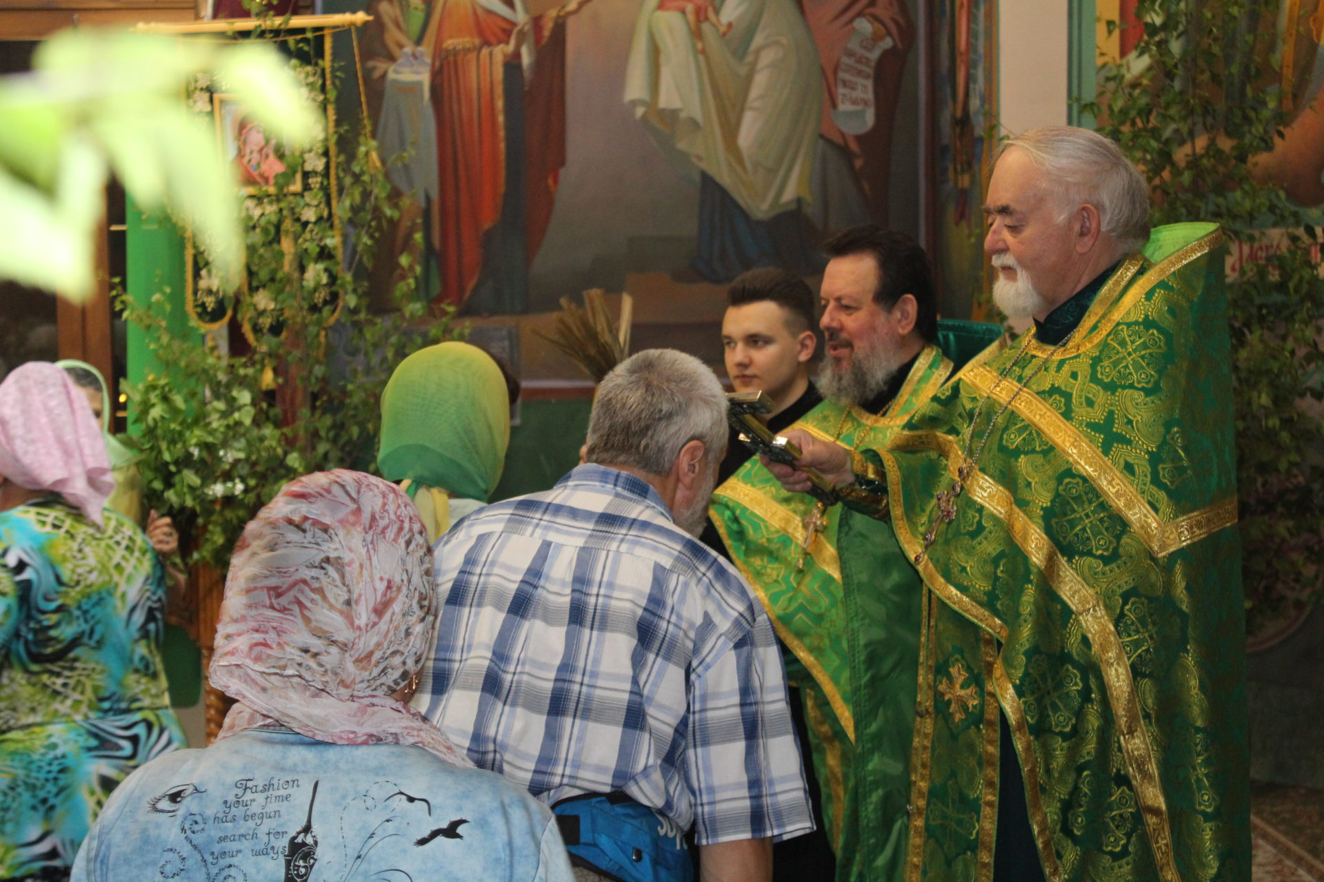 За Божественной литургией протоиерей Василий обратился к молящимся с проповедью. «Всех вас, дорогие братья и сестры, сердечно поздравляю с Днем Святой Троицы Все наши церковные праздники мы должны переживать в своей душе не как давно совершившееся событие, а как будто мы являемся непосредственными участниками этого события, ибо дело нашего спасения не просто когда-то совершилось, а оно совершается все время над каждым из нас и при нашем участии. Так, в Пятидесятницу, воспоминание о которой мы так торжественно с вами ныне празднуем, оканчиваются дела Христовы, относящиеся к Его телесному пребыванию на земле, и начинаются дела Духа Святаго. Сошествие Святого Духа на апостолов – это не только чудо, прославившее апостольскую Церковь, но и событие, сопряженное с делом нашего личного спасения. Дух Святой созидает наше духовное возрождение. Он открывает нам тайну о Пресвятой Троице. Сам Господь в прощальной беседе со Своими учениками сказал: “Я умолю Отца, и пошлет вам Утешителя… В тот день узнаете вы, что Я в Отце Моем”. Именно в Пятидесятницу открывается апостолам тайна Пресвятой Троицы, и хранится эта тайна на протяжении почти двух тысяч лет. Святая Церковь называет Троицу Живоначальной – и это потому, что для самой Церкви Троица является началом жизни. Все в Церкви живет и дышит Троицей. Все устремлено к Ней: и вероучения, и Таинства, богослужения, молитвы, покаяние и подвиги. Пятидесятница не оканчивается тем единственным торжественным днем, который был в Иерусалиме. Пятидесятница продолжается, и в течение всех прошедших лет до наших дней совершается она над каждым из нас, если мы только, действительно, стремимся всей душой к Богу и ищем Его.»