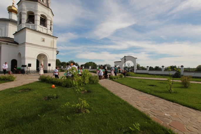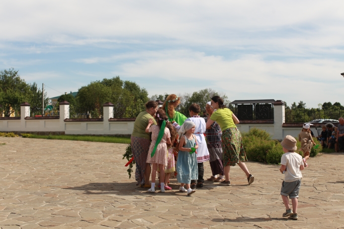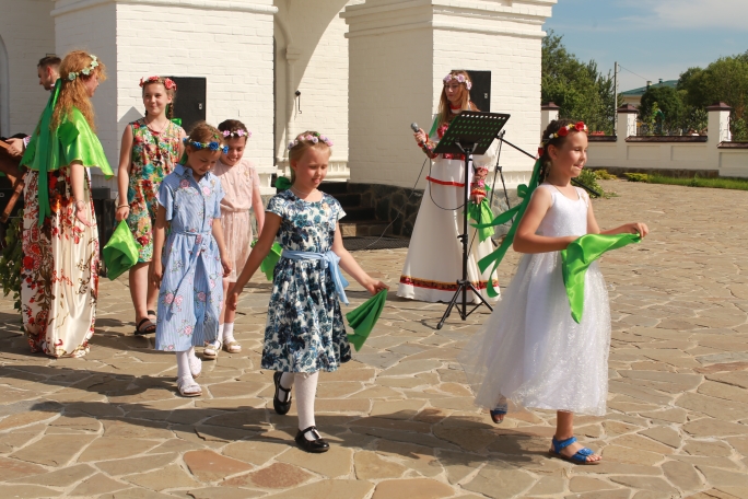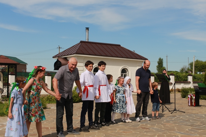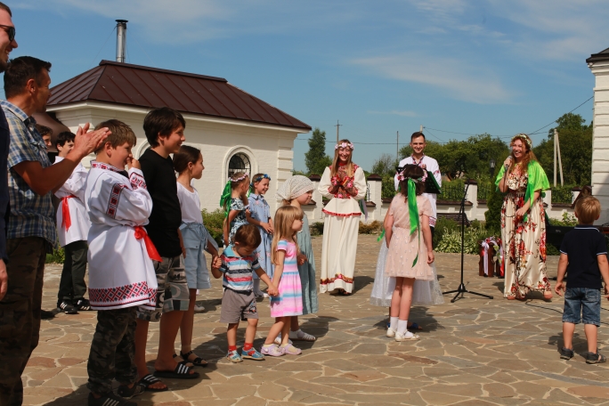 Очень постарались дети из воскресной школы, которые вместе с преподавателями и музыкальным руководителем подготовили замечательные выступления: водились хороводы, звучали песни о Родине и ее бескрайних просторах, исполнялись русские народные танцы. После творческой программы, под баян, была организована общая игра в старинную русскую забаву «Зайцы и плетень». В ней с радостью приняли участие и родители.
