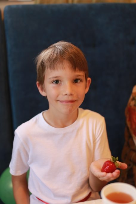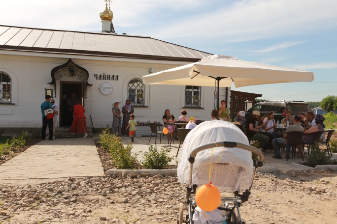 Как всегда, по издавна сложившейся доброй традиции детей ждало праздничное угощение в кафе «Птичка». За чаепитием дети и родители живо общались и делились своими яркими впечатлениями. Они рассказали, что в праздничной программе больше всего им понравилось срывать листочки с березки и читать на них поучительные поговорки.
