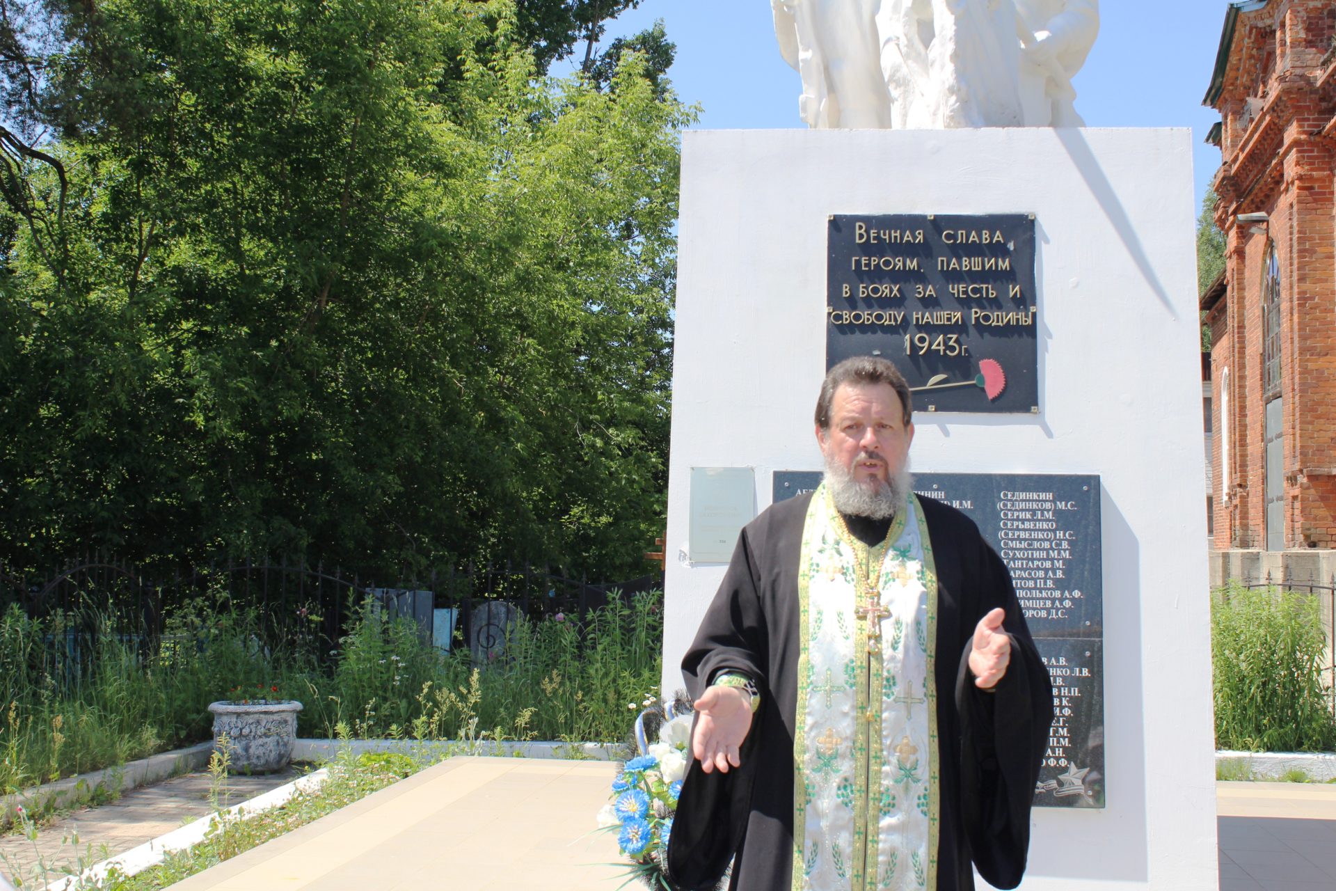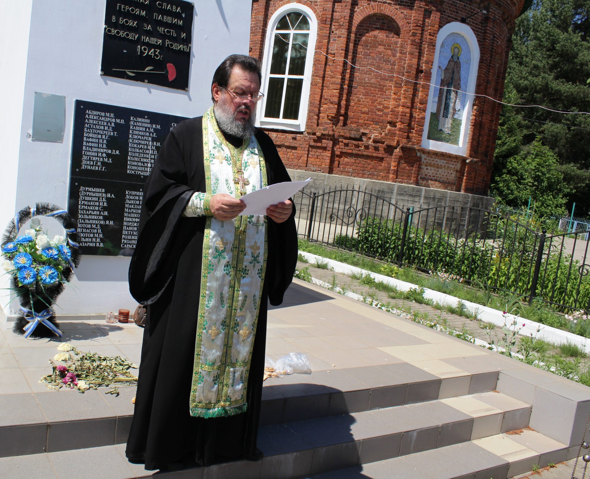 Обращаясь ко всем присутствующим, отец Василий сказал: «22 июня 1941 года – самый печальный день в истории нашей страны. В день памяти и скорби мы вспоминаем всех погибших в жесткой схватке с врагом, склоняем головы перед поколением советских людей, принесших нам Победу. Рядом с нами в День памяти и скорби сегодня стоят те, кто воевал, выжил, восстановил страну, наш город. С каждым годом этих людей все меньше. Они уходят. Скоро их не будет совсем. Сегодня им нужно от нас, последующих поколений, не так много: чтобы знали и не забывали о великом подвиге, который каждый из них совершил, жертвуя всем, ради того, чтобы мы жили. И нам необходимо помнить, благодаря кому мы живем, и сказать им спасибо. И пусть никто не будет забыт, и ничто не будет забыто… И каждый год 22 июня к памятникам и монументам героям этой войны малыши и взрослые пусть по-прежнему несут цветы и траурные гирлянды. И отдают дань уважения ныне живущим ветеранам.