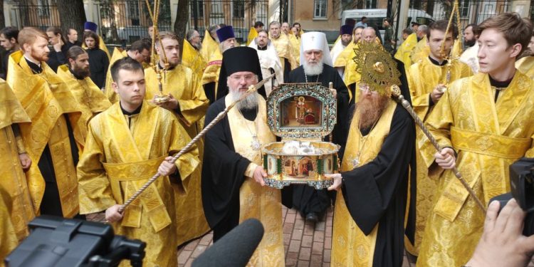 По благословению Святейшего Патриарха Московского и всея Руси Кирилла в связи с 800-летием со дня рождения благоверного князя верующие с крестным ходом проносят мощи святого Александра Невского по городам России и Белоруссии.