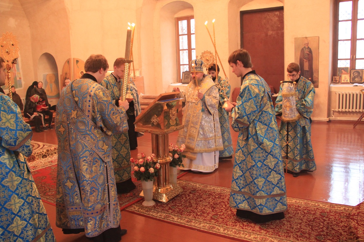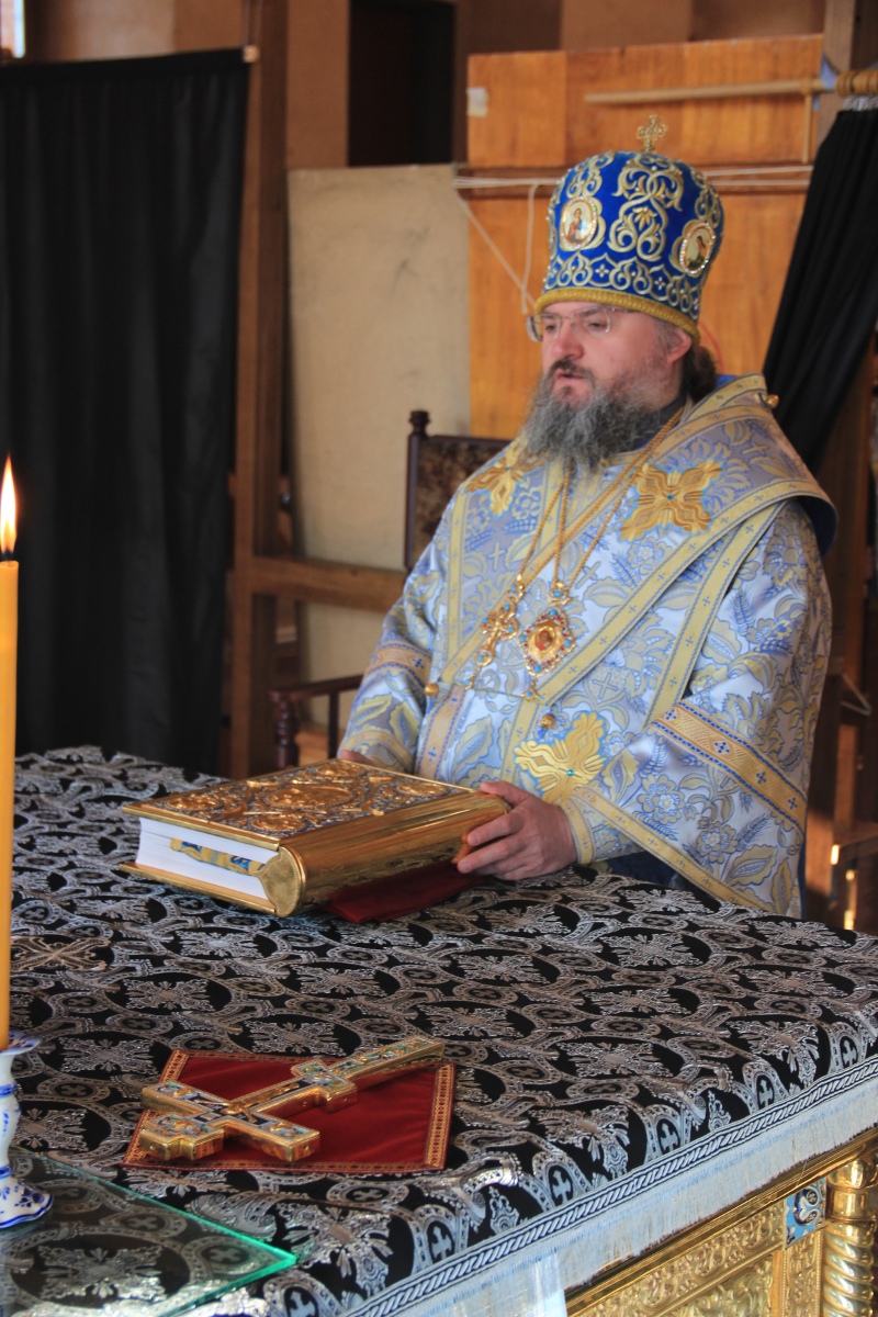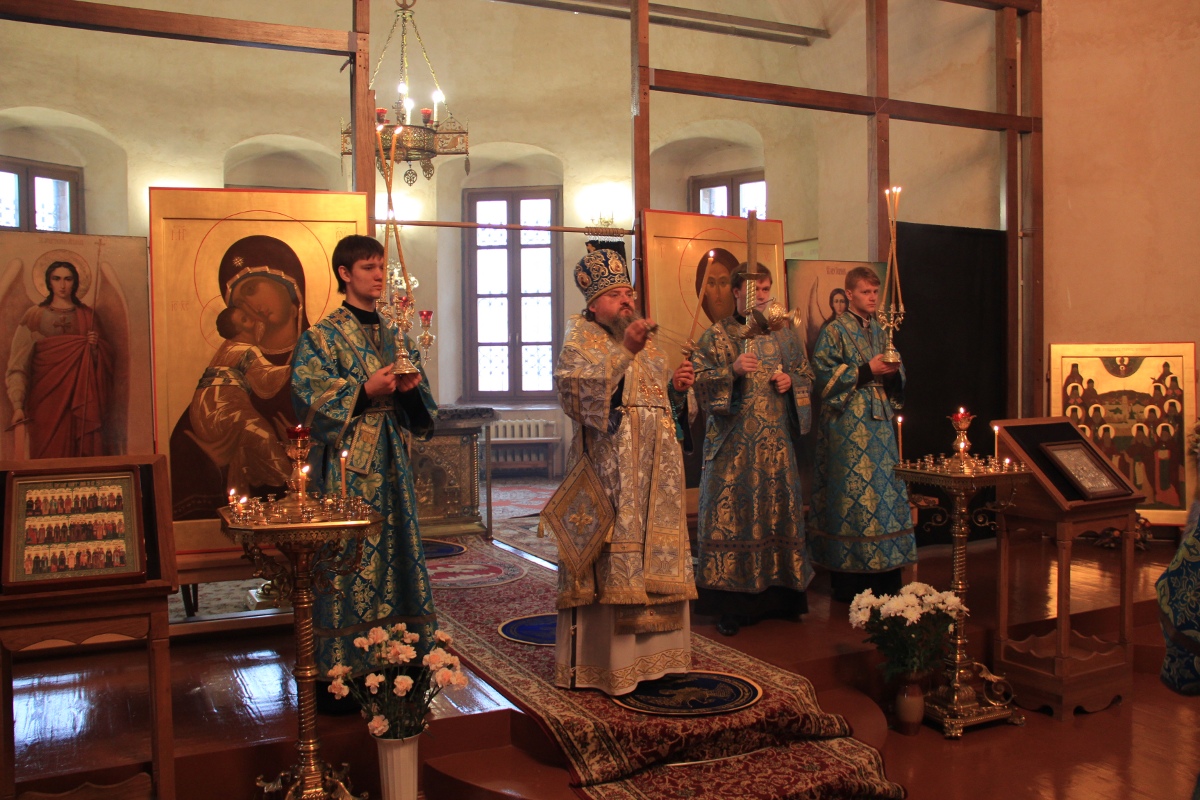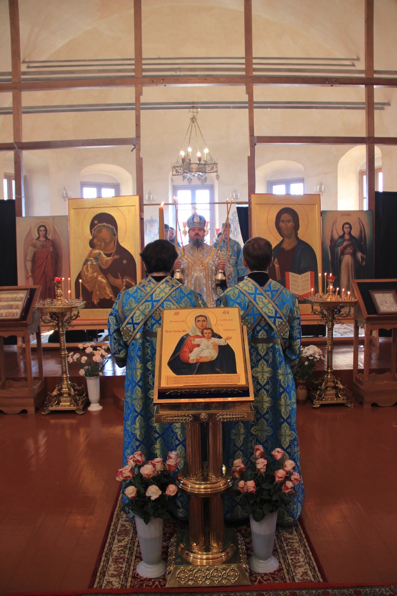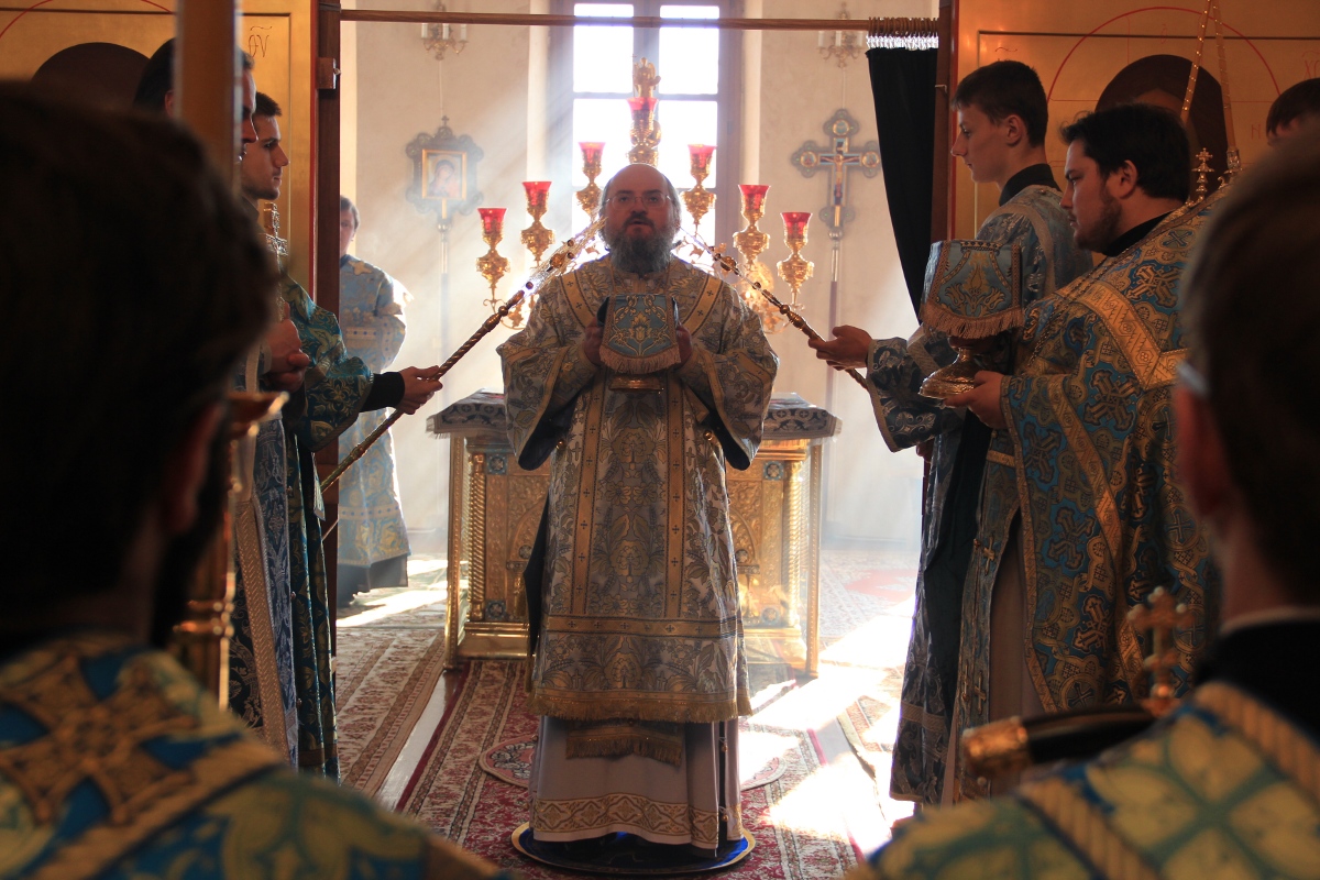 После отпуста богослужения священнослужители, пред образом Царицы Небесной, совершили славление праздника, а затем владыка обратился к молящимся со словом назидания.