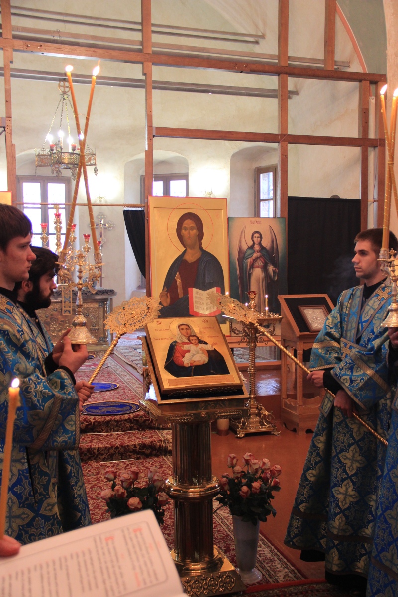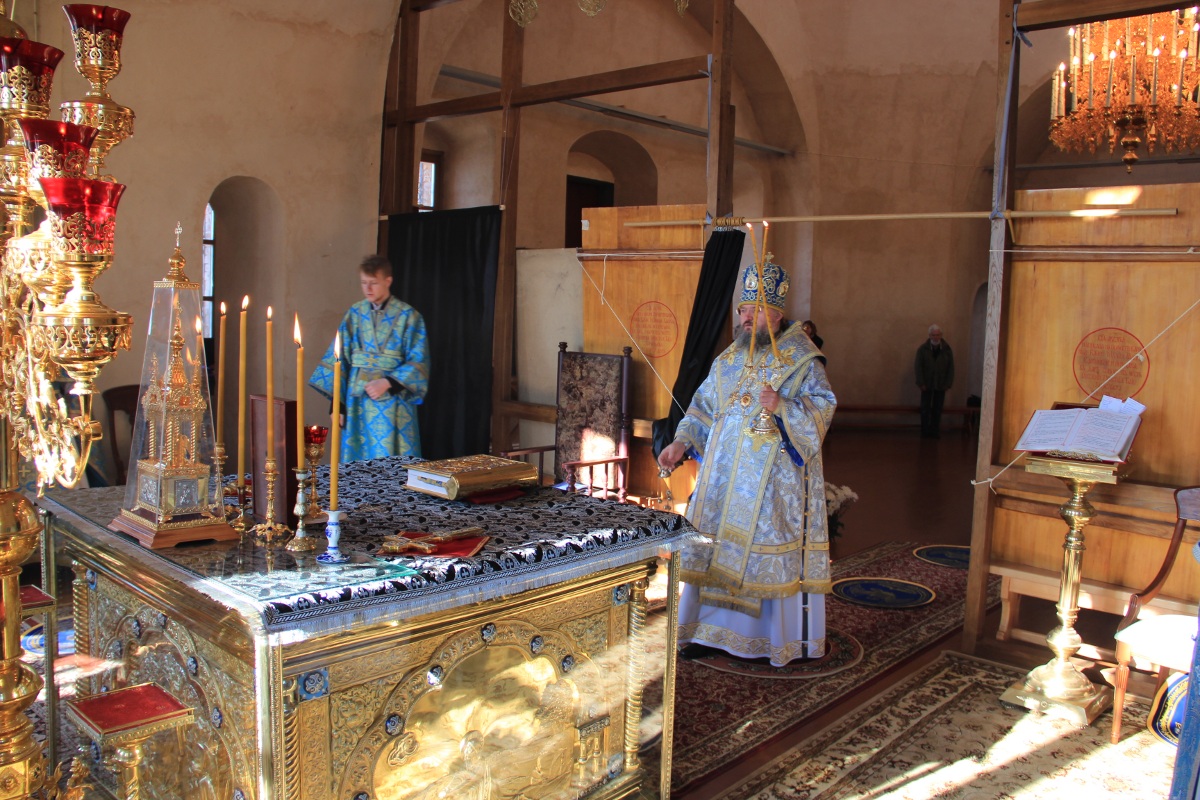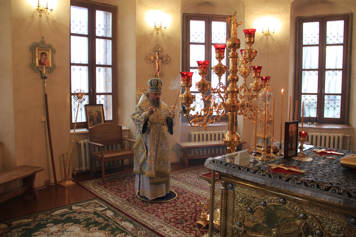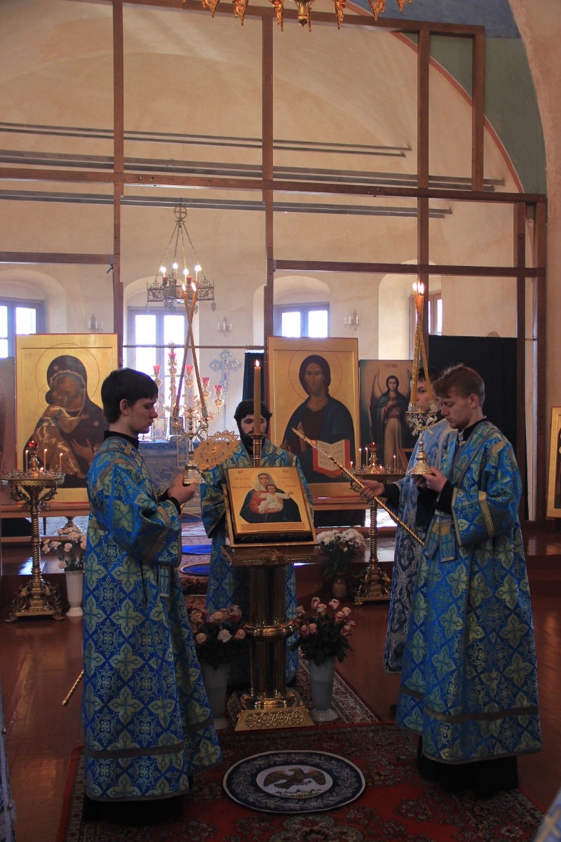 После отпуста богослужения священнослужители, пред образом Царицы Небесной, совершили славление праздника, а затем владыка обратился к молящимся со словом назидания.
