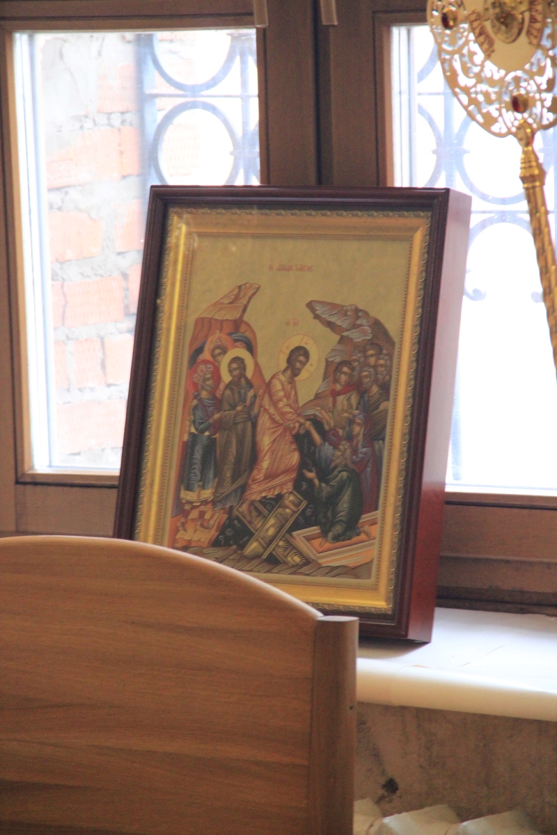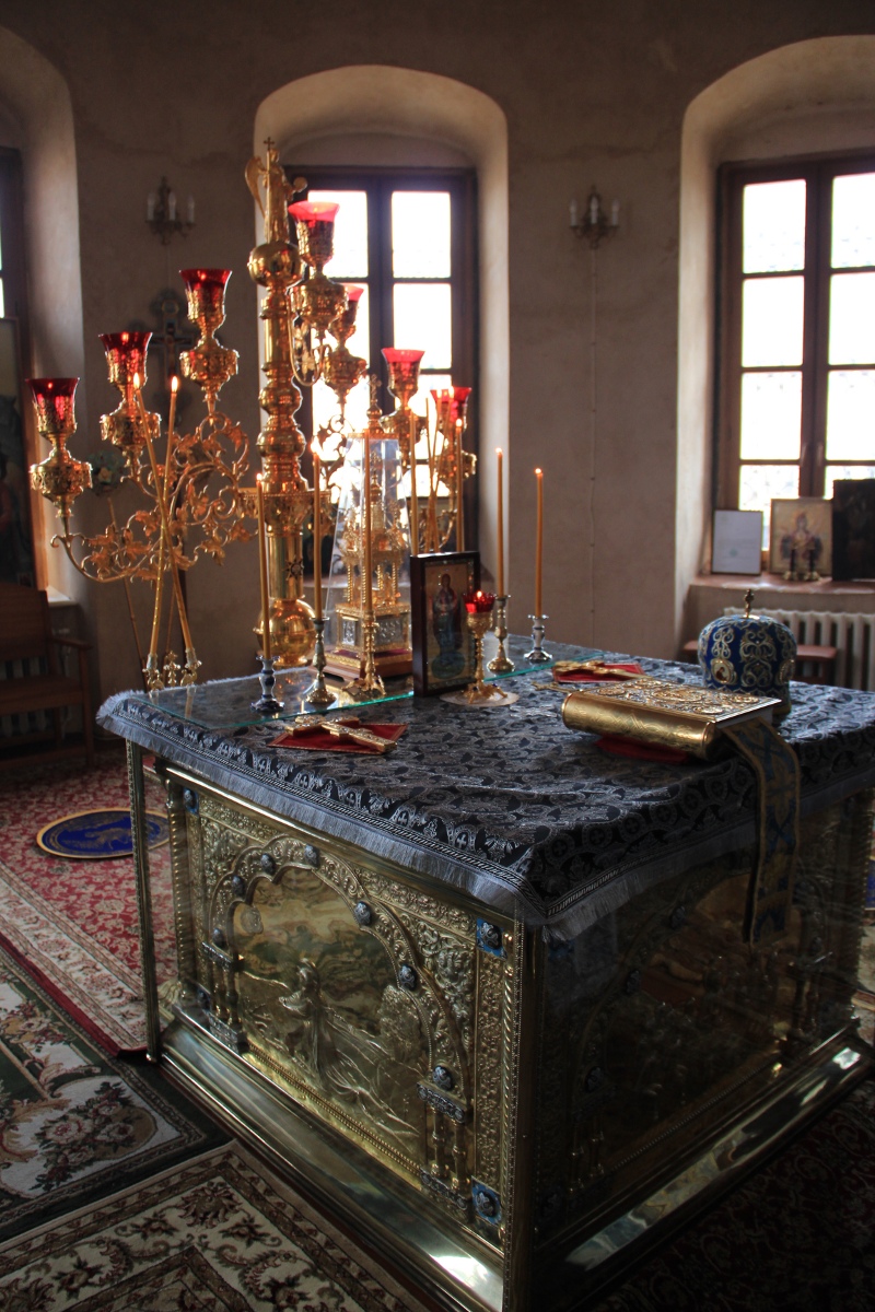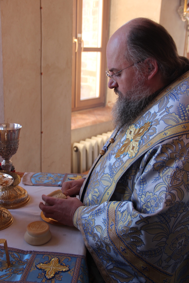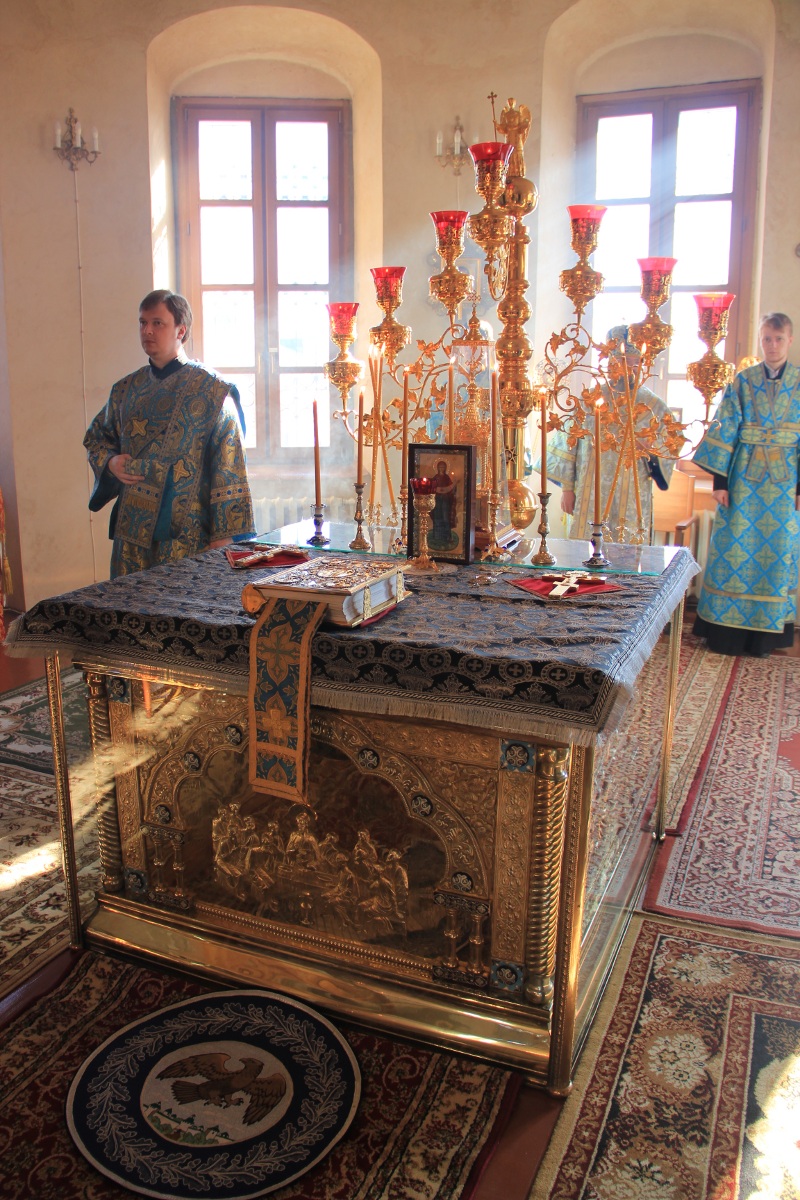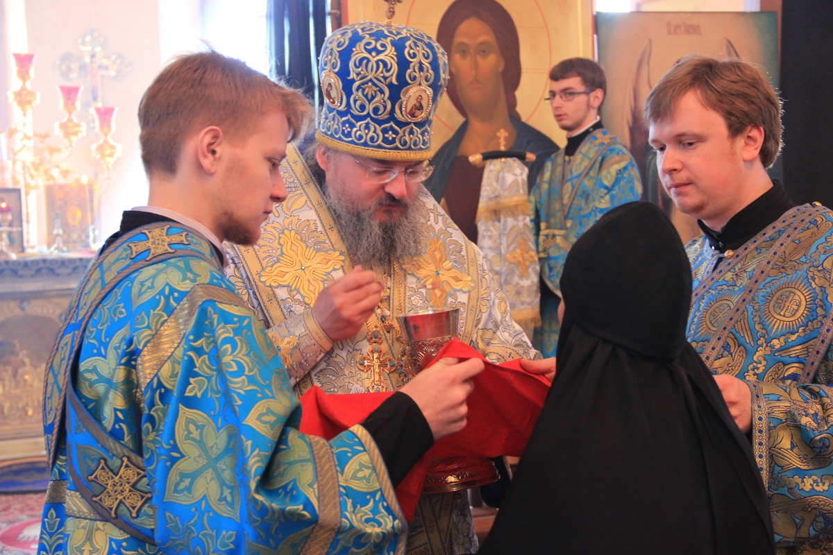 После отпуста богослужения священнослужители, пред образом Царицы Небесной, совершили славление праздника, а затем владыка обратился к молящимся со словом назидания.