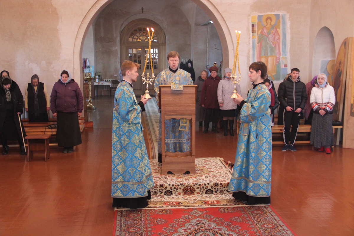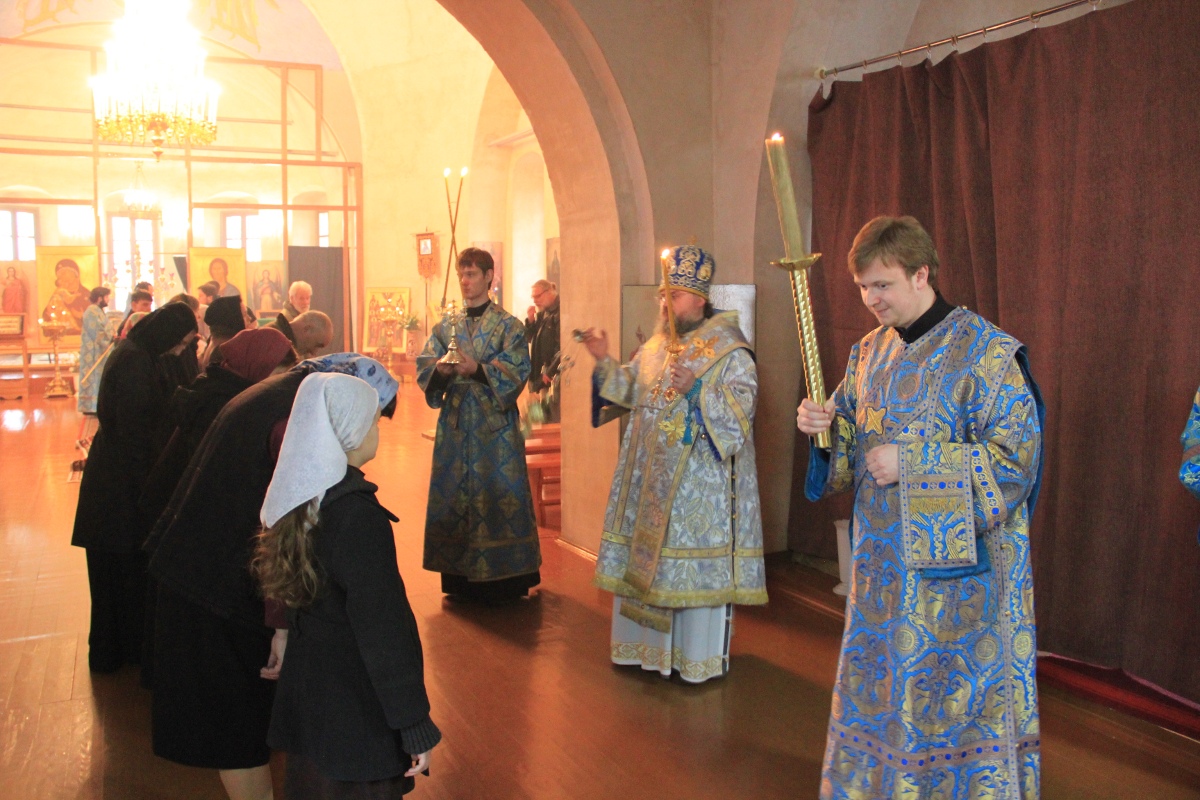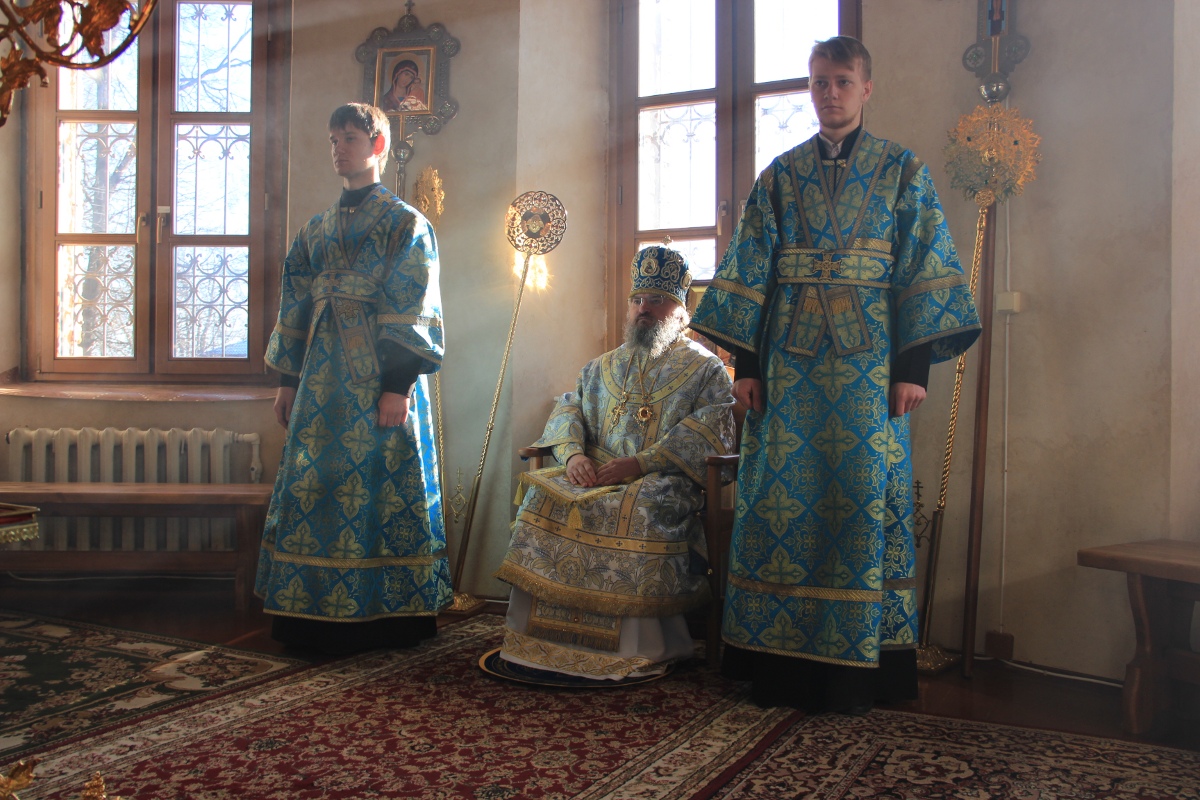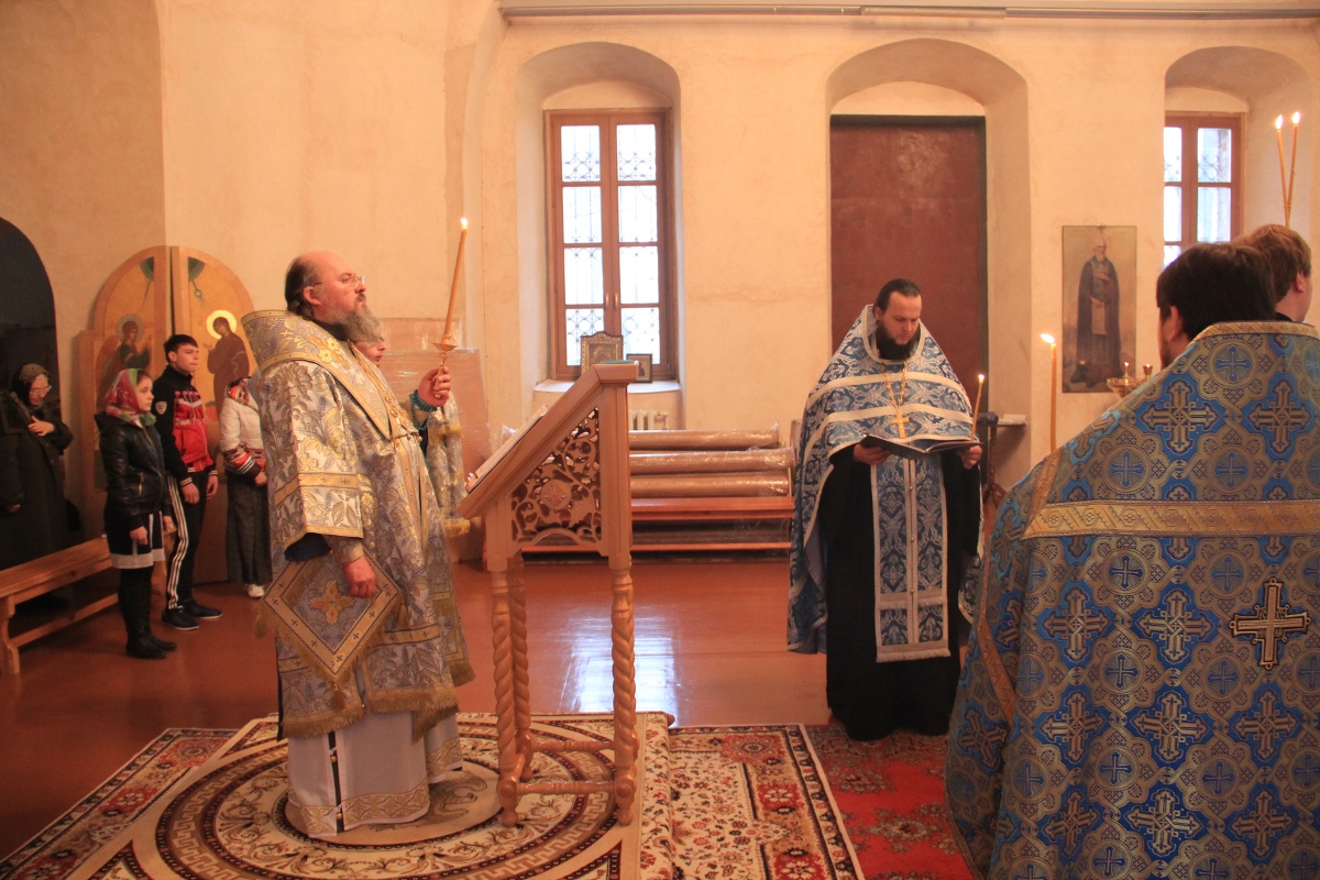 4-5 апреля. Похвала Пресвятой Богородицы (Суббота акафиста). Управляющий Козельской епархией епископ Козельский и Людиновский Никита совершил утреню с чтением акафиста Божией Матери и Божественную литургию святителя Иоанна Златоустого в кафедральном Успенском соборе города Козельска в сослужении соборного духовенства.