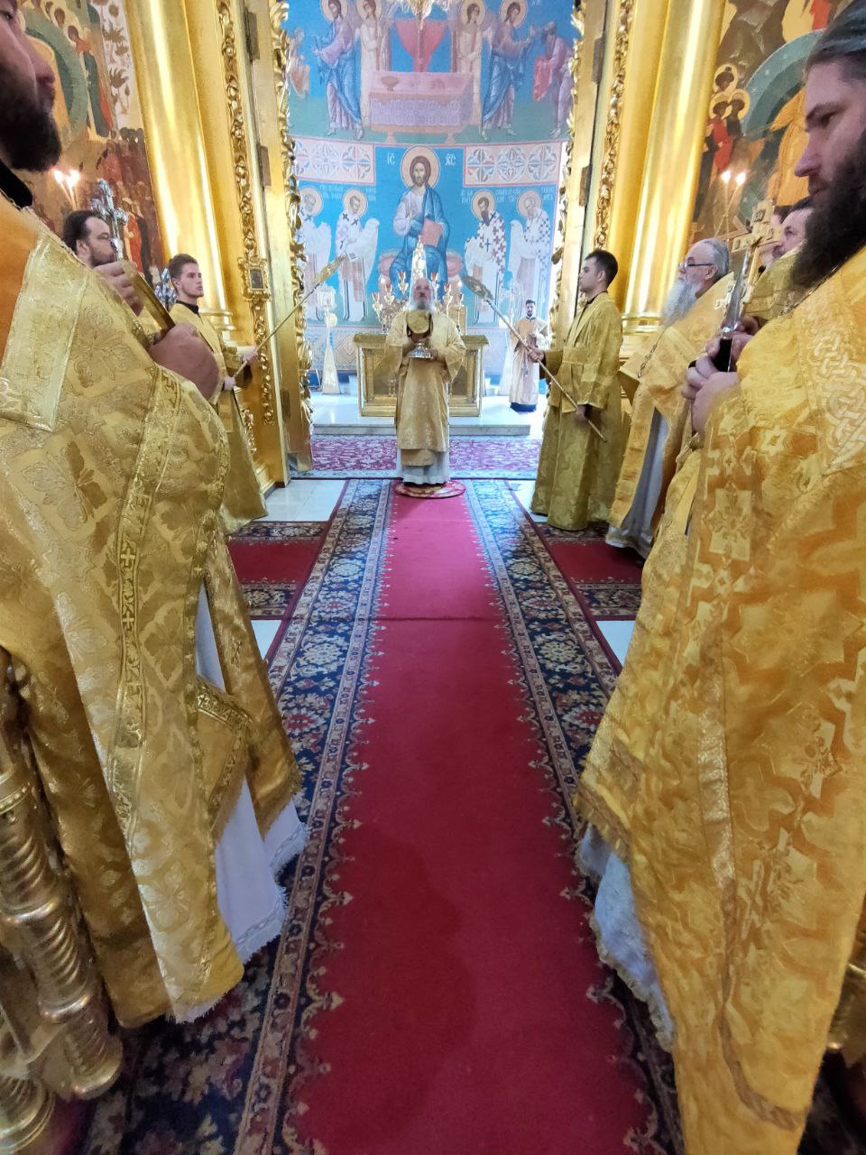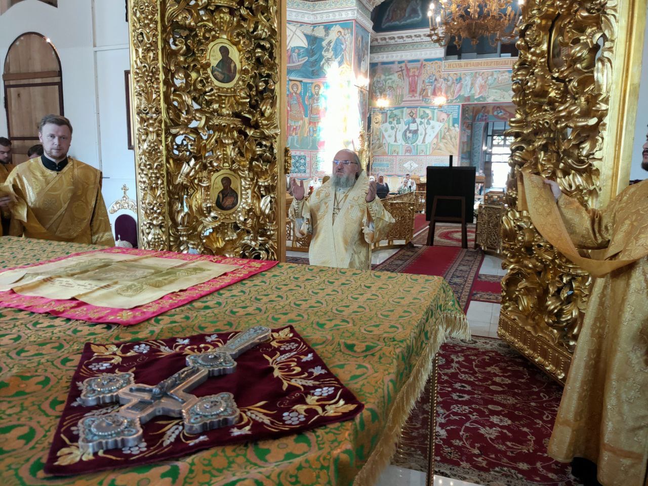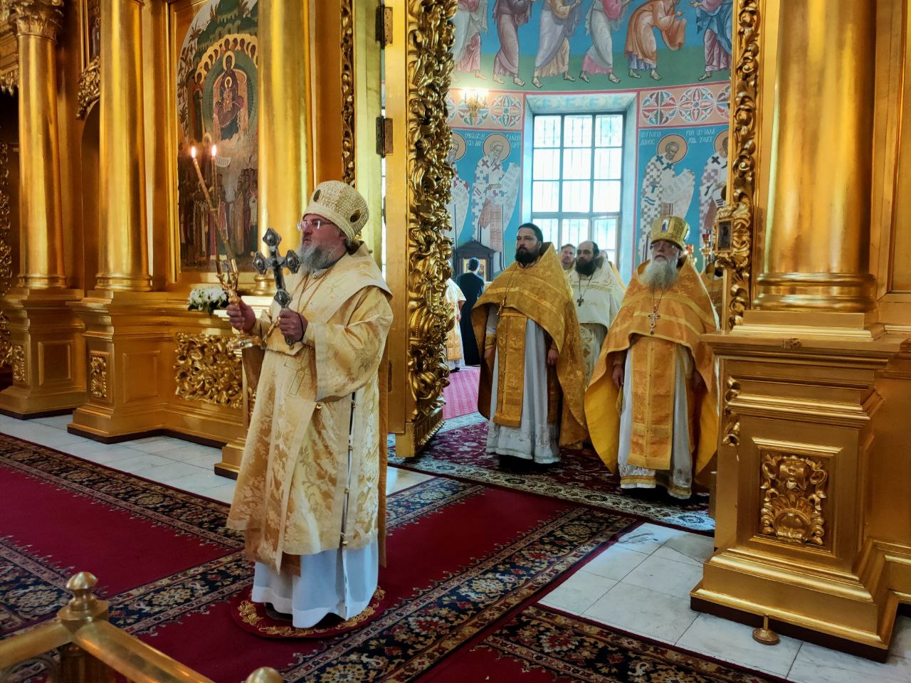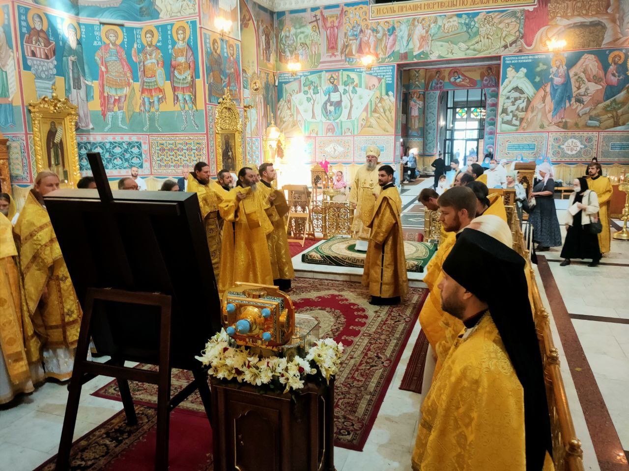 Первую Божественную литургию по прибытию святыни совершил епископ Козельский и Людиновский Никита в сослужении духовенства Козельской епархии.