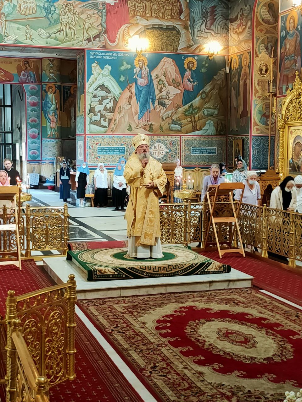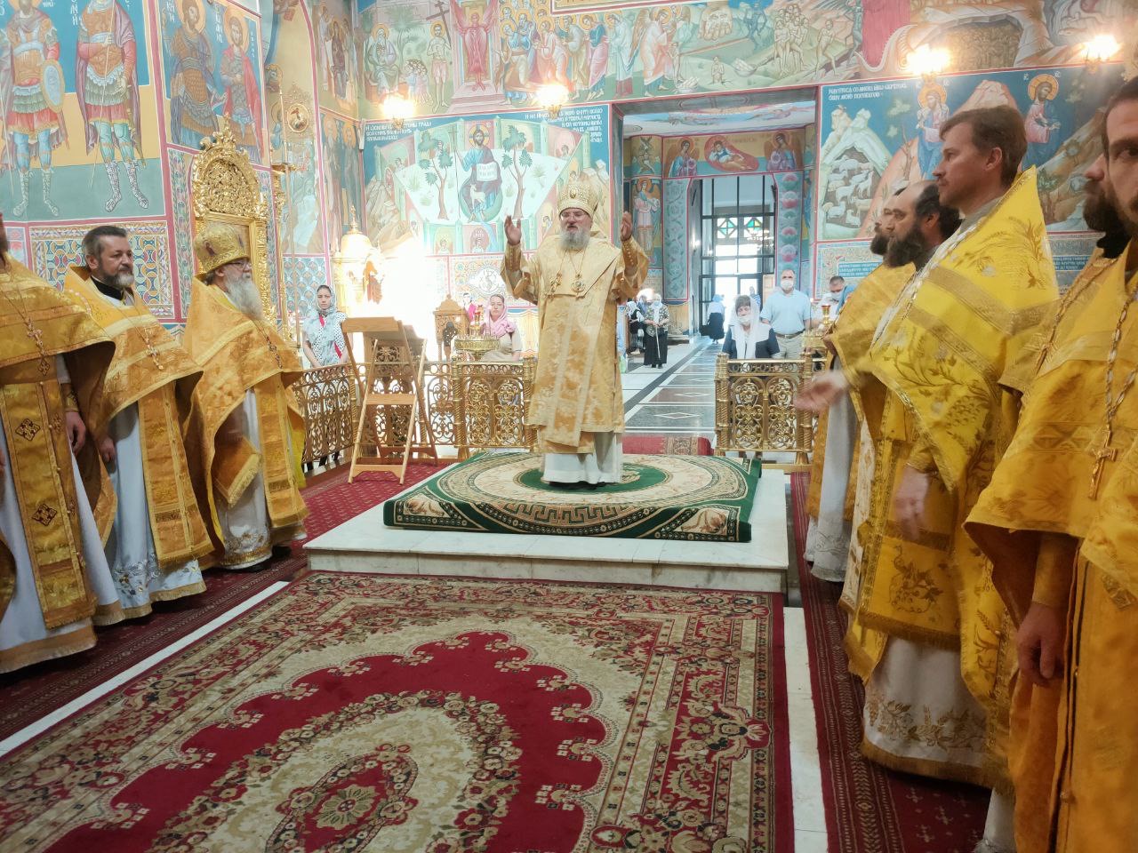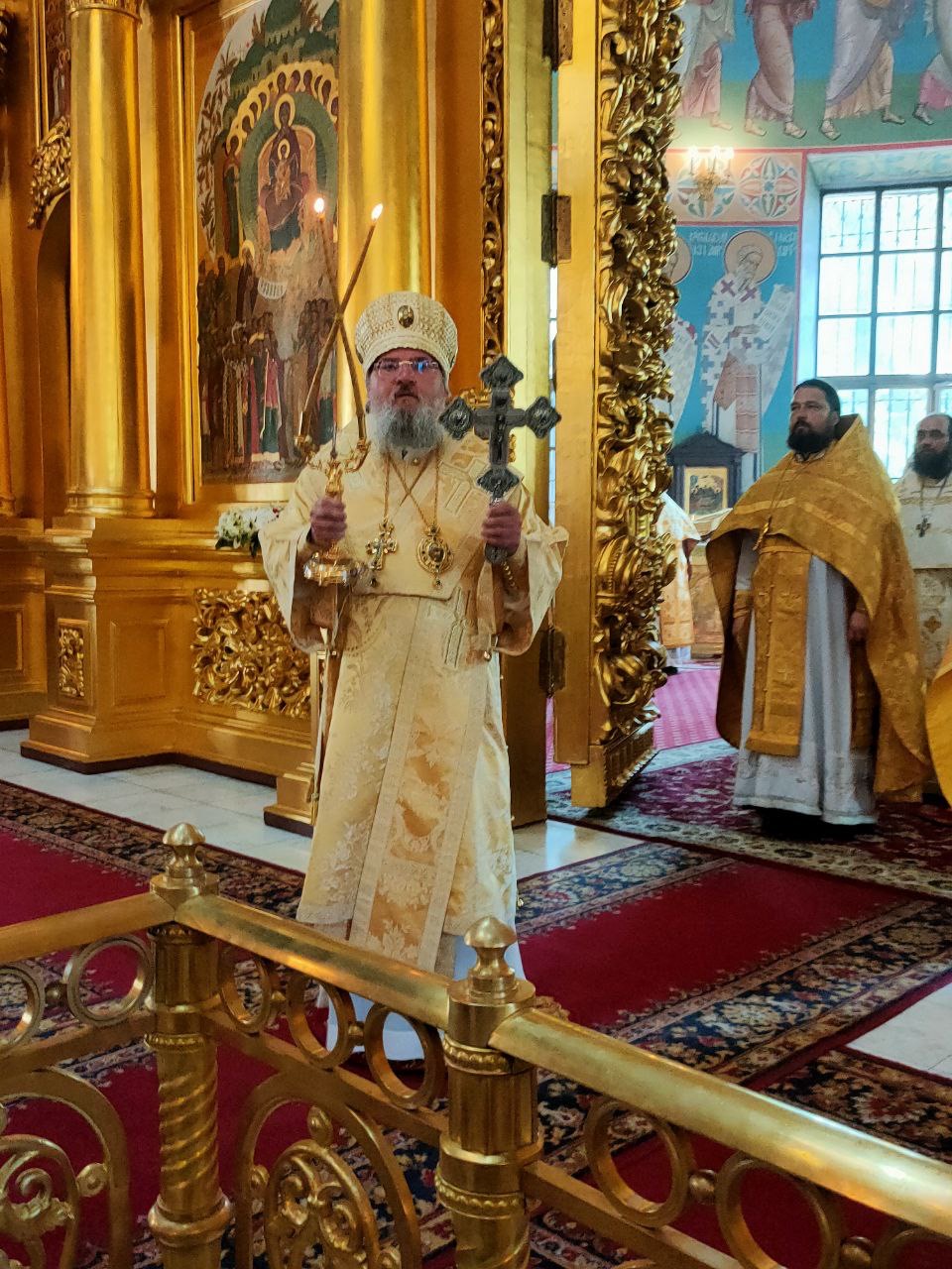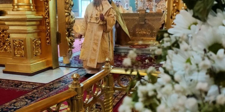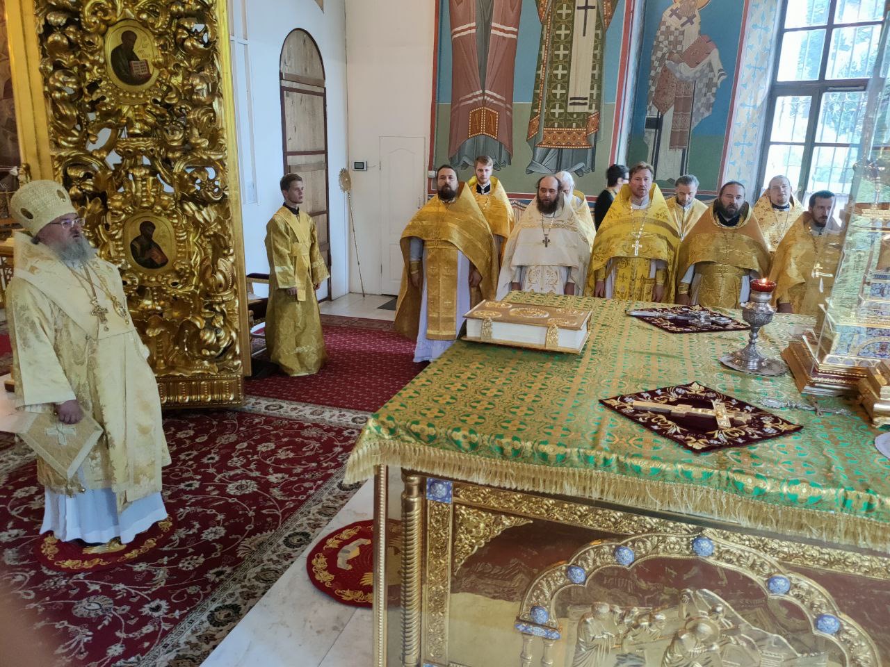 Первую Божественную литургию по прибытию святыни совершил епископ Козельский и Людиновский Никита в сослужении духовенства Козельской епархии.