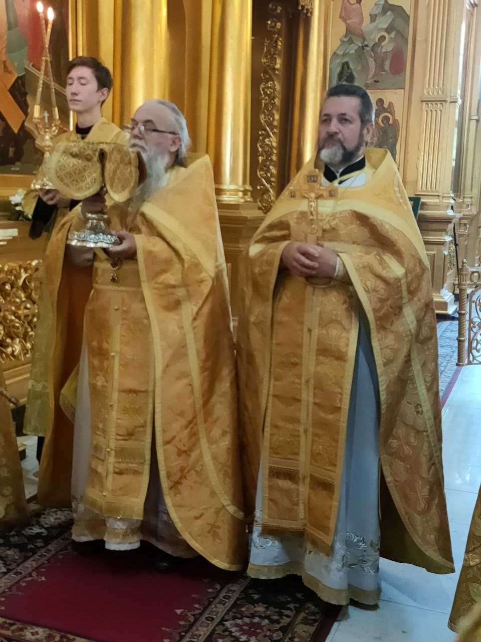 Богослужебные песнопения исполнил хор Калужской духовной семинарии и Калужского духовного училища.