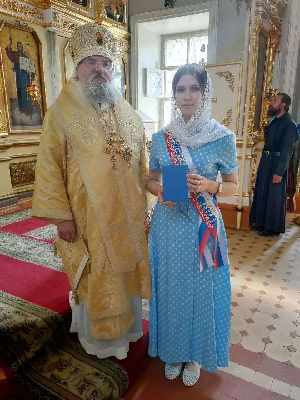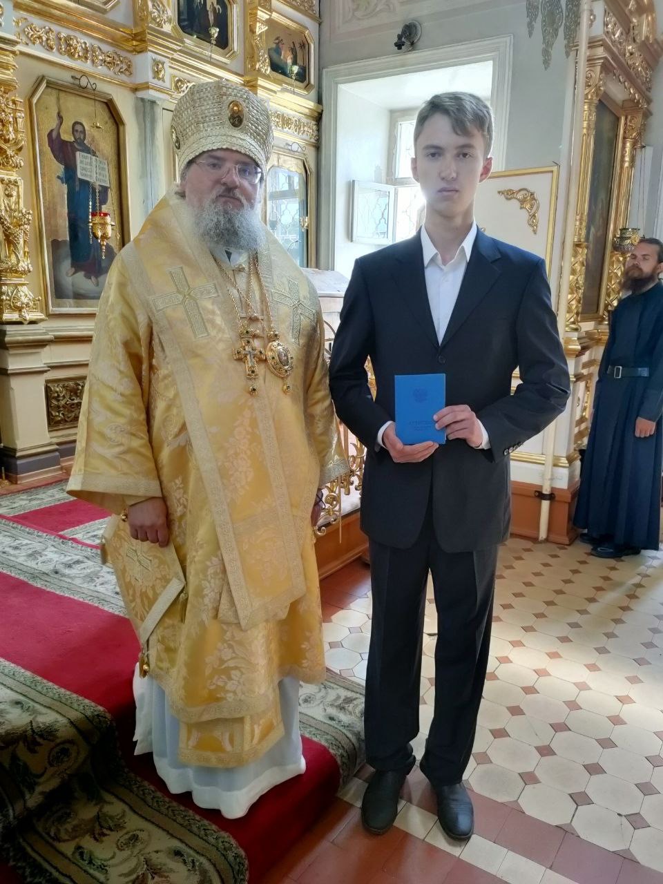 26 июня 2021 года в Козельской Православной гимназии состоялось торжественное вручение аттестатов и выпускной бал. Праздничный день традиционно начался с молитвы. Епископ Козельский и Людиновский Никита совершил Божественную литургию в Благовещенском храме города Козельска. Владыке сослужили протоиерей Ярослав Мудрый, настоятель Свято-Веденского храма в селе Фроловское, протоиерей Павел Морозов, почётный настоятель храма в честь Благовещения Пресвятой Богородицы в г. Козельске, духовный попечитель гимназии иерей Сергий Барыкин и иерей Ярослав Стрельников. По окончании службы владыка торжественно вручил выпускникам аттестаты об основном и среднем образовании. В напутственном слове он поздравил всех ребят с окончанием школы и пожелал не забывать учителей и гимназию.