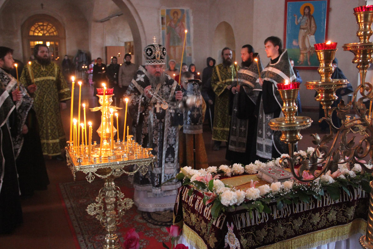 10 апреля. Епископ Козельский и Людиновский Никита совершил в кафедральном соборе Козельской епархии утреню Великой Субботы с чином погребения Плащаницы.