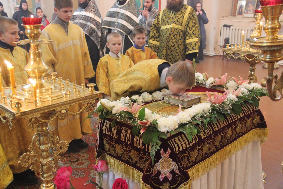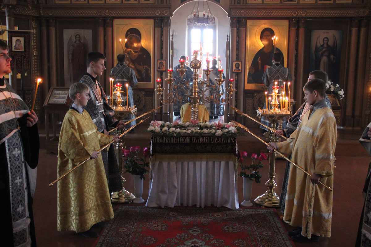 Архипастырю сослужили: иерей Антоний Хатунцев, иеромонах Паисий (Курмаз), иерей Елисей Тимофеев, иерей Виктор Носов, диакон Евгений Ковригин и диакон Тихон Худяков.