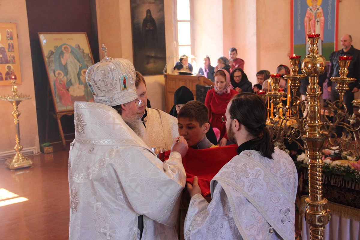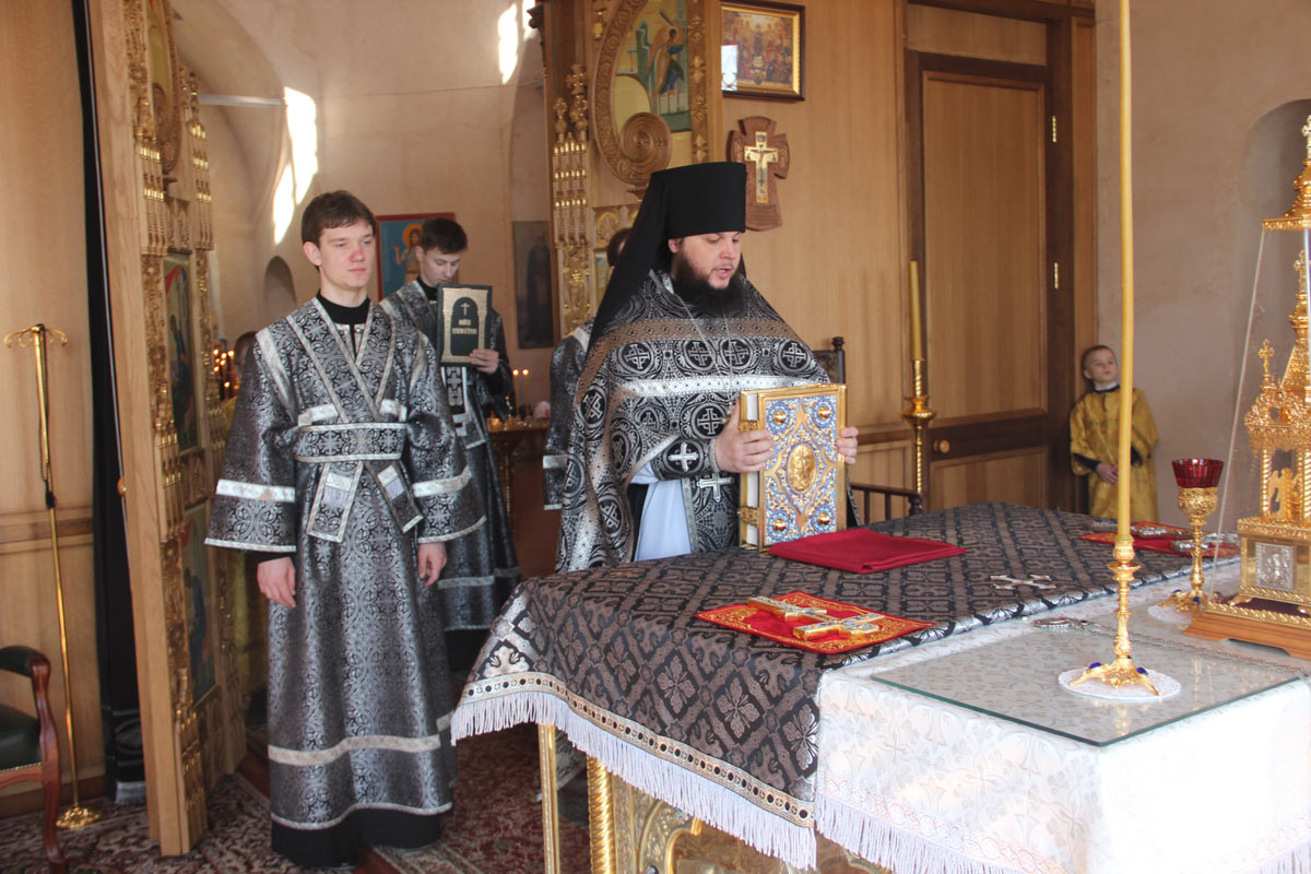 11 апреля. Епископ Никита совершил вечерню в соединении с Божественной литургией святителя Василия Великого в Свято-Успенском кафедральном соборе города Козельска. Архипастырю сослужили: иеромонах Паисий (Курмаз), иерей Елисей Тимофеев, диакон Евгений Ковригин и диакон Тихон Худяков.