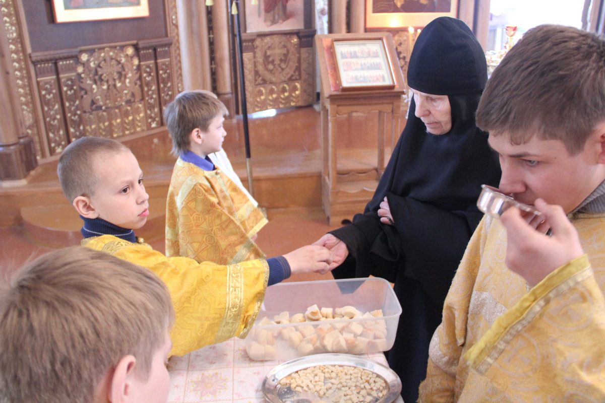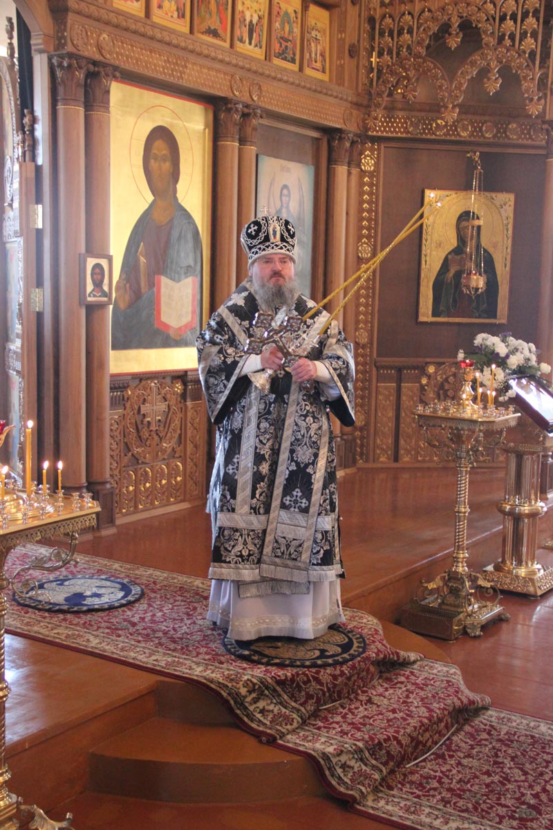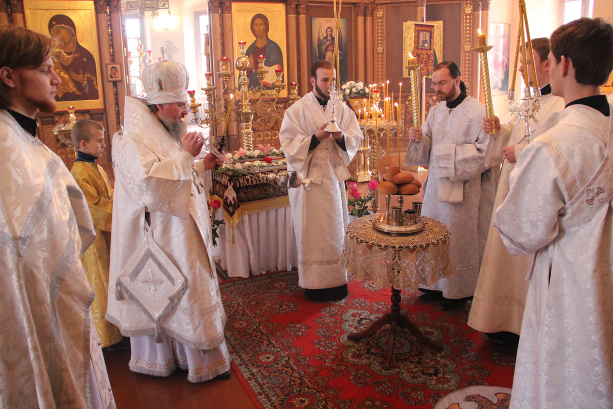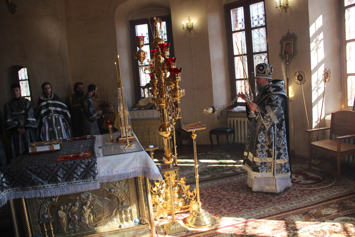 В завершении богослужения владыка, согласно указаниям церковного устава, совершил освящение хлеба и вина, а затем была вознесена молитва о мире во Иерусалиме.