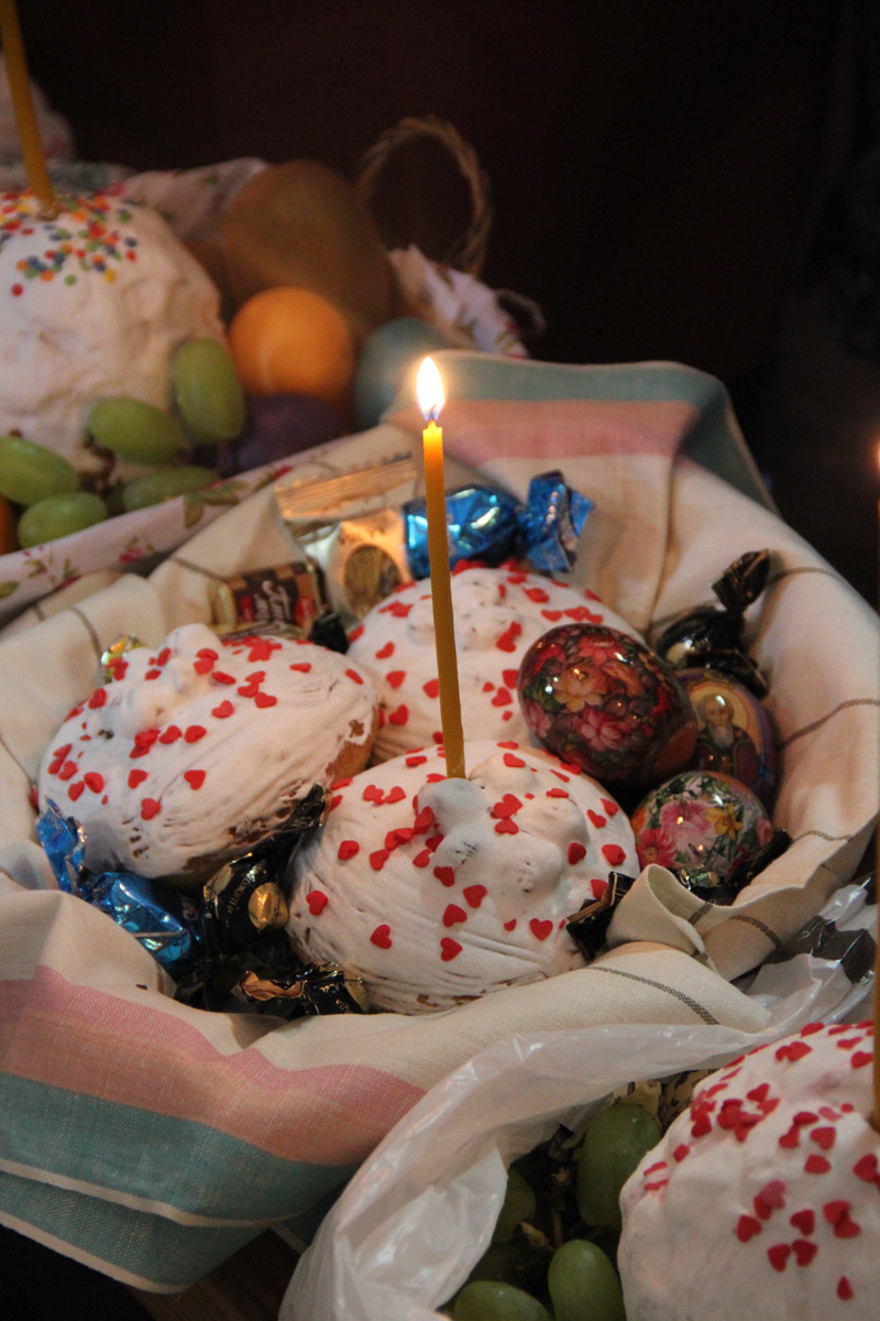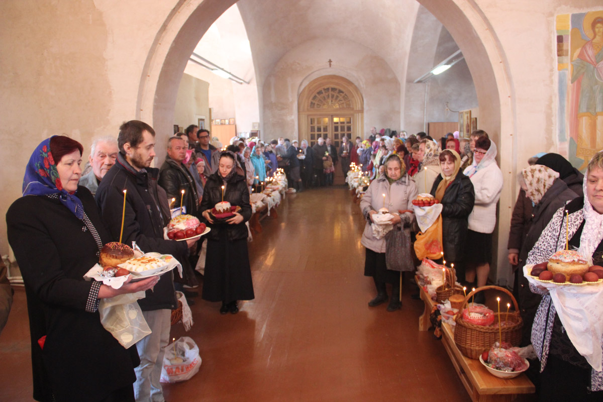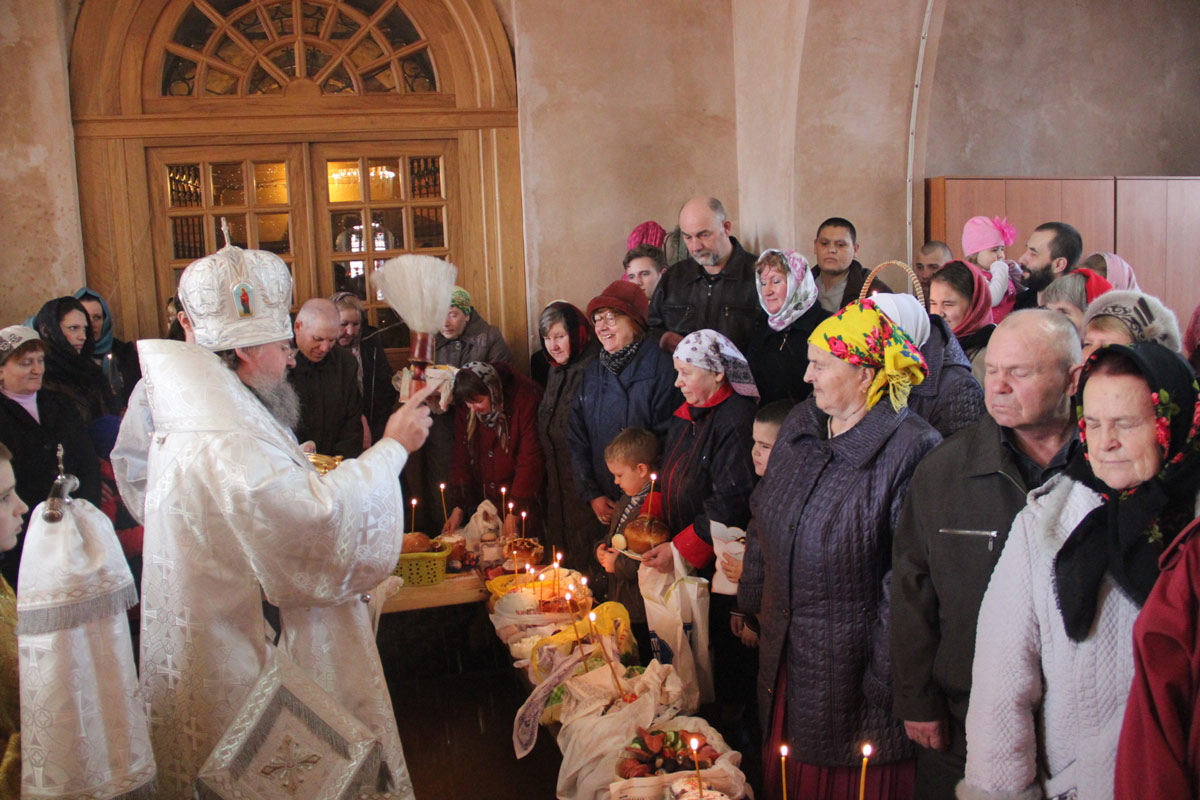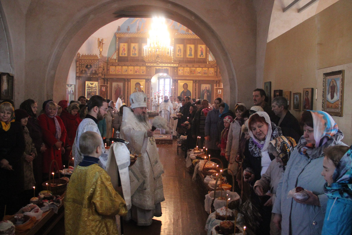 Поздравив богомольцев с Великой Субботой, архипастырь совершил освящение куличей.