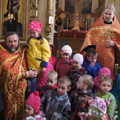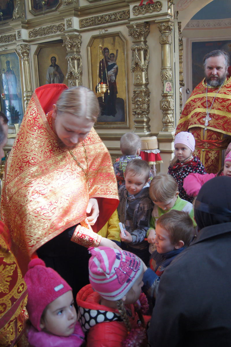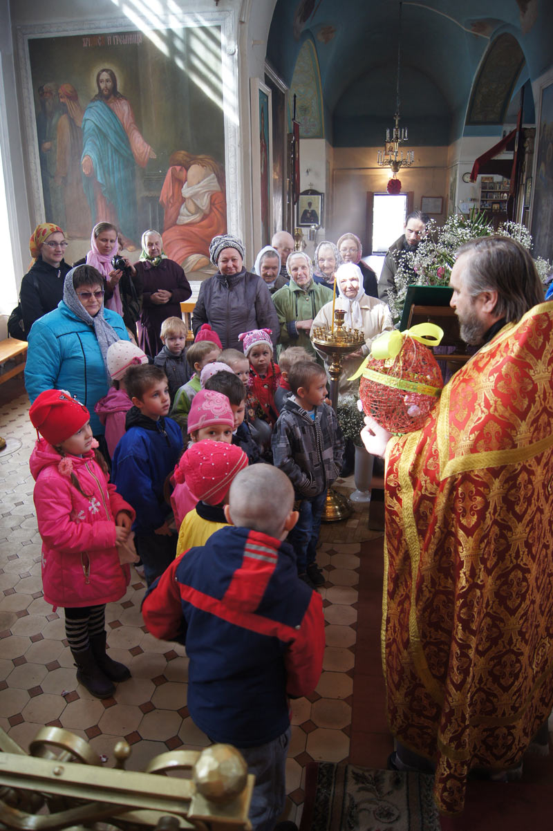 Так же детки подарили храму пасхальное яйцо, сделанное своими руками. Отец Павел поблагодарил детей за поздравления и рассказал им о смысле праздника пасхи. Все дети получили пасхальные яички и сладости.
