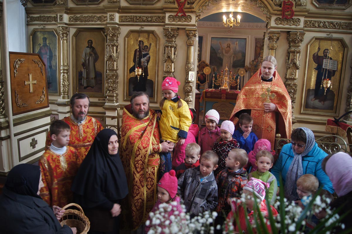 В понедельник светлой седмицы в храме Благовещения Пресвятой Богородицы в Козельске принимали участие в крестном ходе воспитанники младшей группы детского сада «Солнышко». После богослужения дети поздравили священников и прихожан с праздником, рассказали стихи и спели песню о пасхе.
