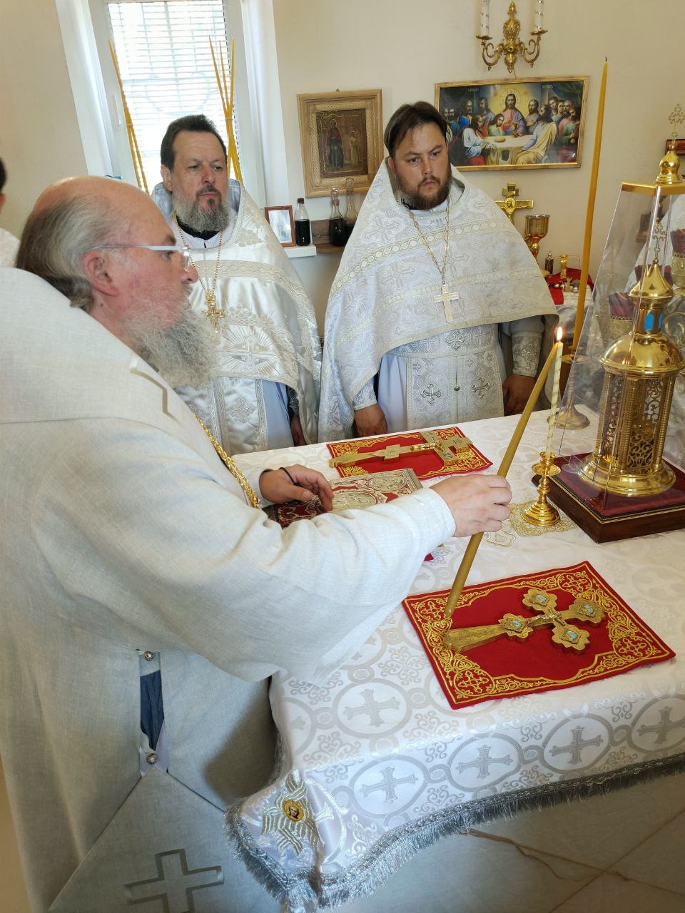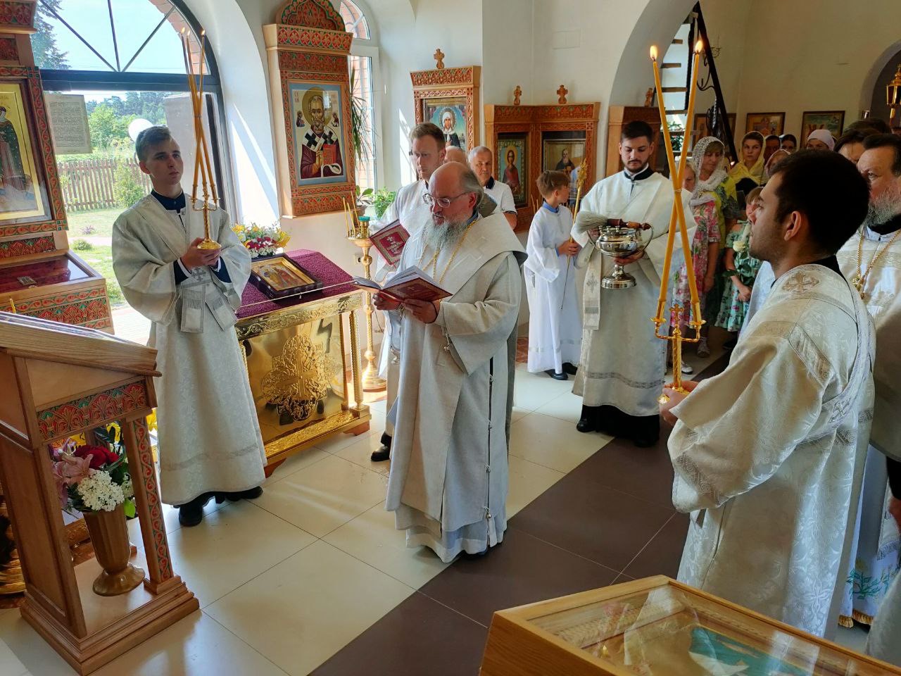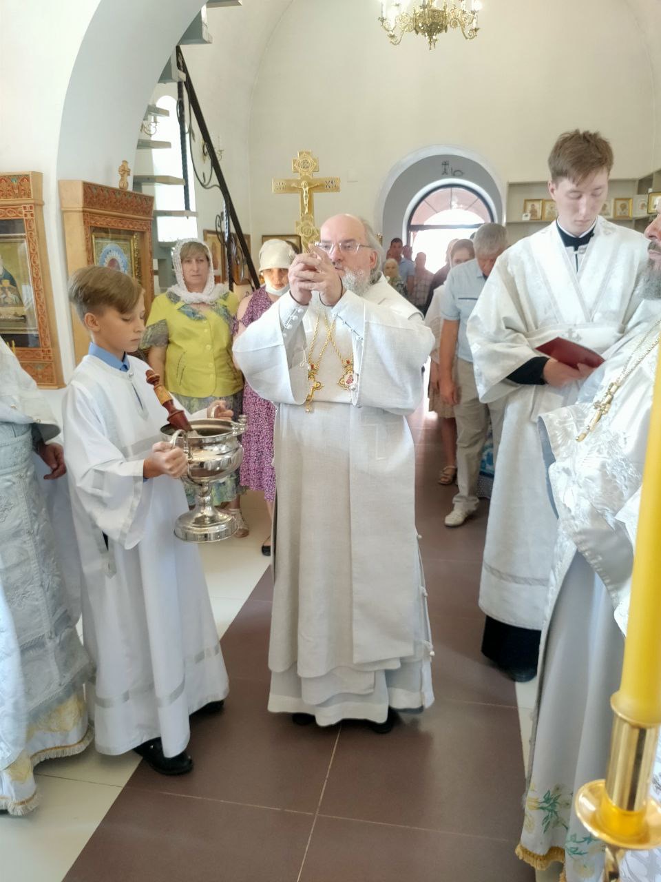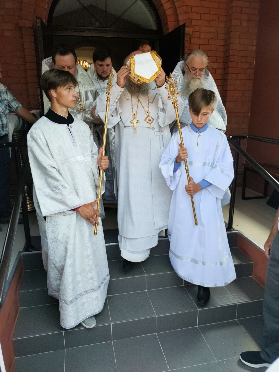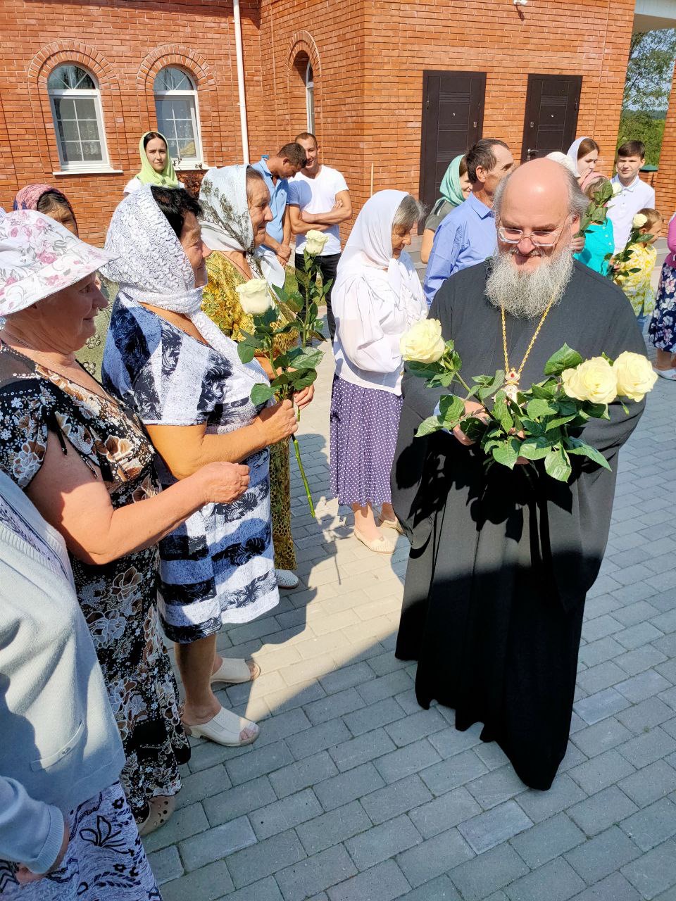 Архипастырю сослужили: протоиерей Алексий Жиганов, протоиерей Василий Биляк, протоиерей Атоний Хатунцев, иерей Алексий Ефименков, иерей Иоанн Майоров – настоятель прихода, диакон Евгений Ковригин и диакон Евгений Васильев.