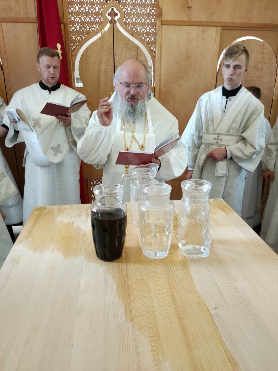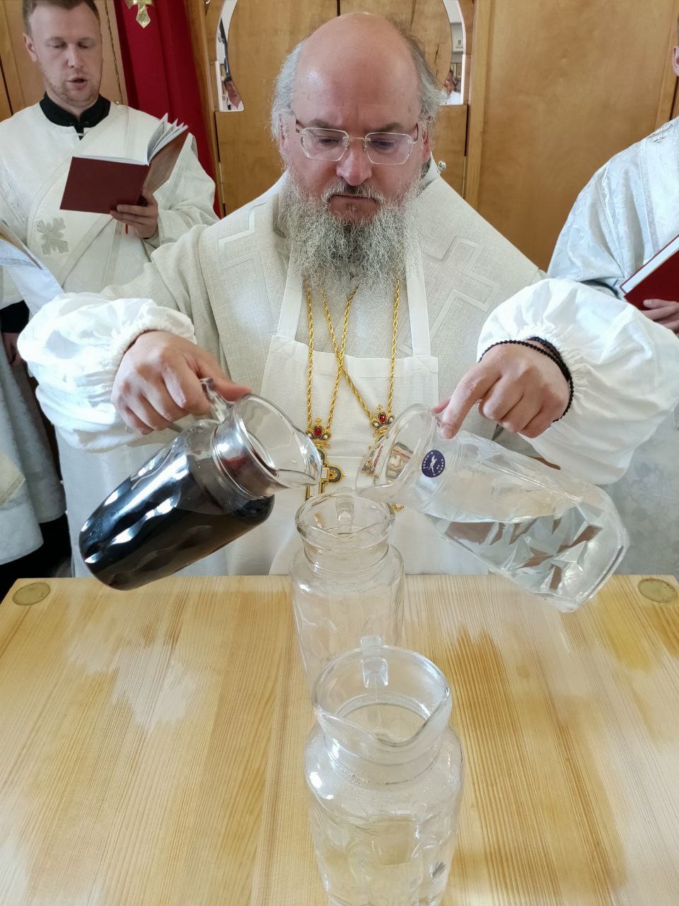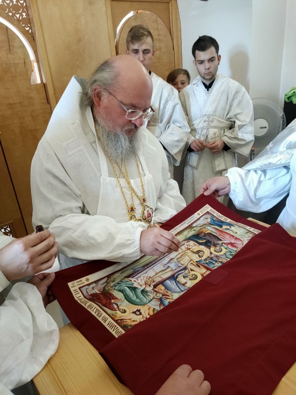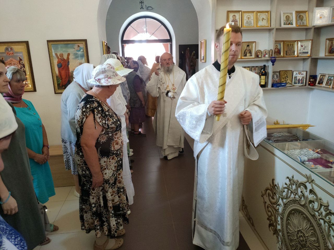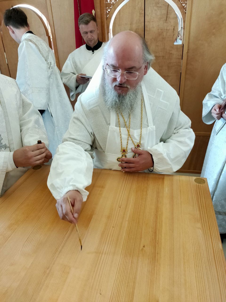 Архипастырю сослужили: протоиерей Алексий Жиганов, протоиерей Василий Биляк, протоиерей Атоний Хатунцев, иерей Алексий Ефименков, иерей Иоанн Майоров – настоятель прихода, диакон Евгений Ковригин и диакон Евгений Васильев.