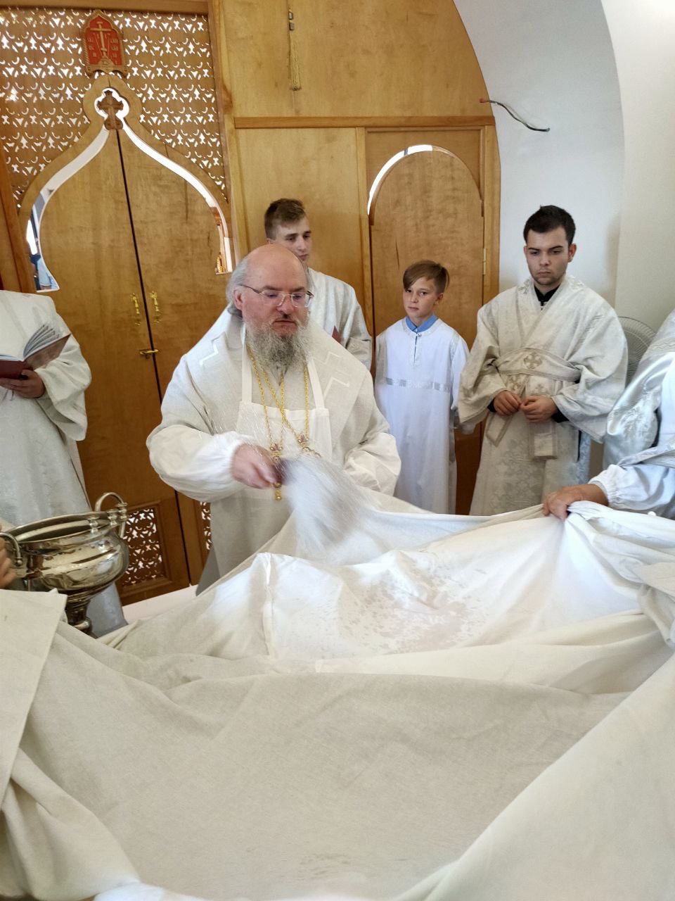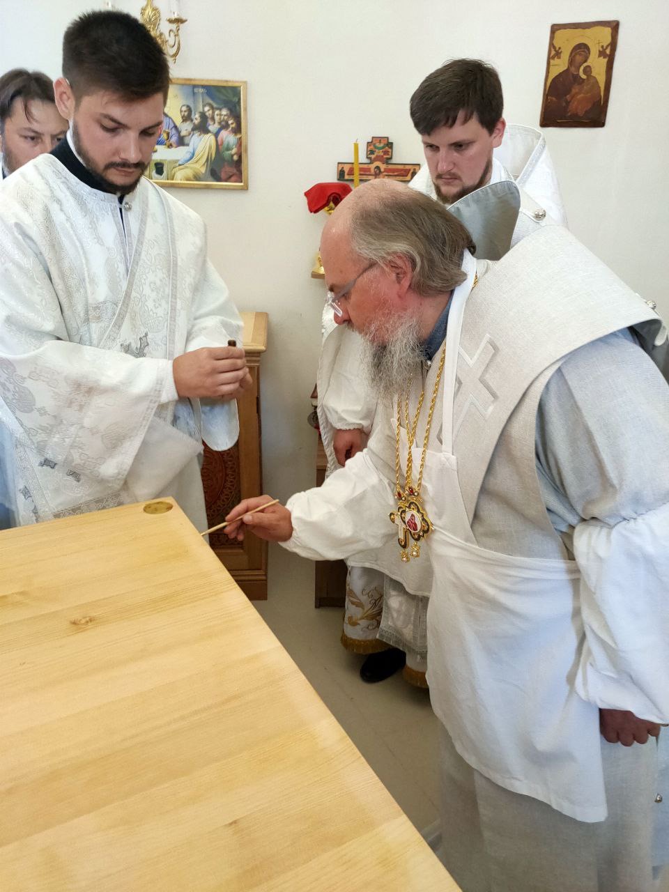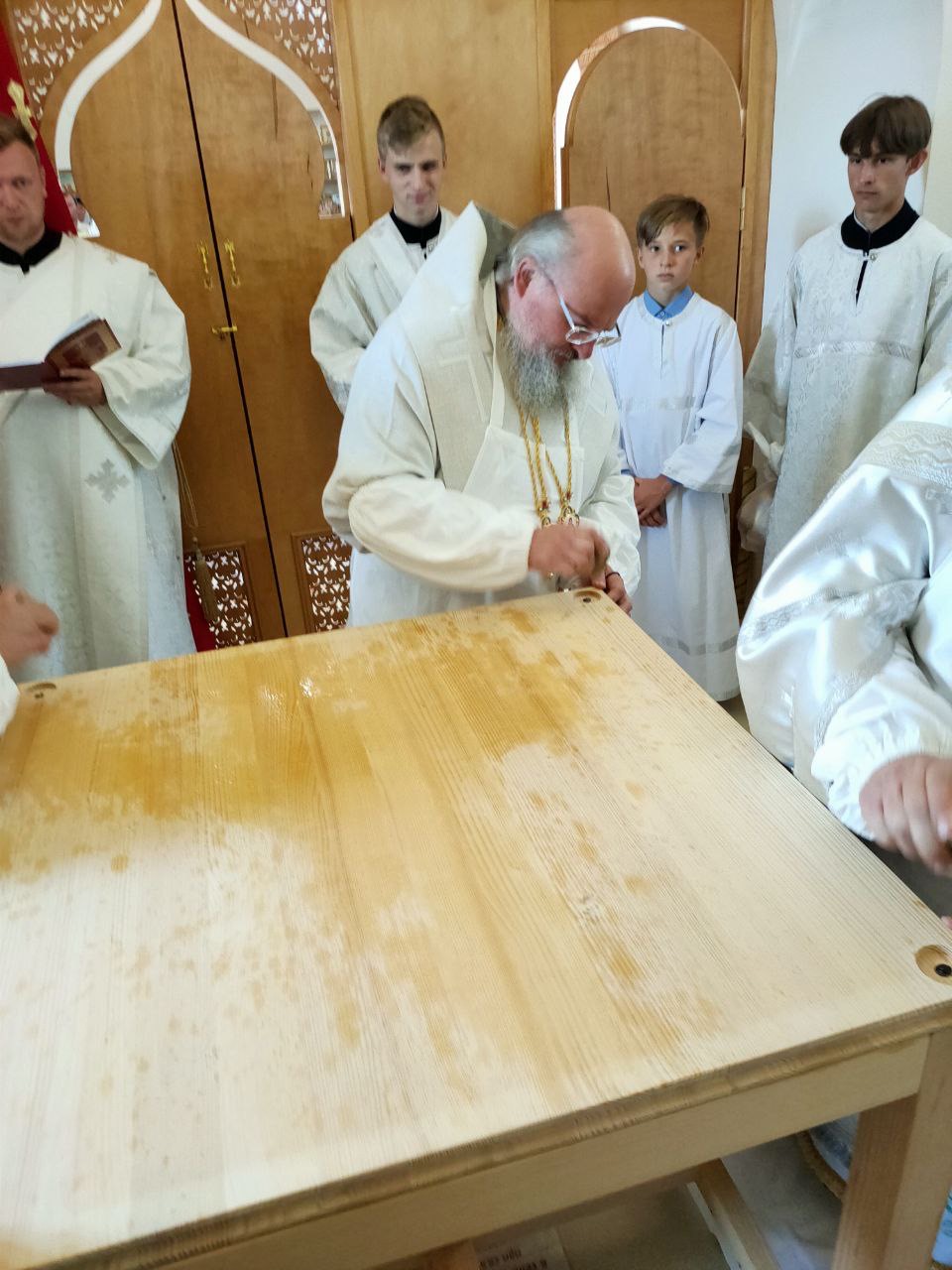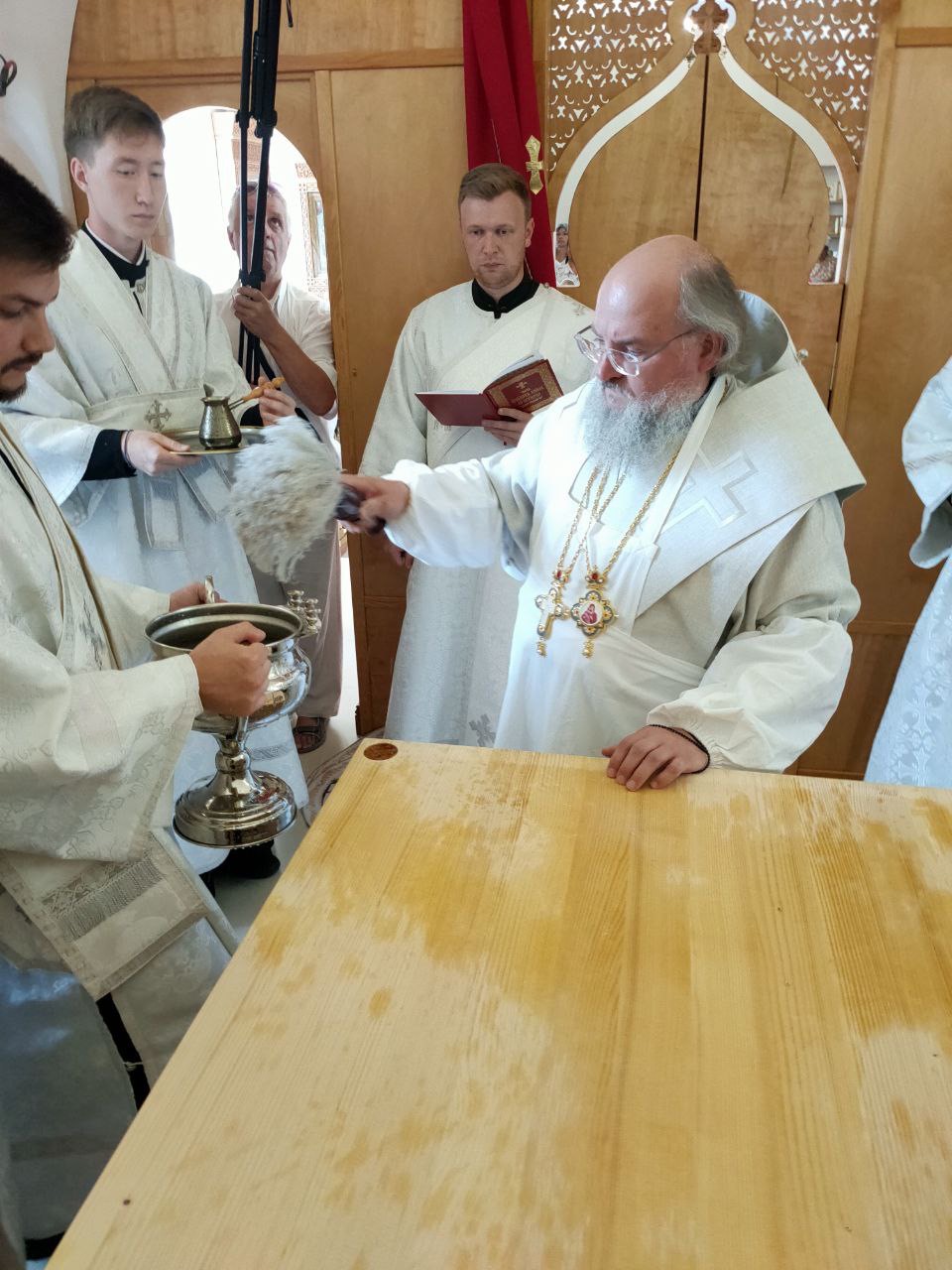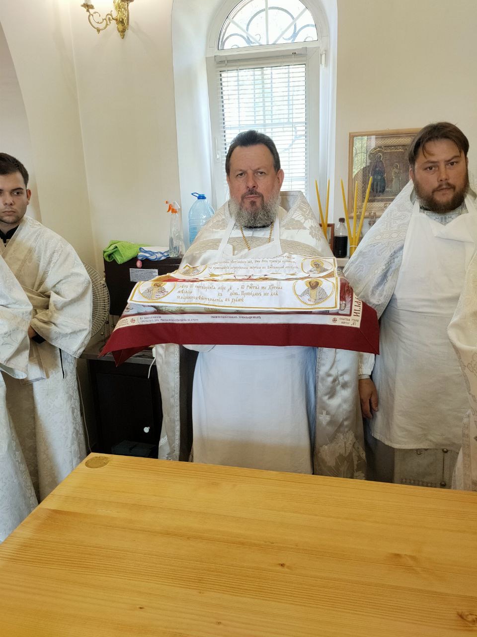 Архипастырю сослужили: протоиерей Алексий Жиганов, протоиерей Василий Биляк, протоиерей Атоний Хатунцев, иерей Алексий Ефименков, иерей Иоанн Майоров – настоятель прихода, диакон Евгений Ковригин и диакон Евгений Васильев.