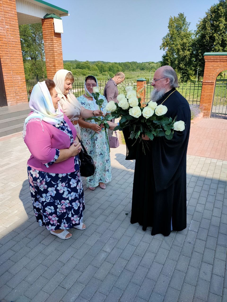 За богослужением молились ктитор храма Николай Николаевич Кленов с супругой Еленой Васильевной, детьми и внуками, прихожане и гости, собравшиеся на торжество.