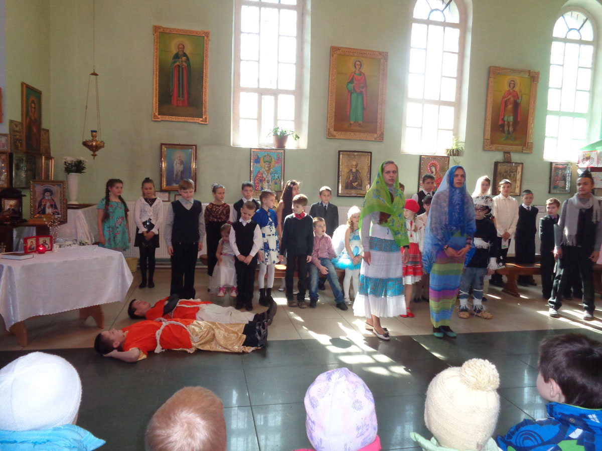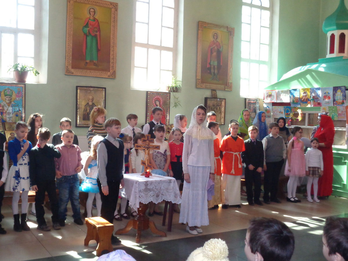 12 апреля в храме в честь преподобного Сергия Радонежского г.Людиново, по благословению настоятеля храма протоиерея Василияч Биляк, состоялся Пасхальный утренник учеников Воскресной школы.