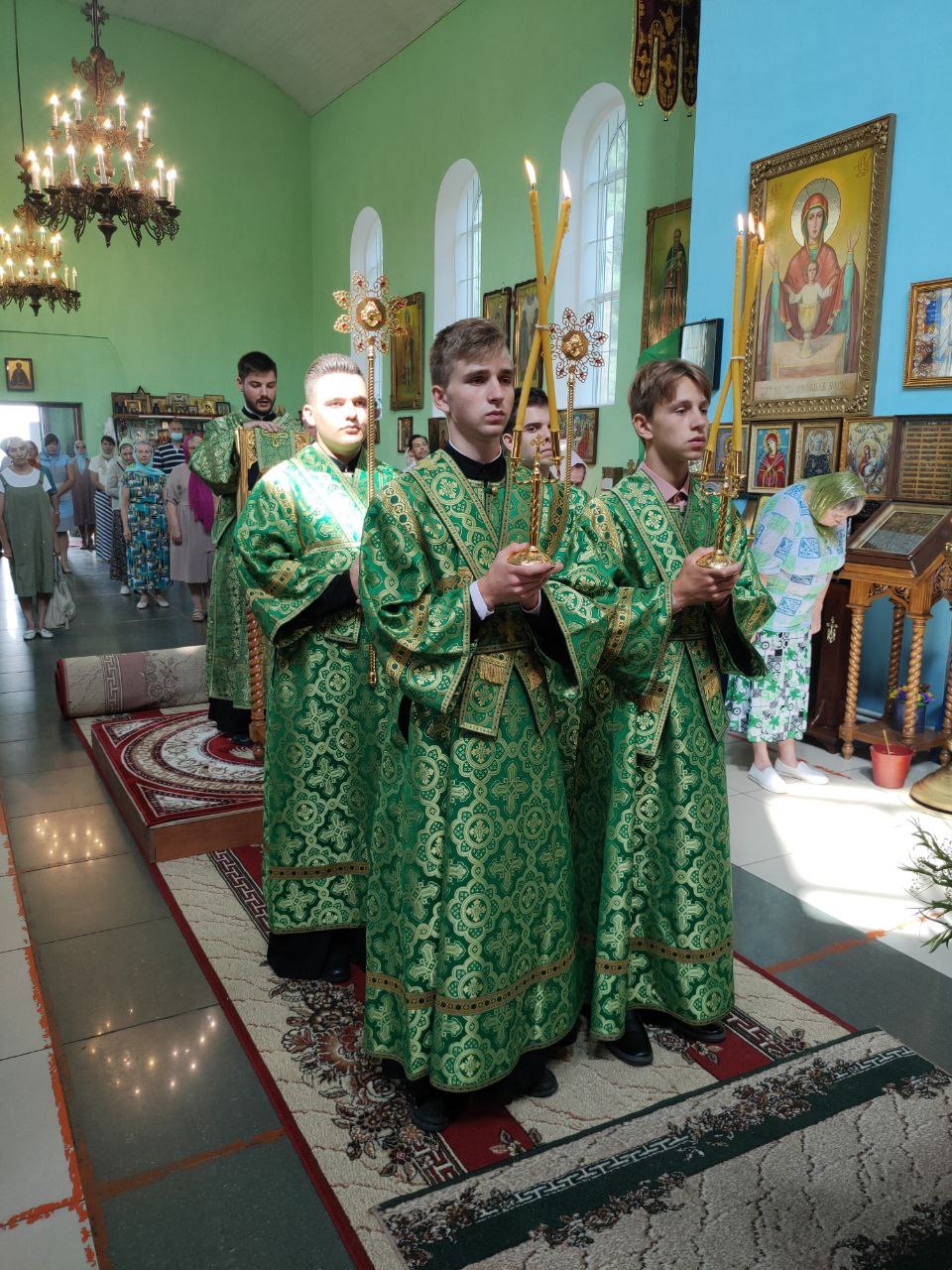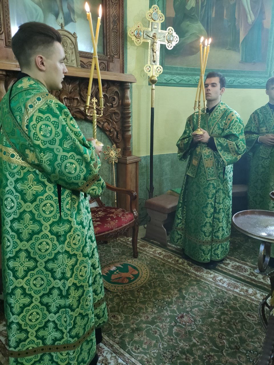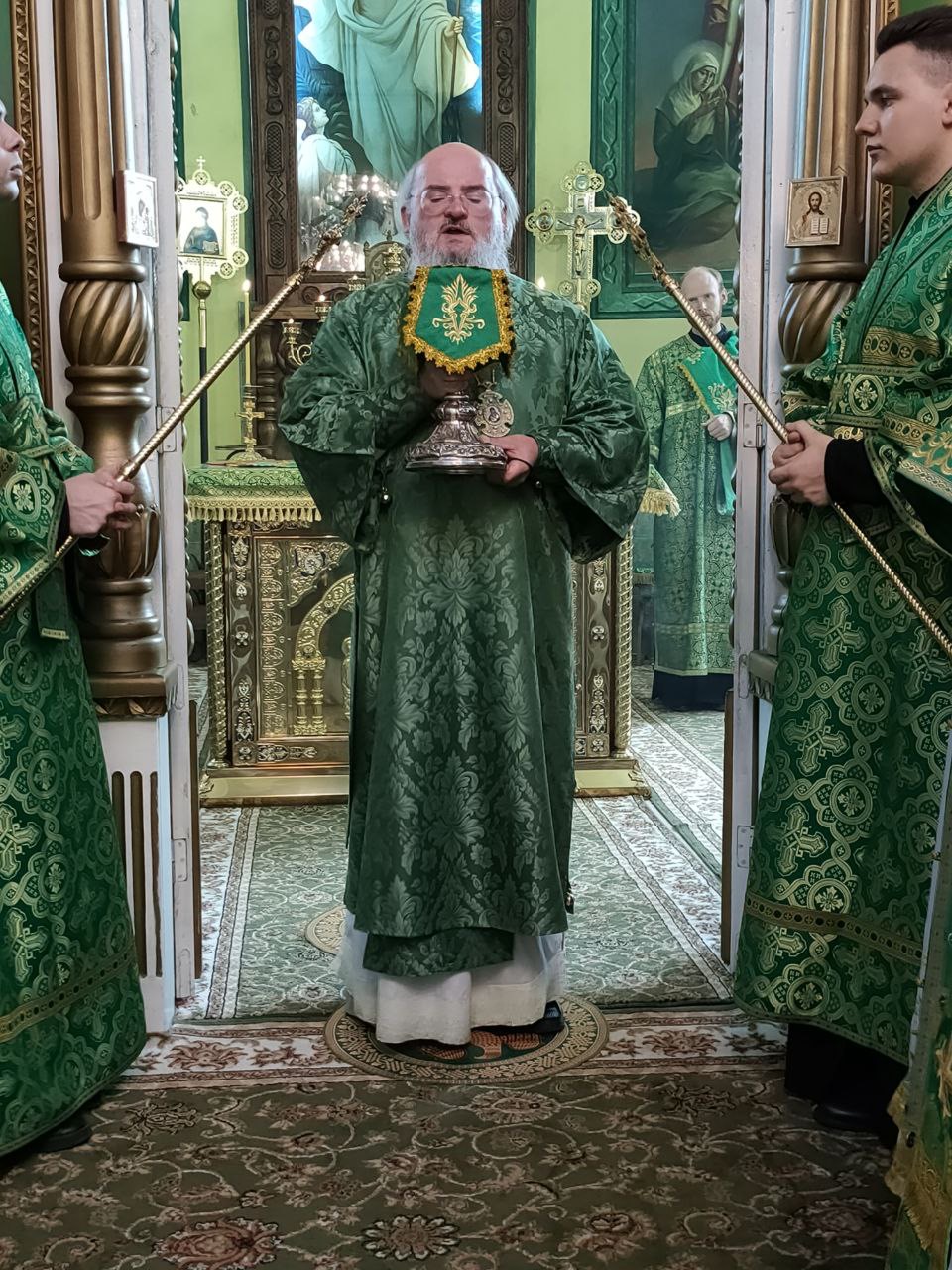 Преосвященному владыке сослужили: настоятель храма, благочинный округа протоиерей Василий Биляк, протоиерей Алексий Жиганов – духовник епархии, протоиерей Дмитрий Губаль, протоиерей Михаил Карпенко, протоиерей Антоний Хатунцев, диакон Евгений Васильев и иеродиакон Лука (Старостин).