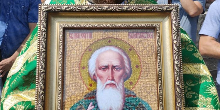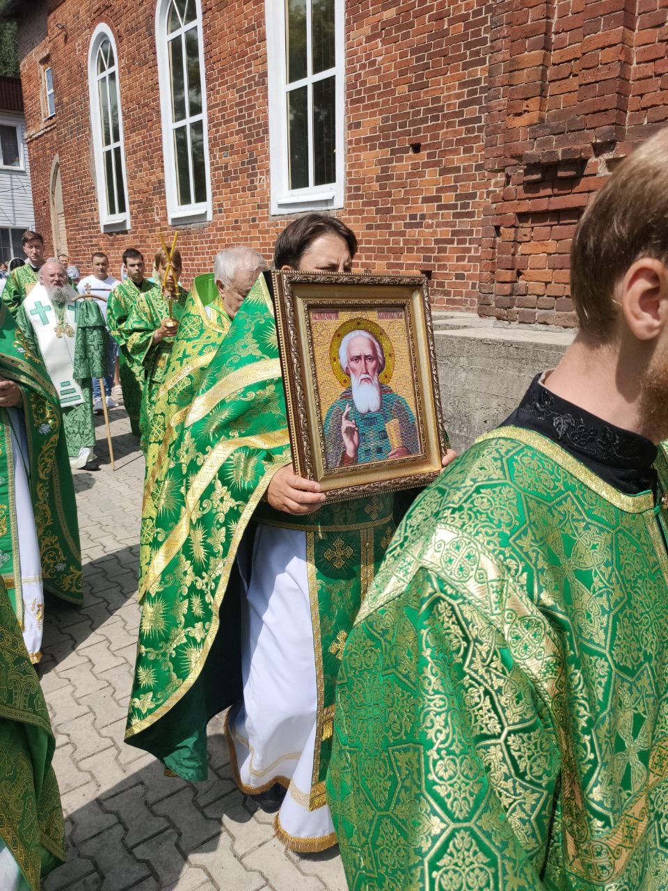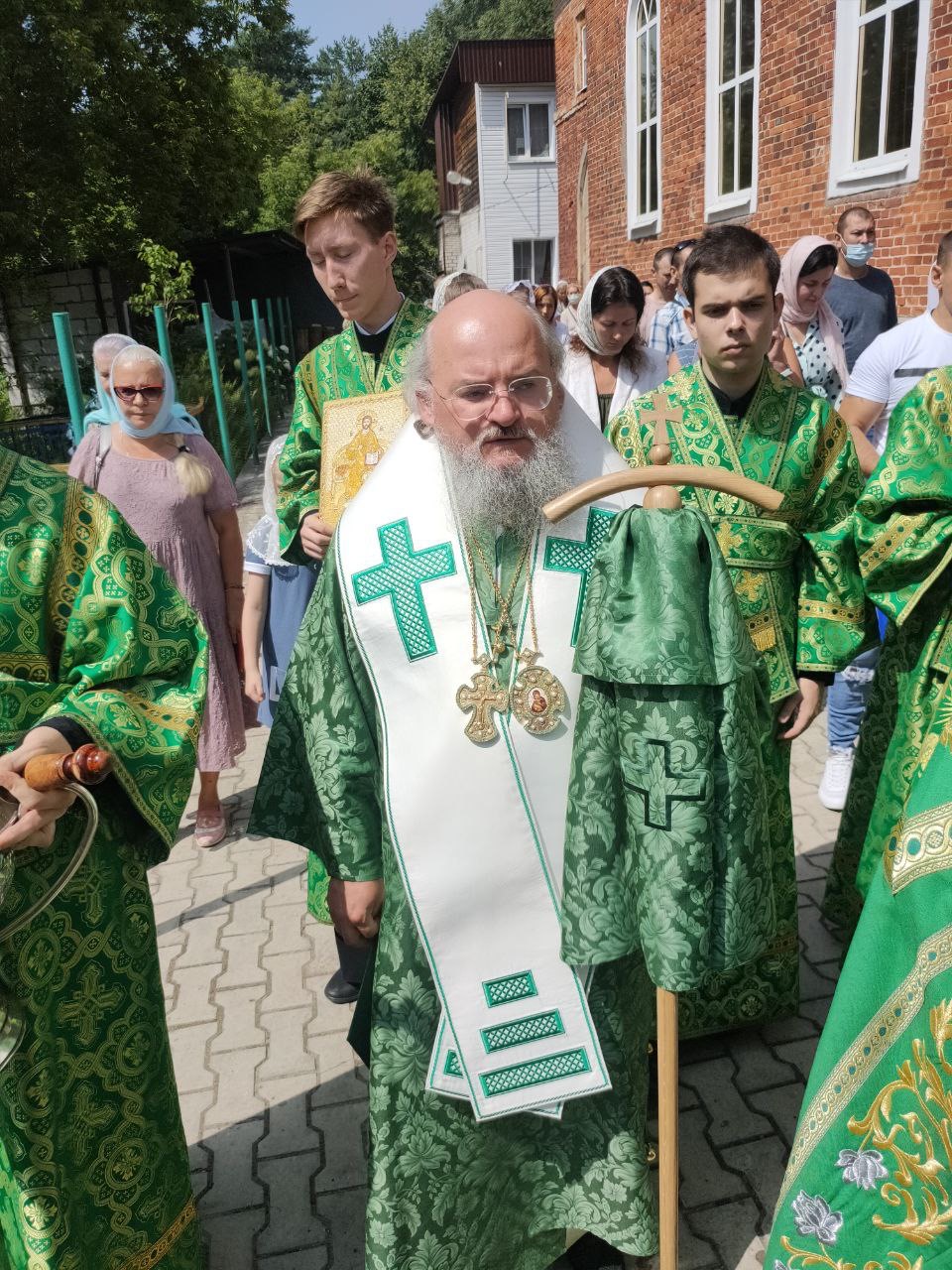 По отпусте литургии был совершен праздничный молебен и крестный ход вокруг храма, а затем, вознеся молитву Радонежскому чудотворцу, владыка обратился к богомольцам с архипастырским словом.