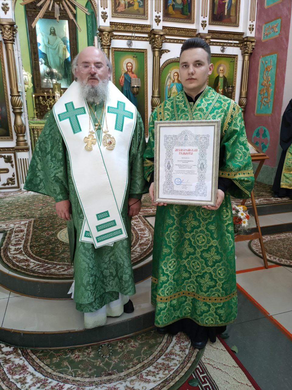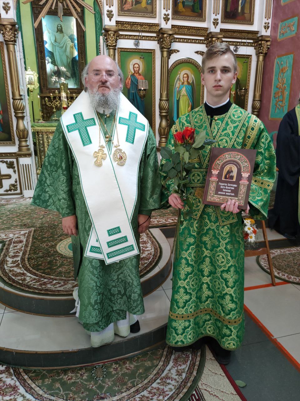 Архипастырь поздравил со значимыми датами иподиаконов: Даниила Денисова – сотрудника епархиального Отдела по работе с молодежью с 20-летием со дня рождения и вручил ему благодарственную Архиерейскую грамоту и Николая Родионова с 18-летием, ему владыка презентовал памятный подарок.