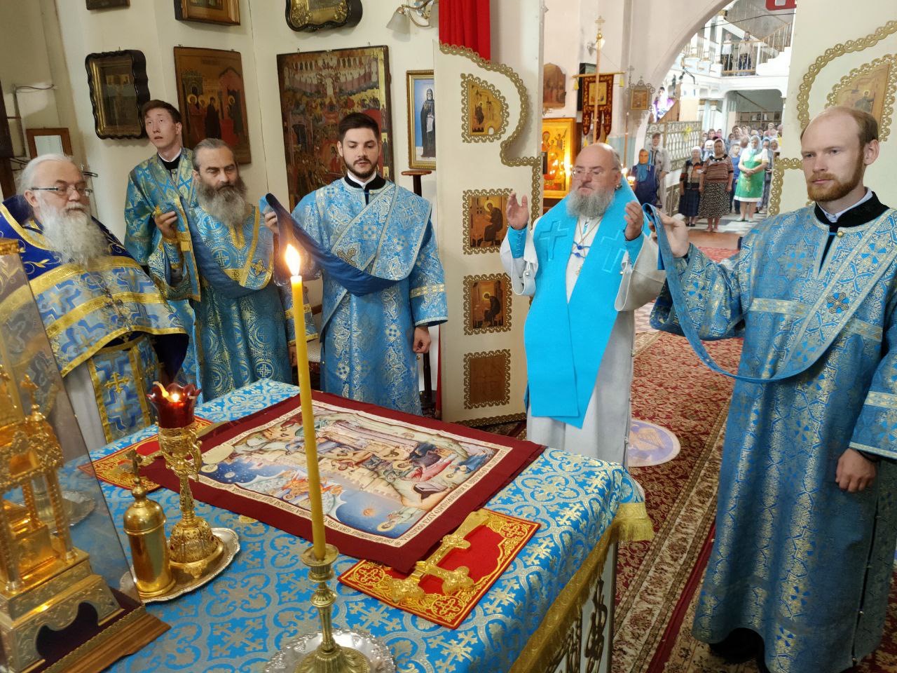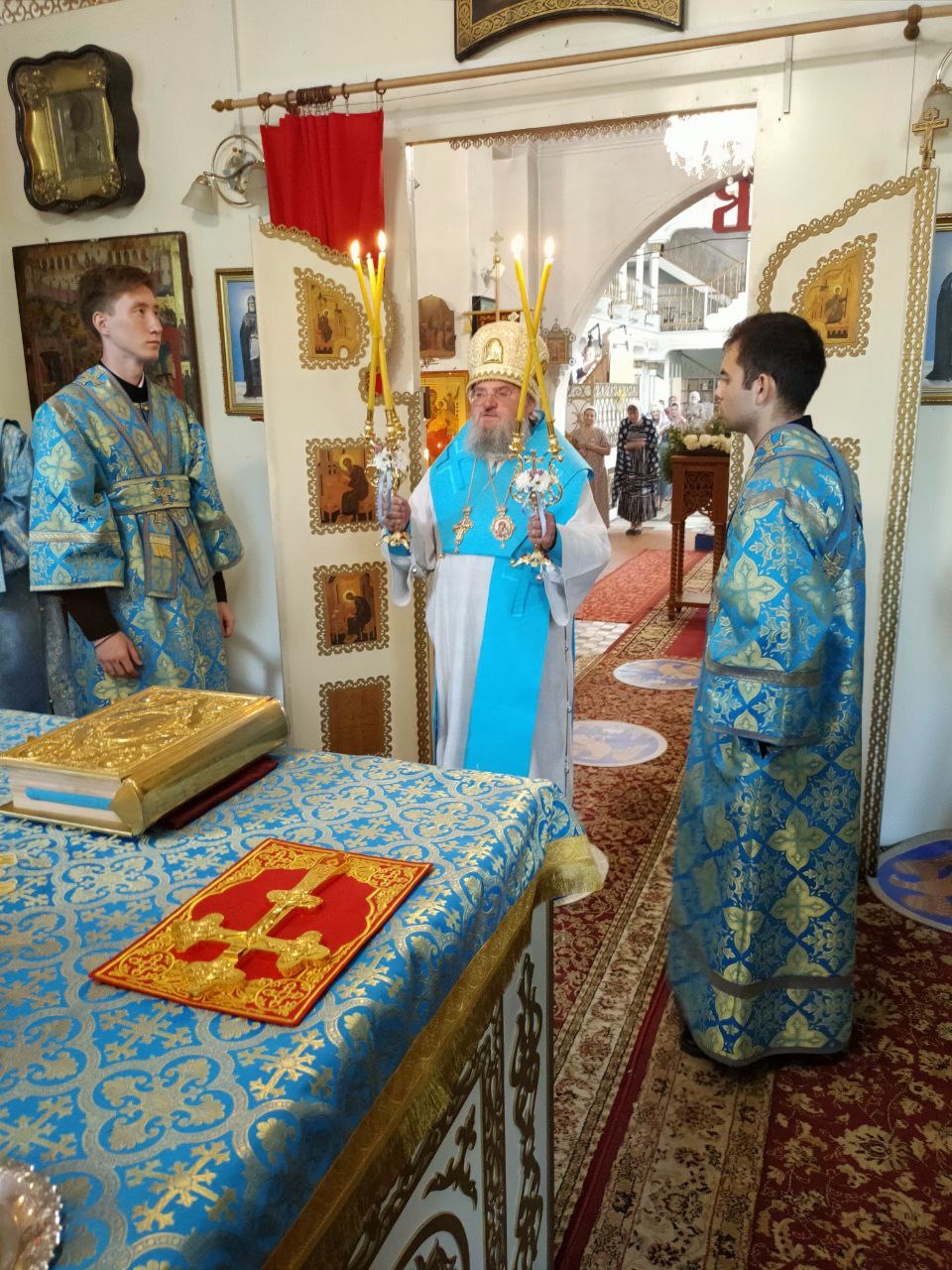 Накануне вечером было совершено праздничное всенощное бдение, а в сам день праздника – Божественная литургия.