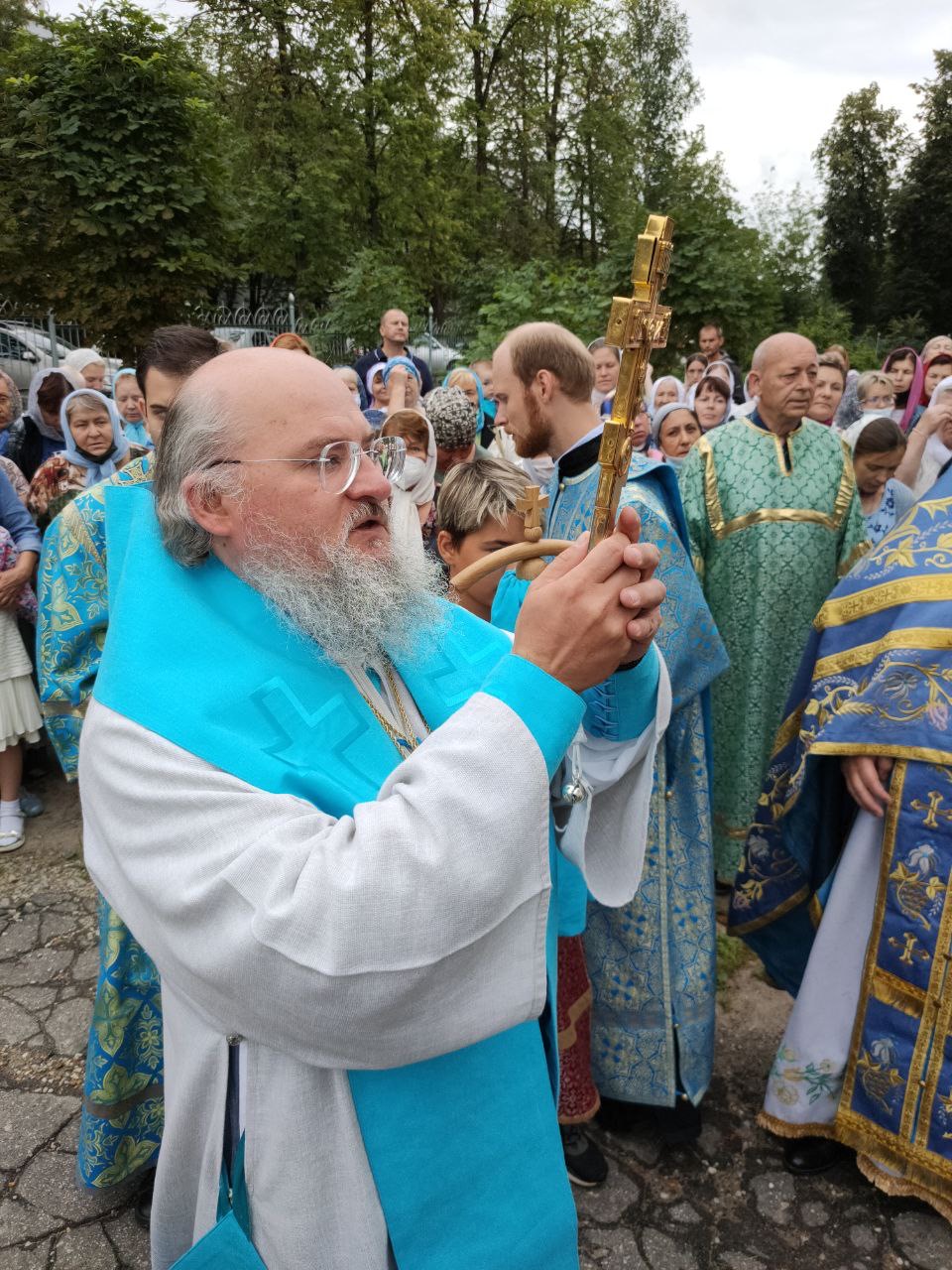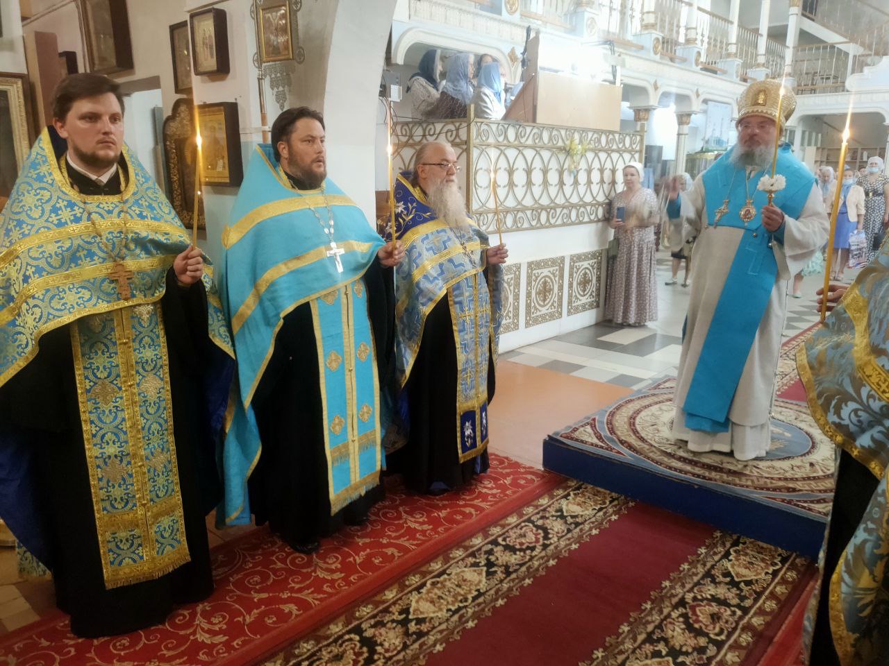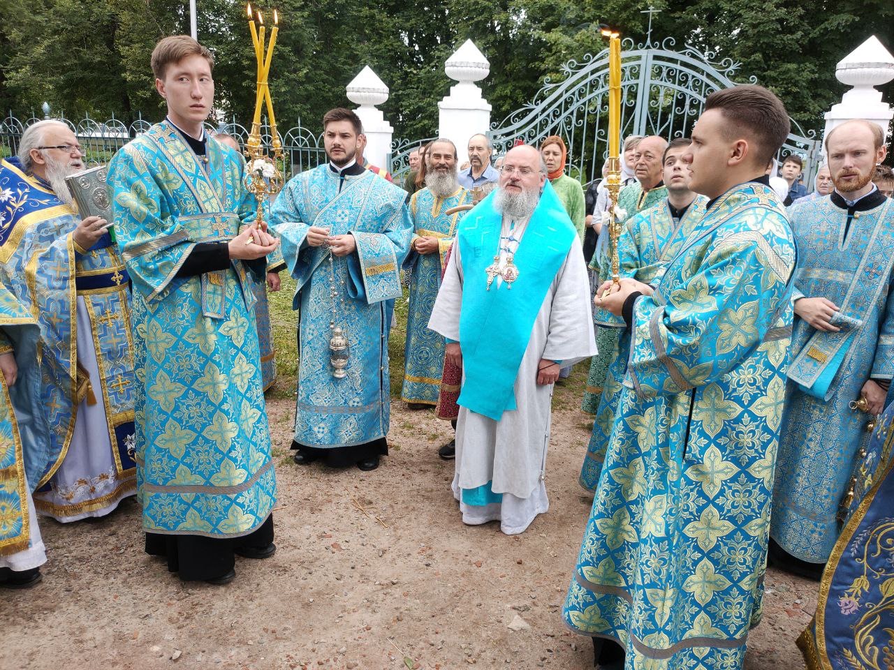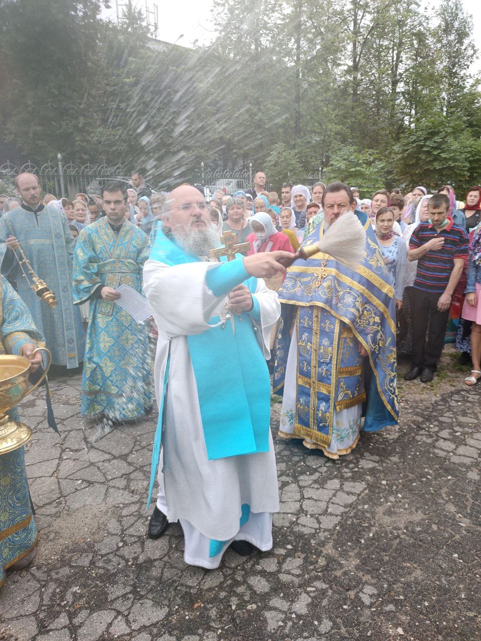 По окончании литургии состоялся праздничный крестный ход, в завершении которого, вознеся молитву Пресвятой Богородице, владыка обратился к богомольцам с проповедью.